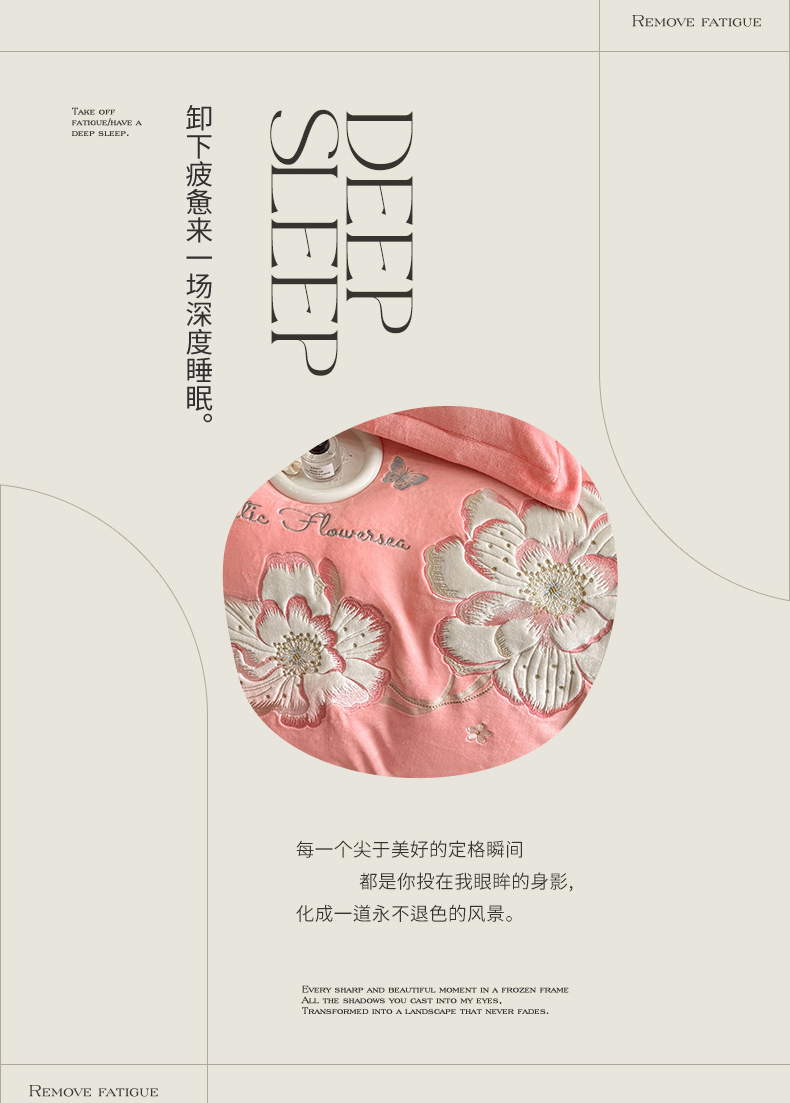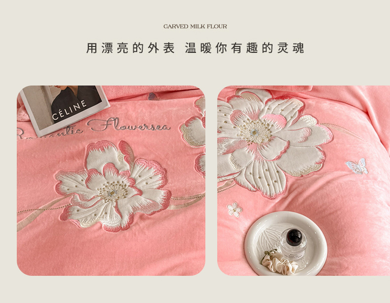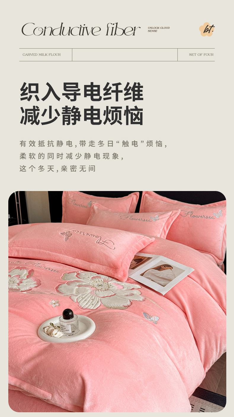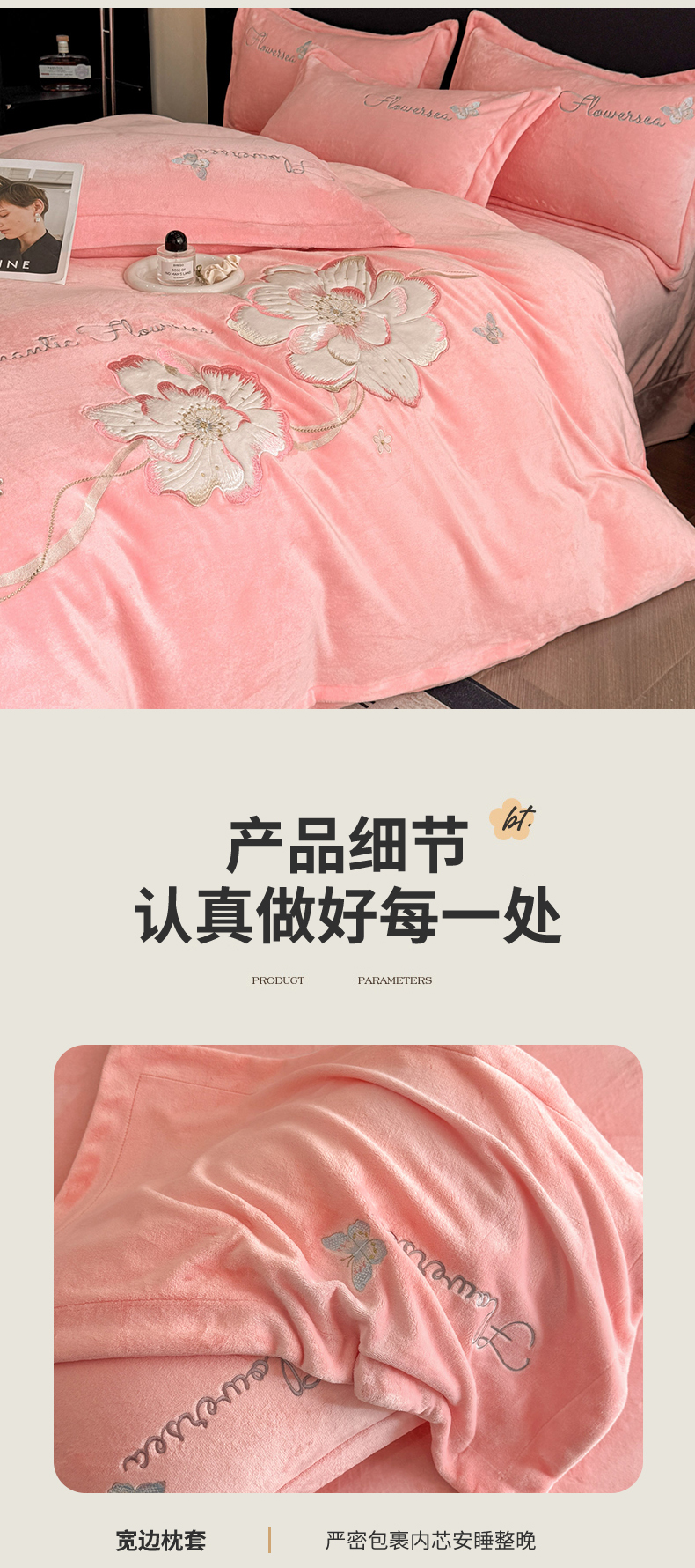 商品名称:畅畅家纺 2025新款牛奶绒大版贴布绣四件套 富贵花开-粉色