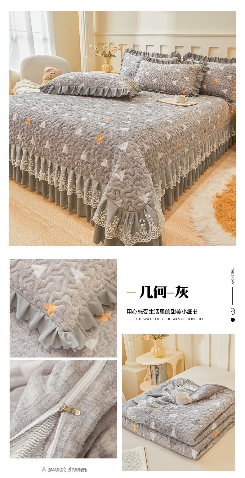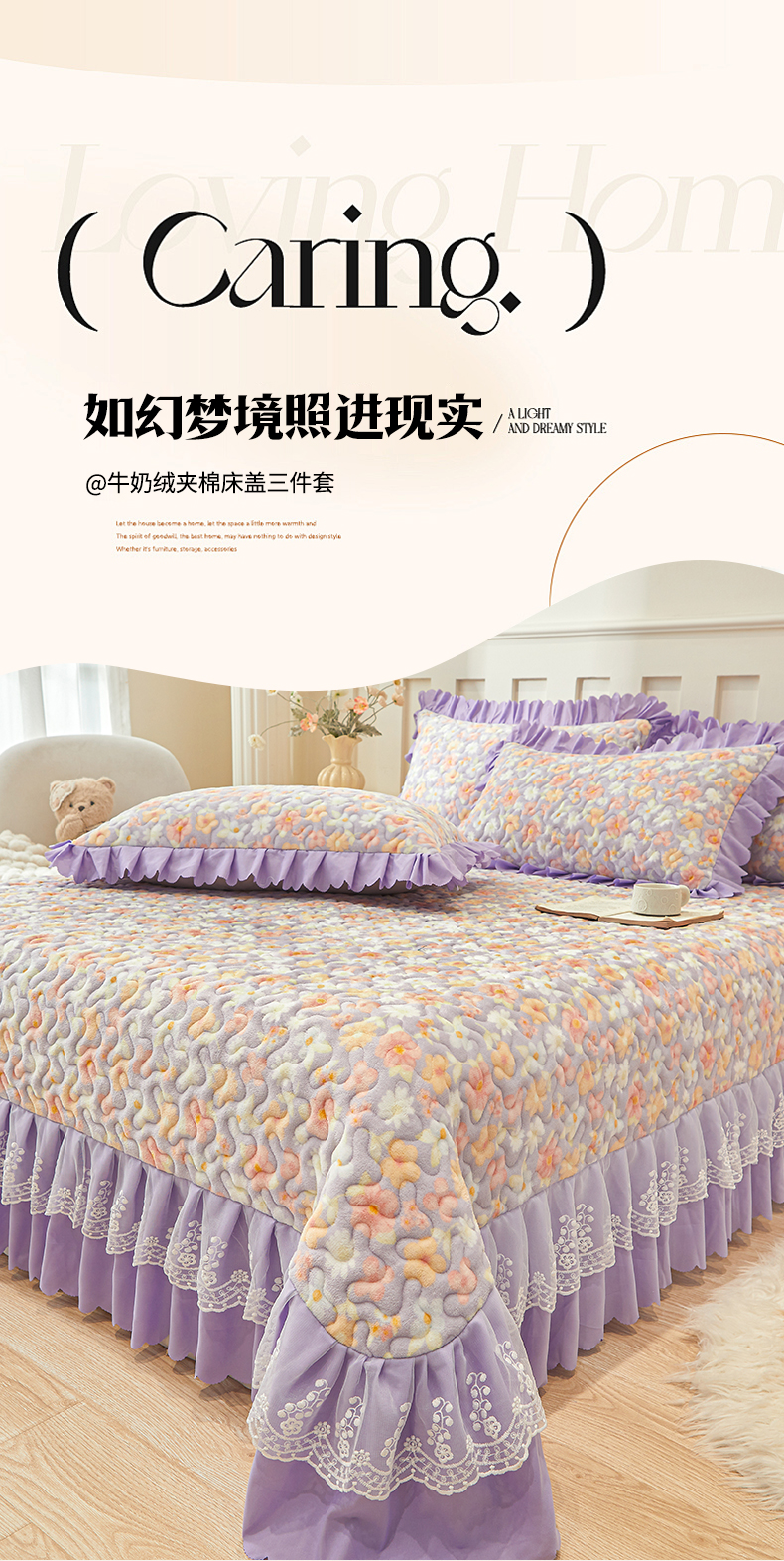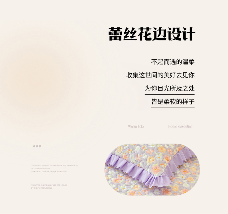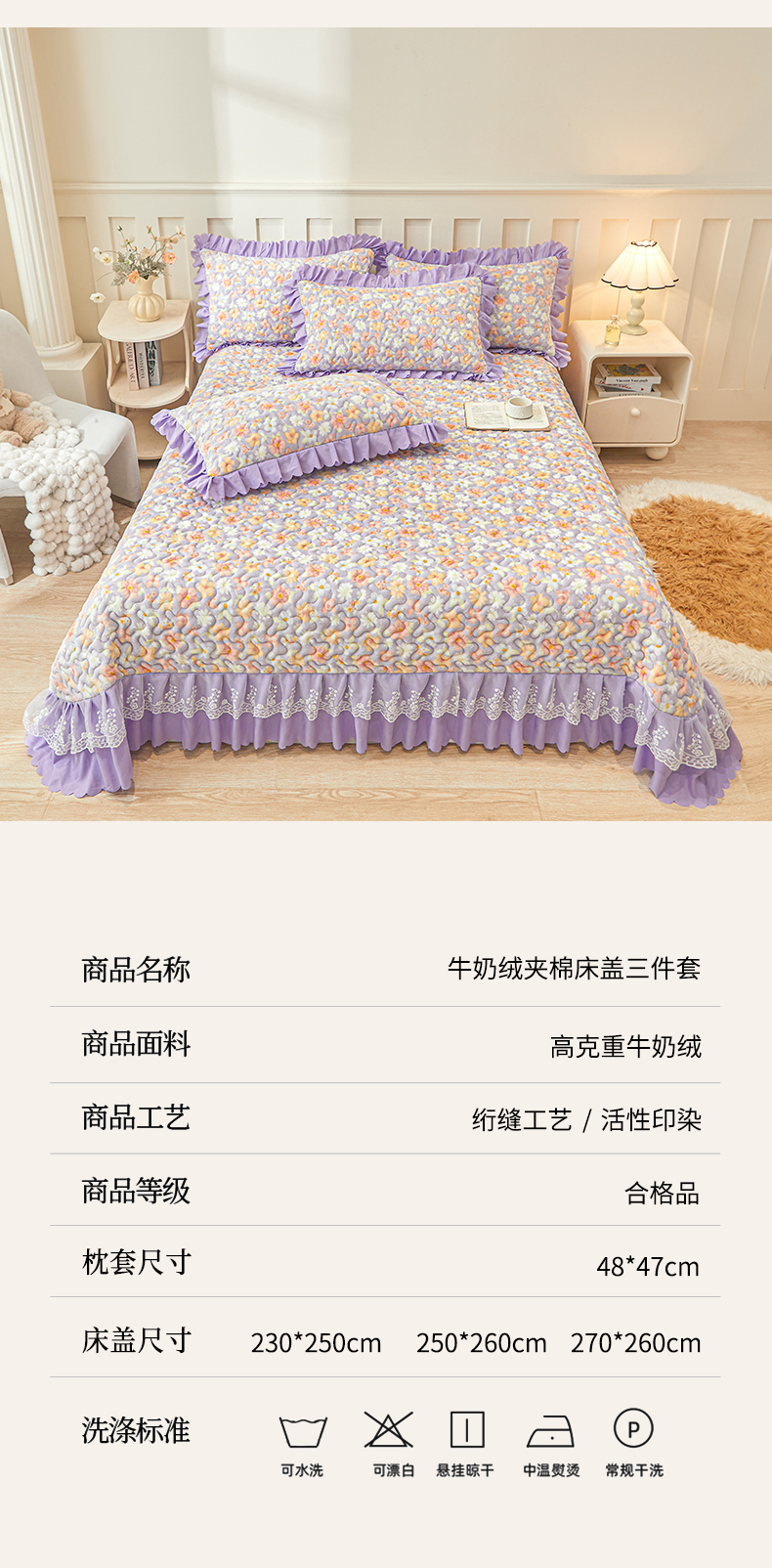 当前位置: 91家纺网 > 商品网购 > 床品套件 > 三件套 > 艾裙海 2025新款蕾丝边牛奶绒床盖三件套 花漾-紫