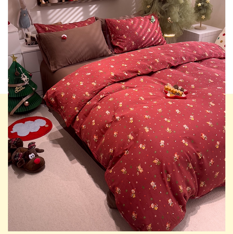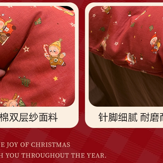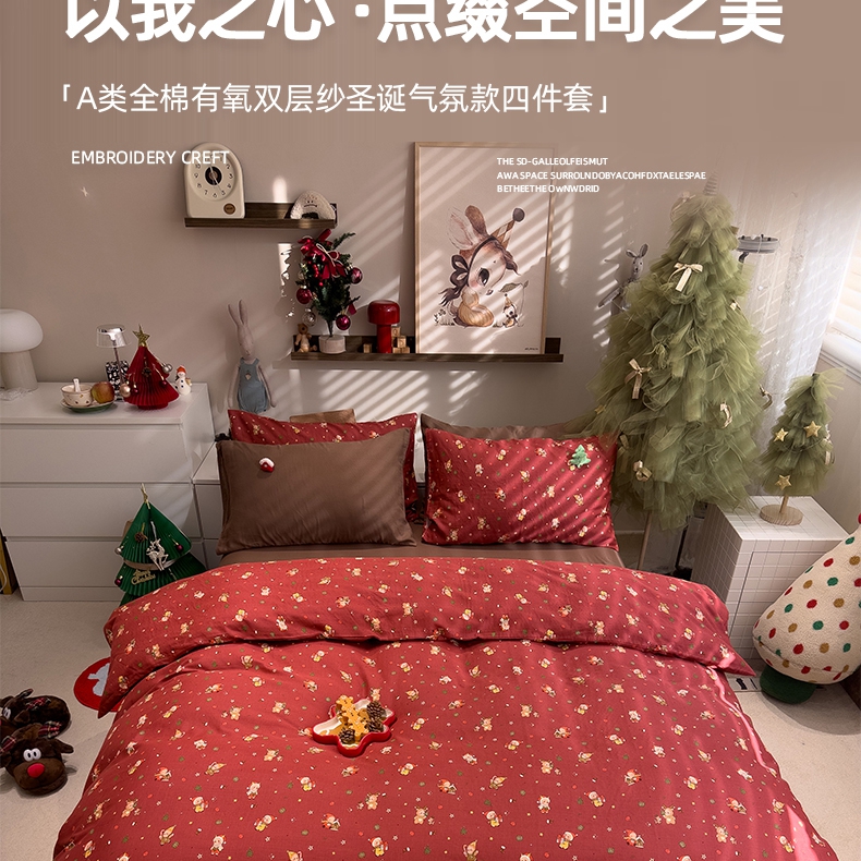 当前位置: 91家纺网 > 商品网购 > 床品套件 > 四件套 > 全棉普通四件套 > 呗旺鹿 2025新款全棉纯棉有氧双层纱圣诞气氛款四件套 圣诞手账 红