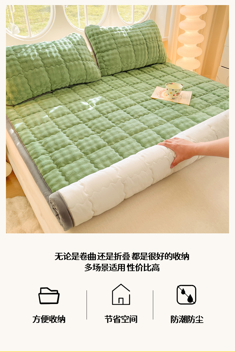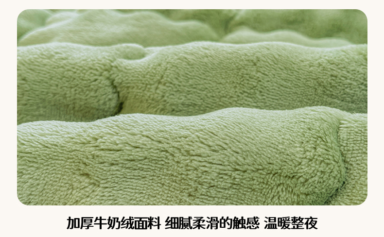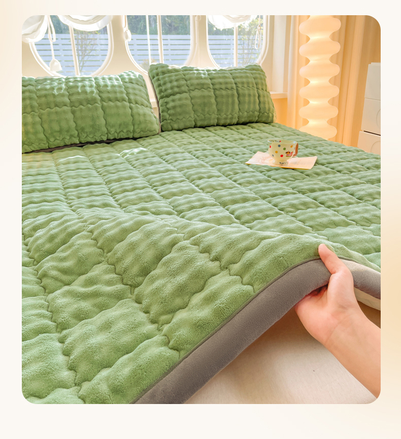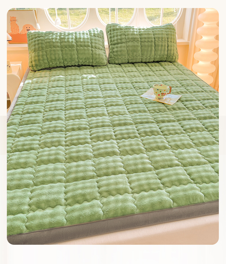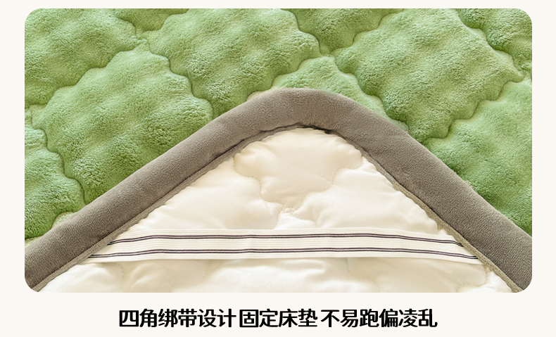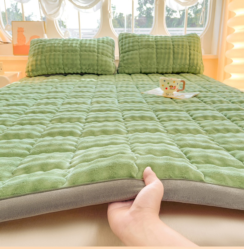 商品名称:奇丝雅 2025新款A类牛奶绒泡泡绒床褥床垫床盖兔毛绒家用学生宿舍上下铺寝室褥子软垫床护垫夹棉(大床) 清新绿