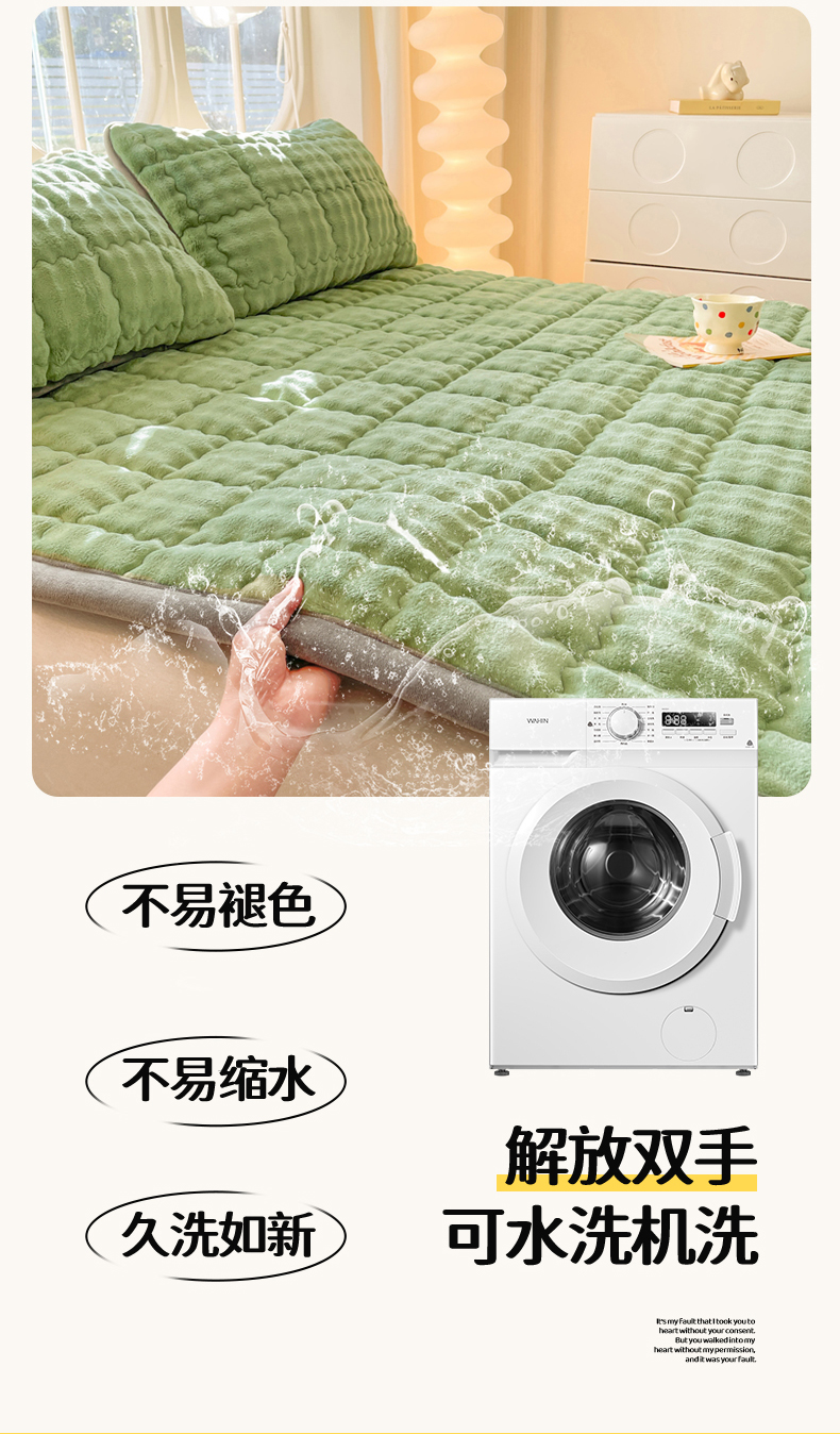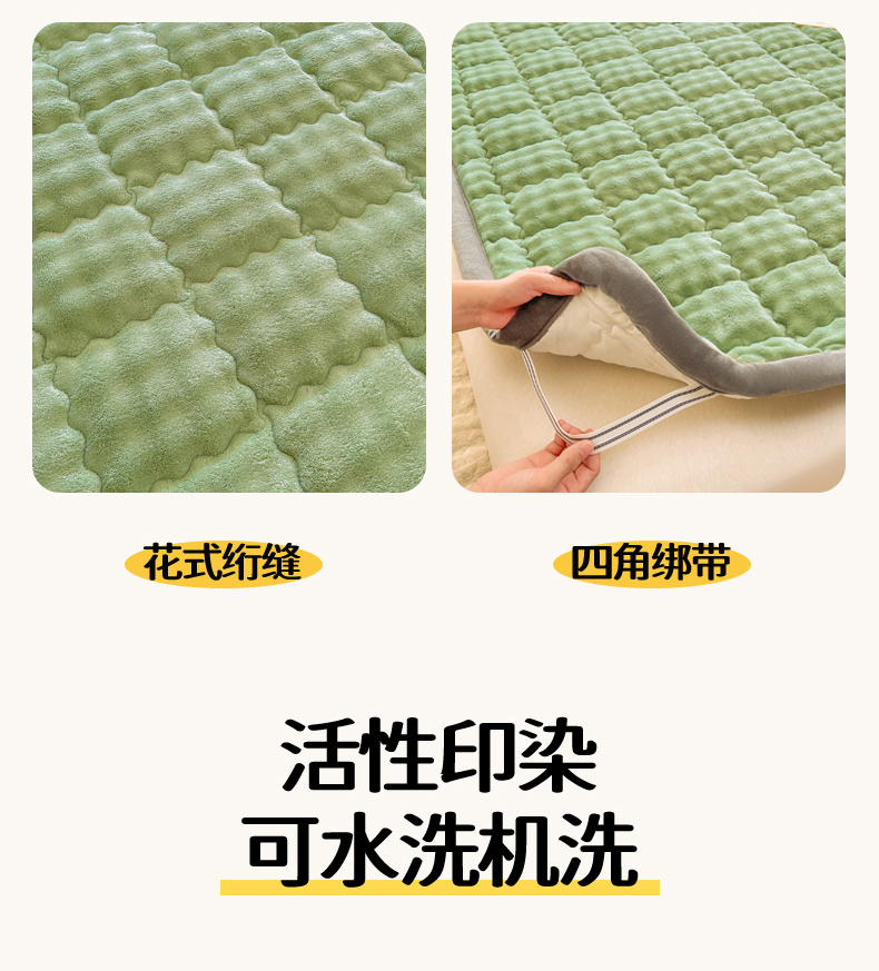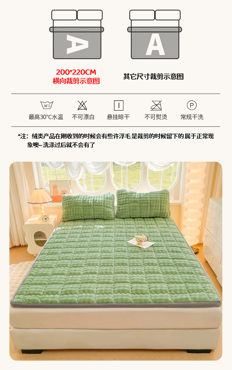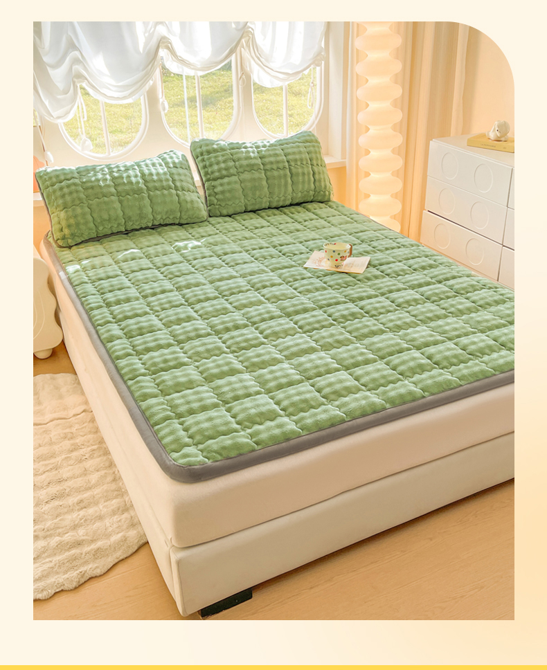 商品名称:奇丝雅 2025新款A类牛奶绒泡泡绒床褥床垫床盖兔毛绒家用学生宿舍上下铺寝室褥子软垫床护垫夹棉(大床) 清新绿