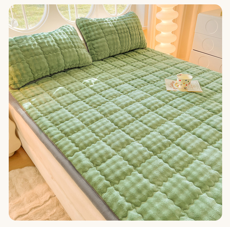 奇丝雅 2025新款A类牛奶绒泡泡绒床褥床垫床盖兔毛绒家用学生宿舍上下铺寝室褥子软垫床护垫夹棉(大床) 清新绿