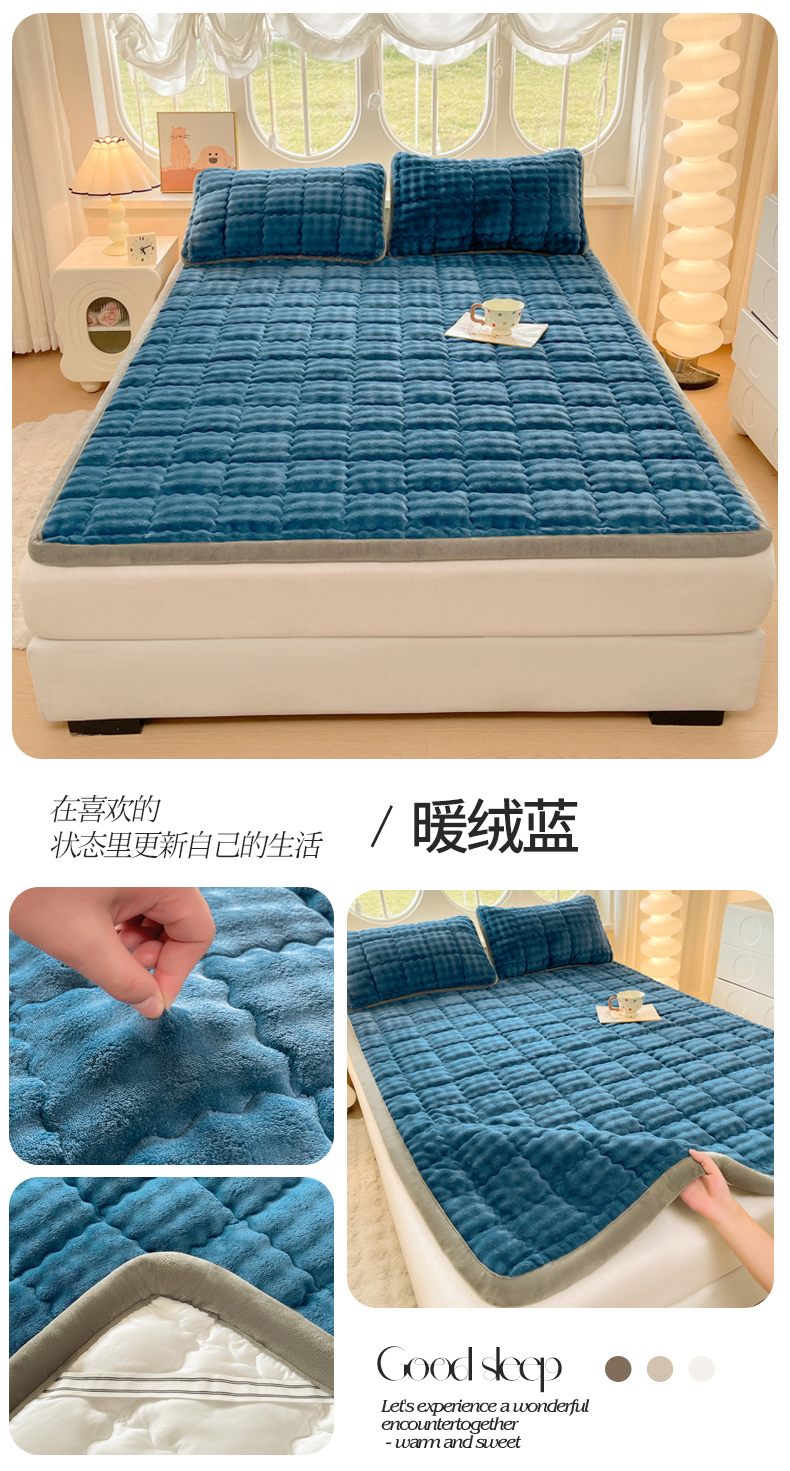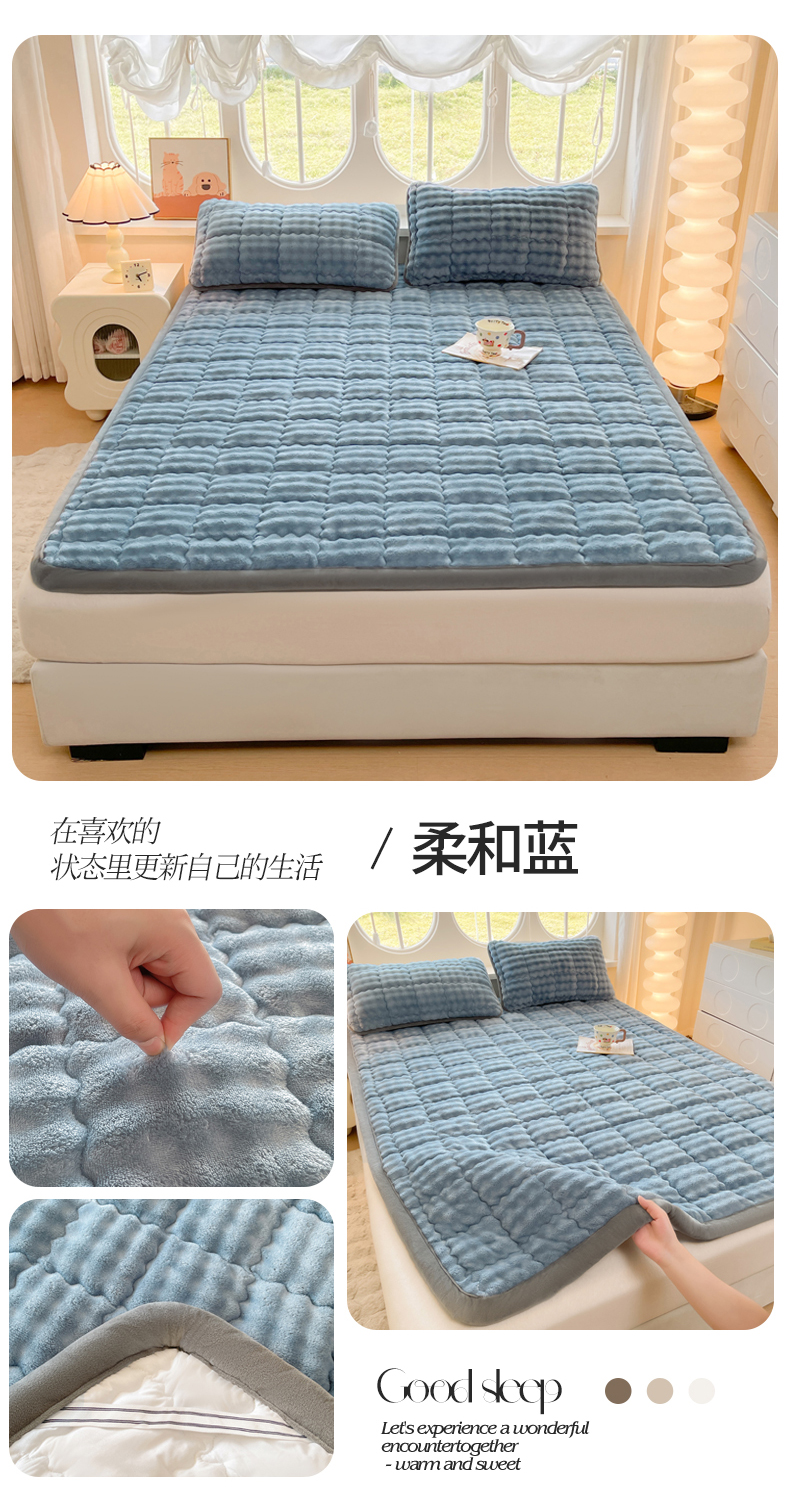 (总)奇丝雅 2025新款A类牛奶绒泡泡绒床褥床垫床盖兔毛绒家用学生宿舍上下铺寝室褥子软垫床护垫夹棉(学生床),爱心咖,繁星,幻影灰,暖绒蓝,趴趴狗,清新绿,柔和蓝,星星猫咪,樱桃猫咪,月亮湾