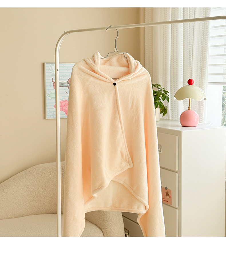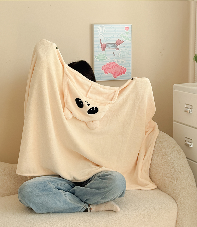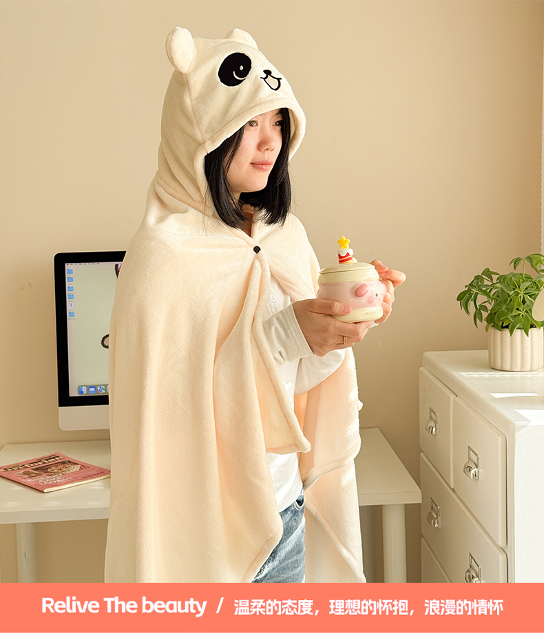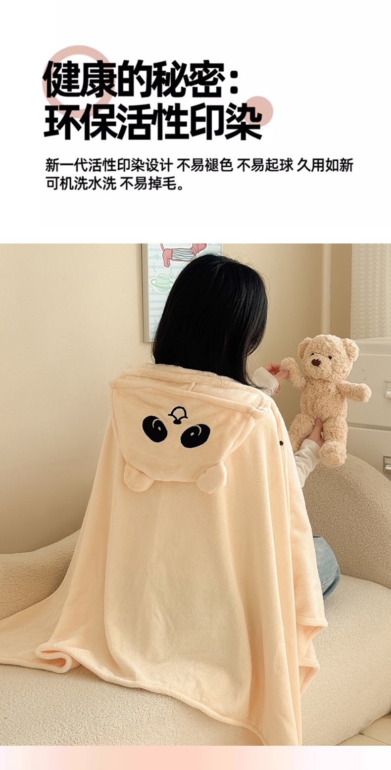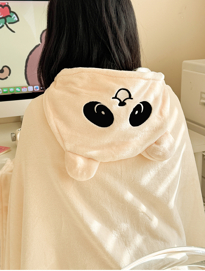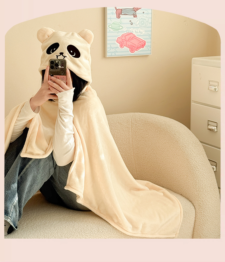 简宜家居(朝初家纺) 2025新款带帽披肩毯子熊猫和熊午休毯带帽毯 熊猫-米黄