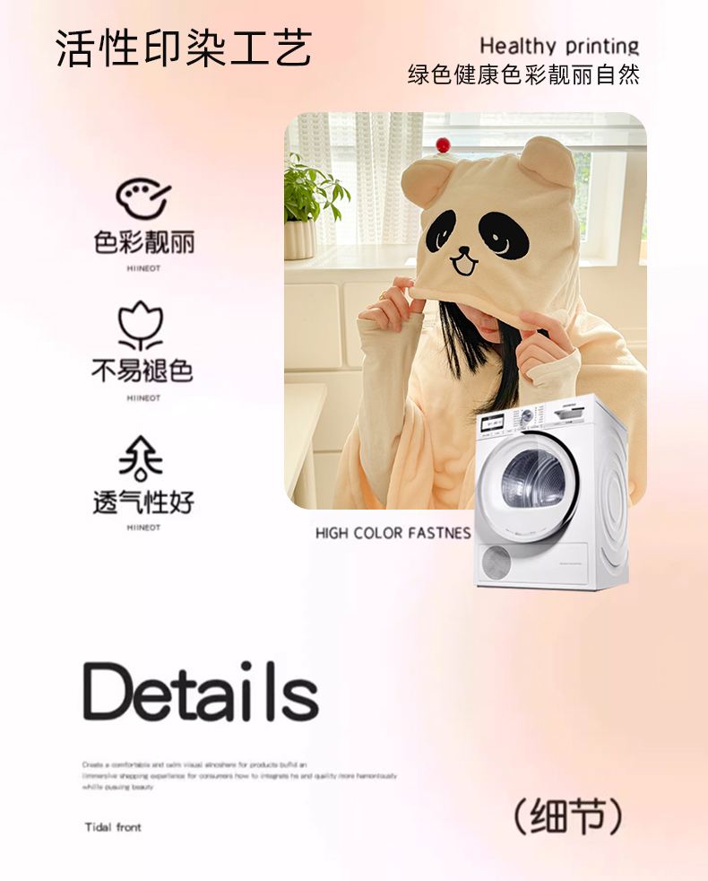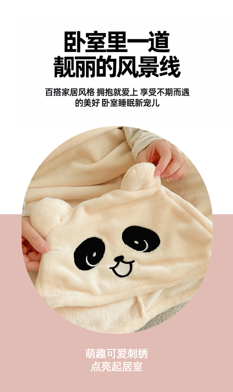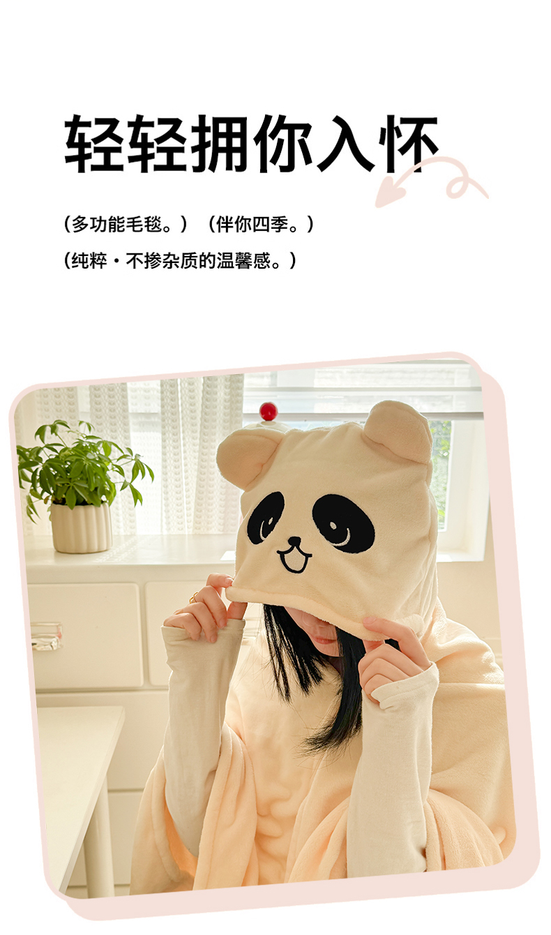 商品名称:简宜家居(朝初家纺) 2025新款带帽披肩毯子熊猫和熊午休毯带帽毯 熊猫-米黄