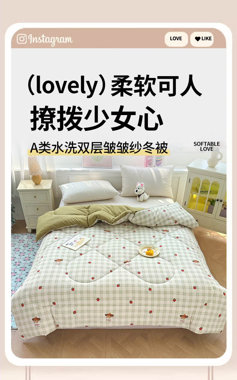 (总)桔禾家纺 2026新款云感有氧双层纱冬被抗菌被春秋被被子被芯,A类水洗双层皱皱纱冬被-蔷薇之恋,A类水洗双层皱皱纱冬被-波点世界,A类水洗双层皱皱纱冬被-奥黛丽,A类水洗双层皱皱纱冬被-呆萌熊猫,A类水洗双层皱皱纱冬被-草莓小狗,A类水洗双层皱皱纱冬被-蝶梦,A类水洗双层皱皱纱冬被-鹅鹅鹅,A类水洗双层皱皱纱冬被-格子樱桃,A类水洗双层皱皱纱冬被-好伙伴,A类水洗双层皱皱纱冬被-蝴蝶结,A类水洗双层皱皱纱冬被-回忆,A类水洗双层皱皱纱冬被-拉布布,A类水洗双层皱皱纱冬被-零碎草莓,A类水洗双层皱皱纱冬被-庆祝,A类水洗双层皱皱纱冬被-兔羞日记,A类水洗双层皱皱纱冬被-小萝莉,组合图