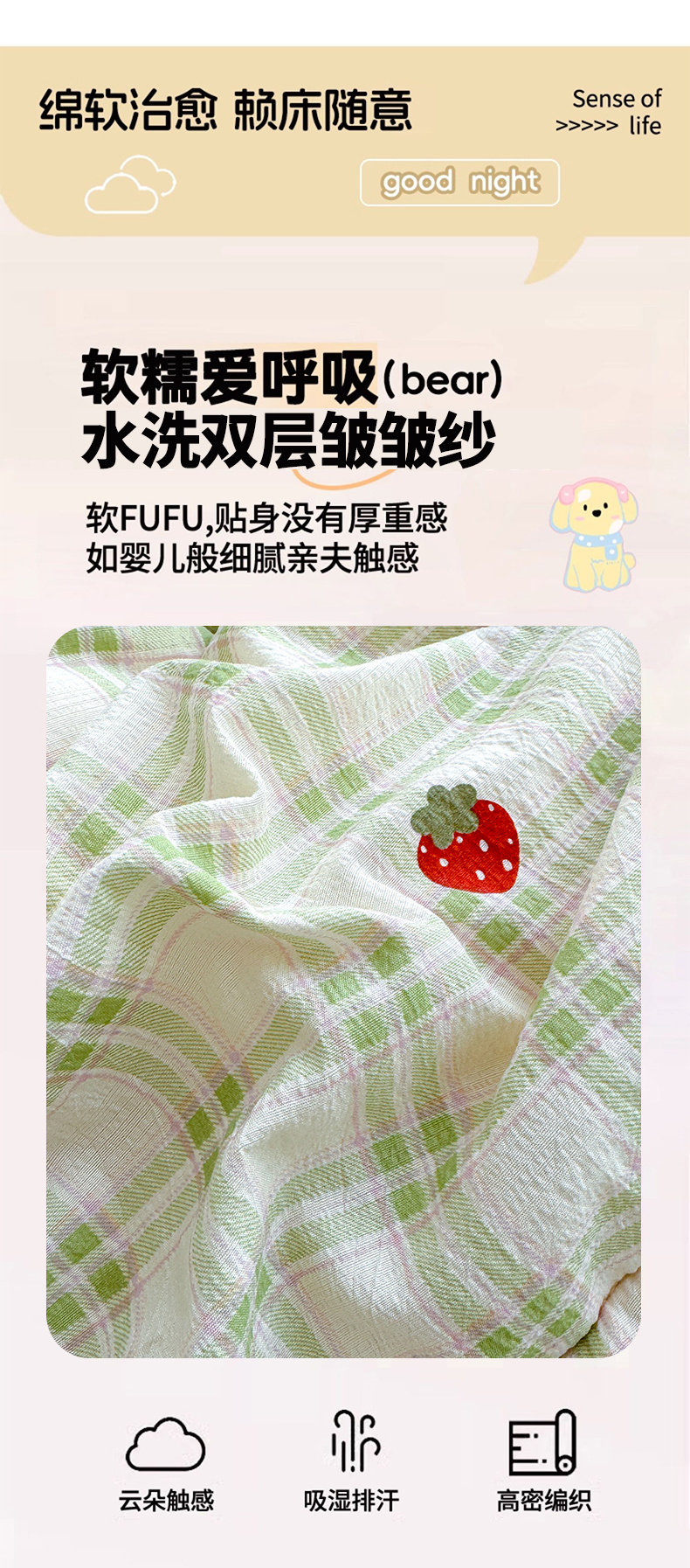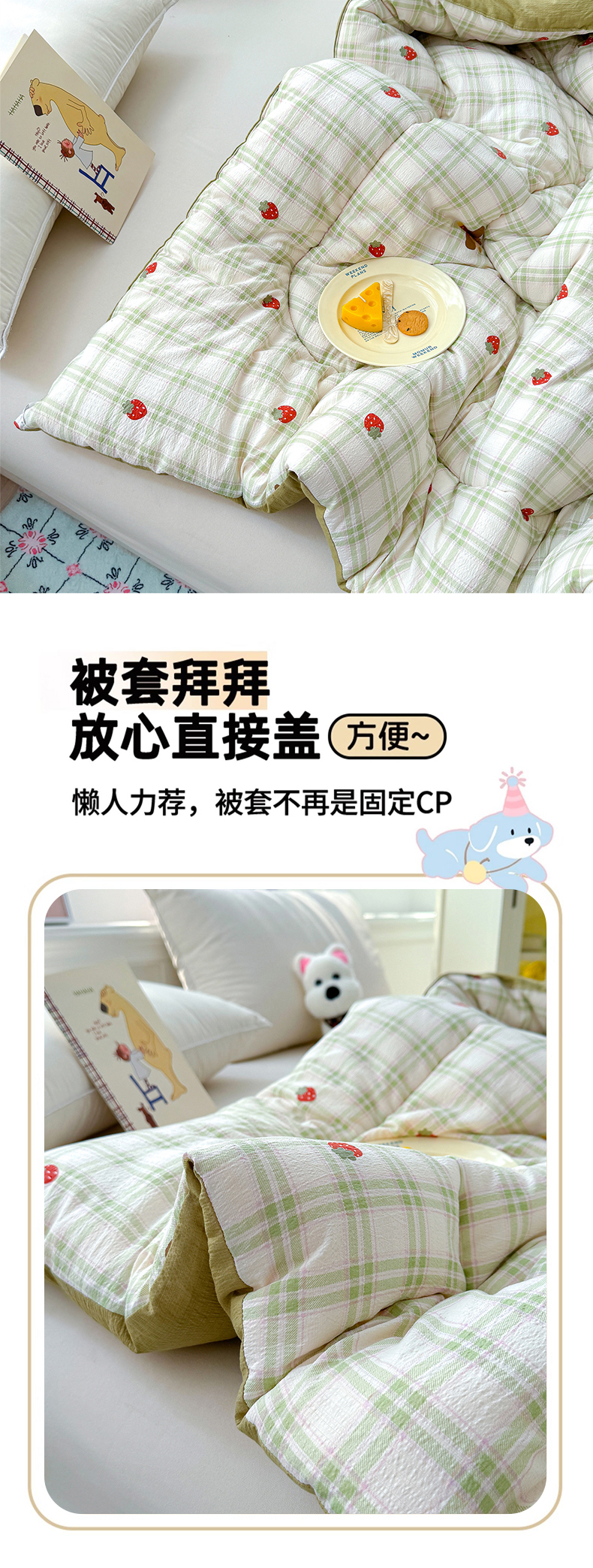 桔禾家纺 2026新款云感有氧双层纱冬被抗菌被春秋被被子被芯 A类水洗双层皱皱纱冬被-草莓小狗