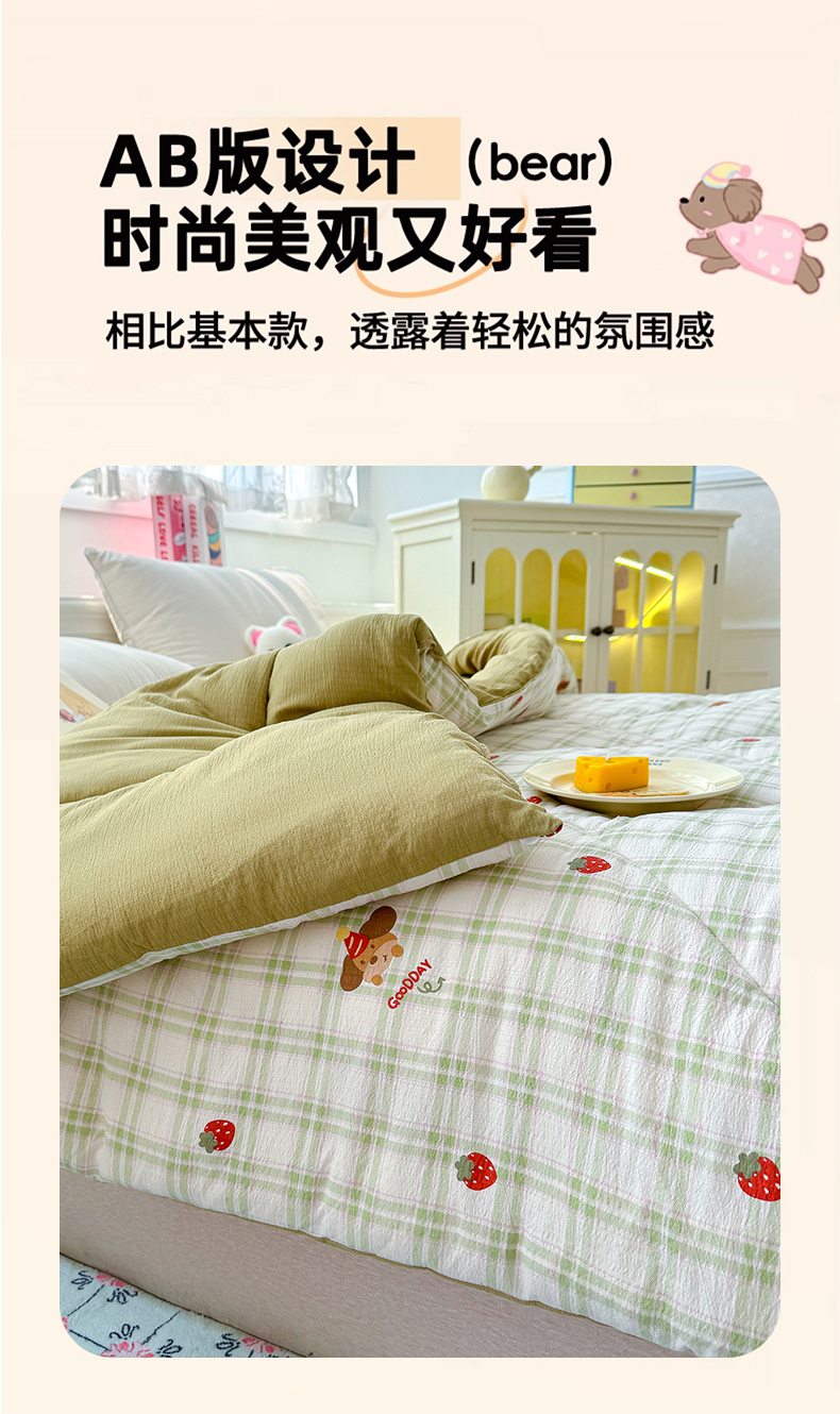 • 91家纺网 家纺一手货源 找家纺 桔禾家纺 2026新款云感有氧双层纱冬被抗菌被春秋被被子被芯 A类水洗双层皱皱纱冬被-草莓小狗