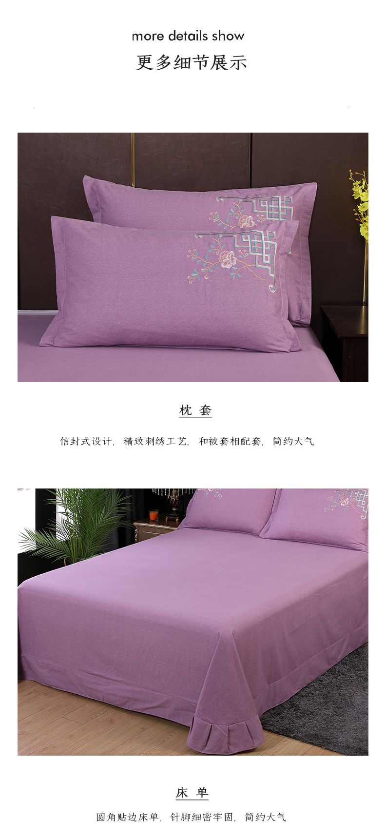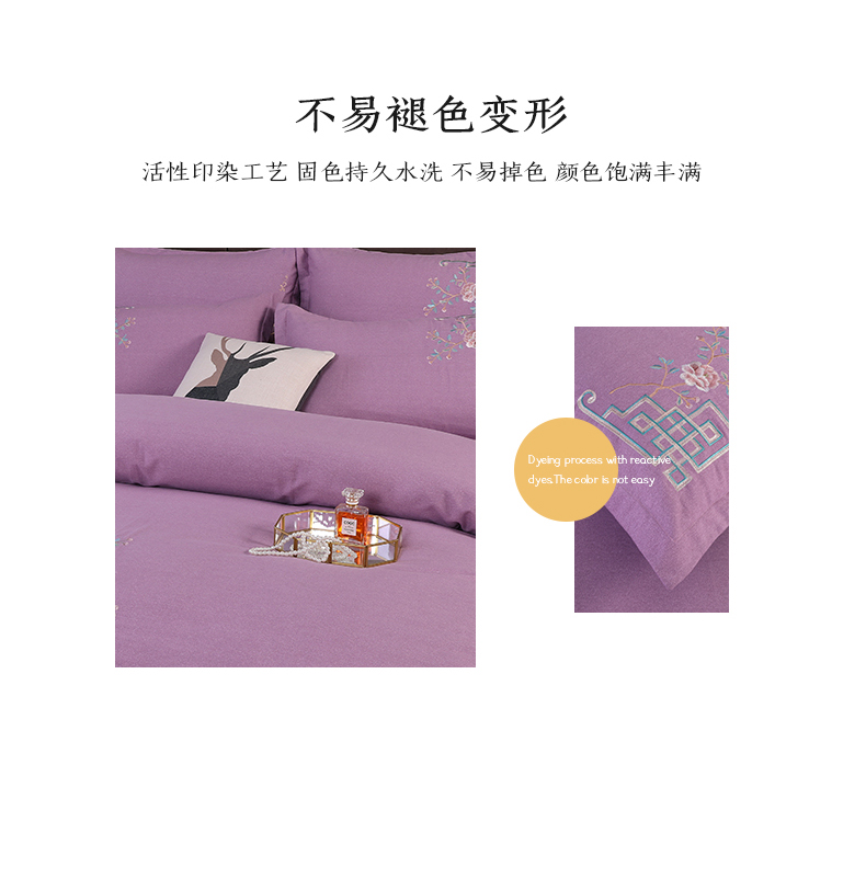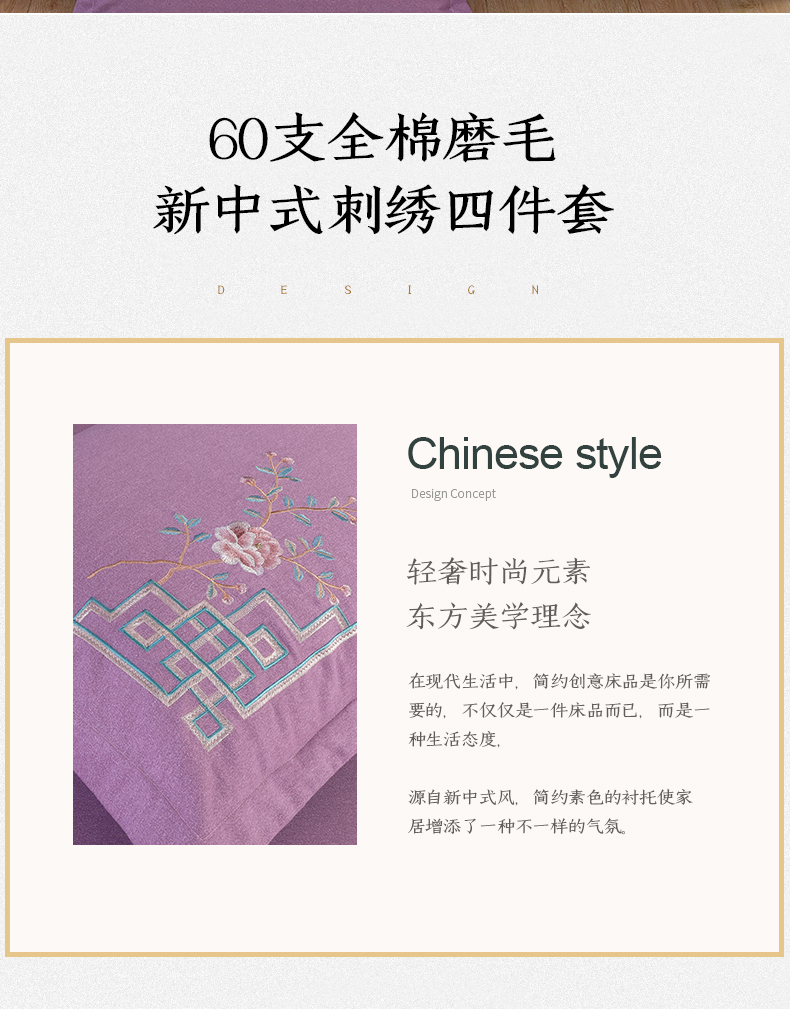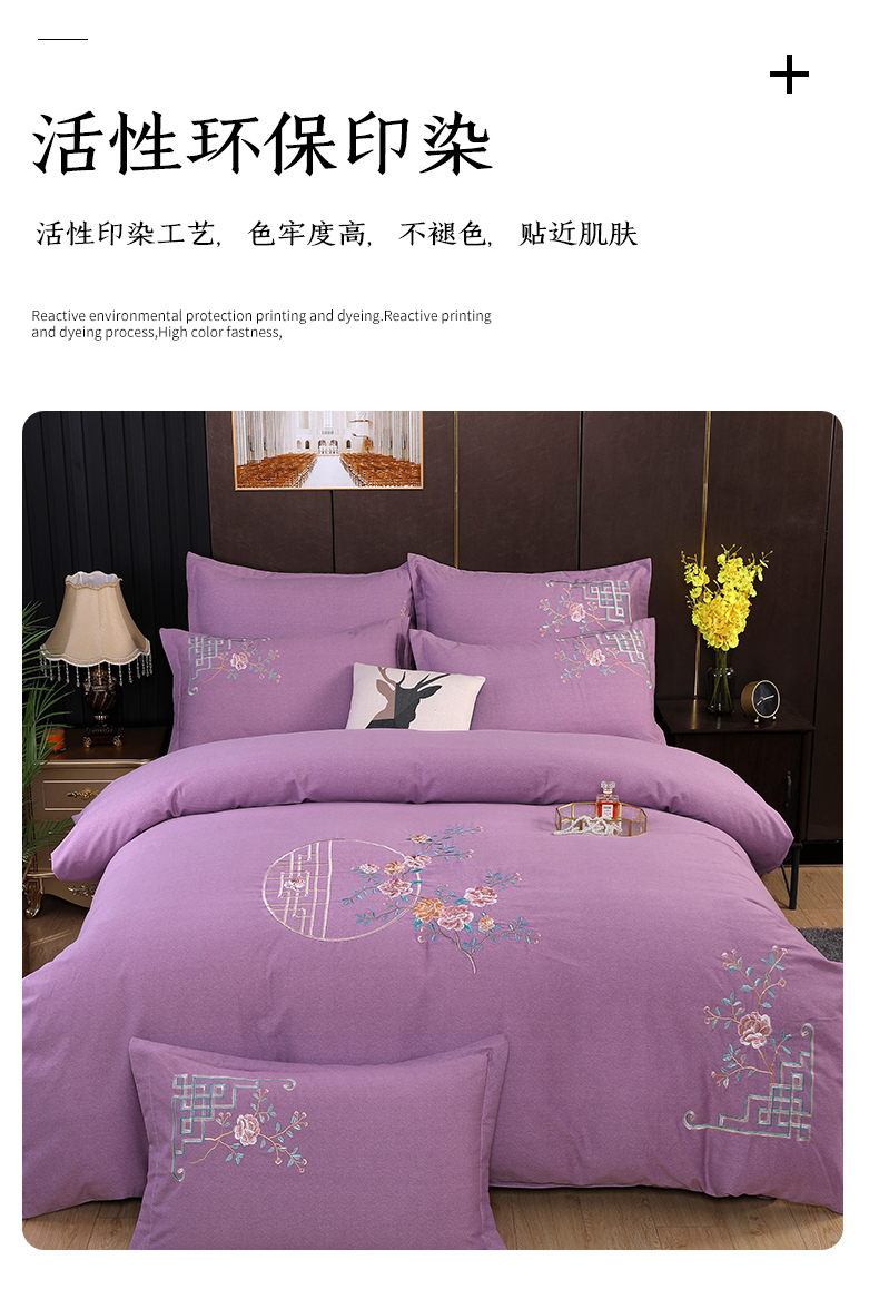 商品名称:浩情国际婚庆供货中心 2026新款秋冬60S高端全棉刺绣磨毛系列 花开满庭-紫豆沙