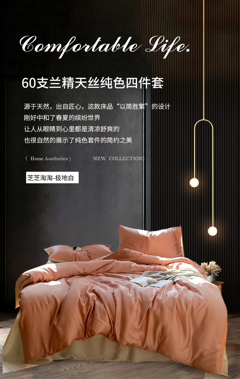 商品名称:浩情国际婚庆供货中心 2026新款60支奥地利兰精天丝纯色双拼系列四件套 芝芝淘淘-极地白