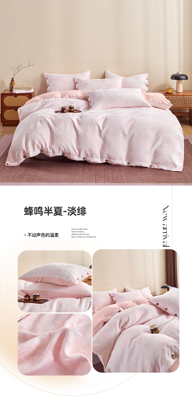 当前位置: 91家纺网 > 商品网购 > 床品套件 > 四件套 > 其它四件套 > 咏绒家纺工厂店 2025新款雪尼尔棉绒大提花四件套 蜂鸣半夏-淡绯