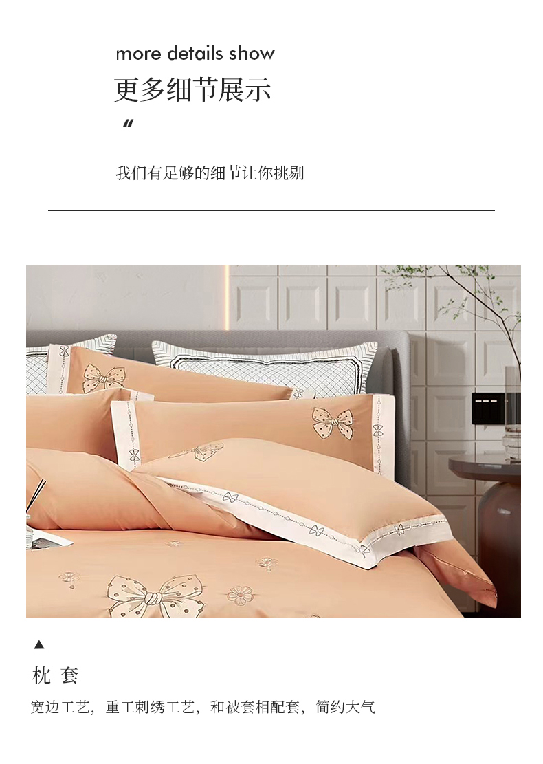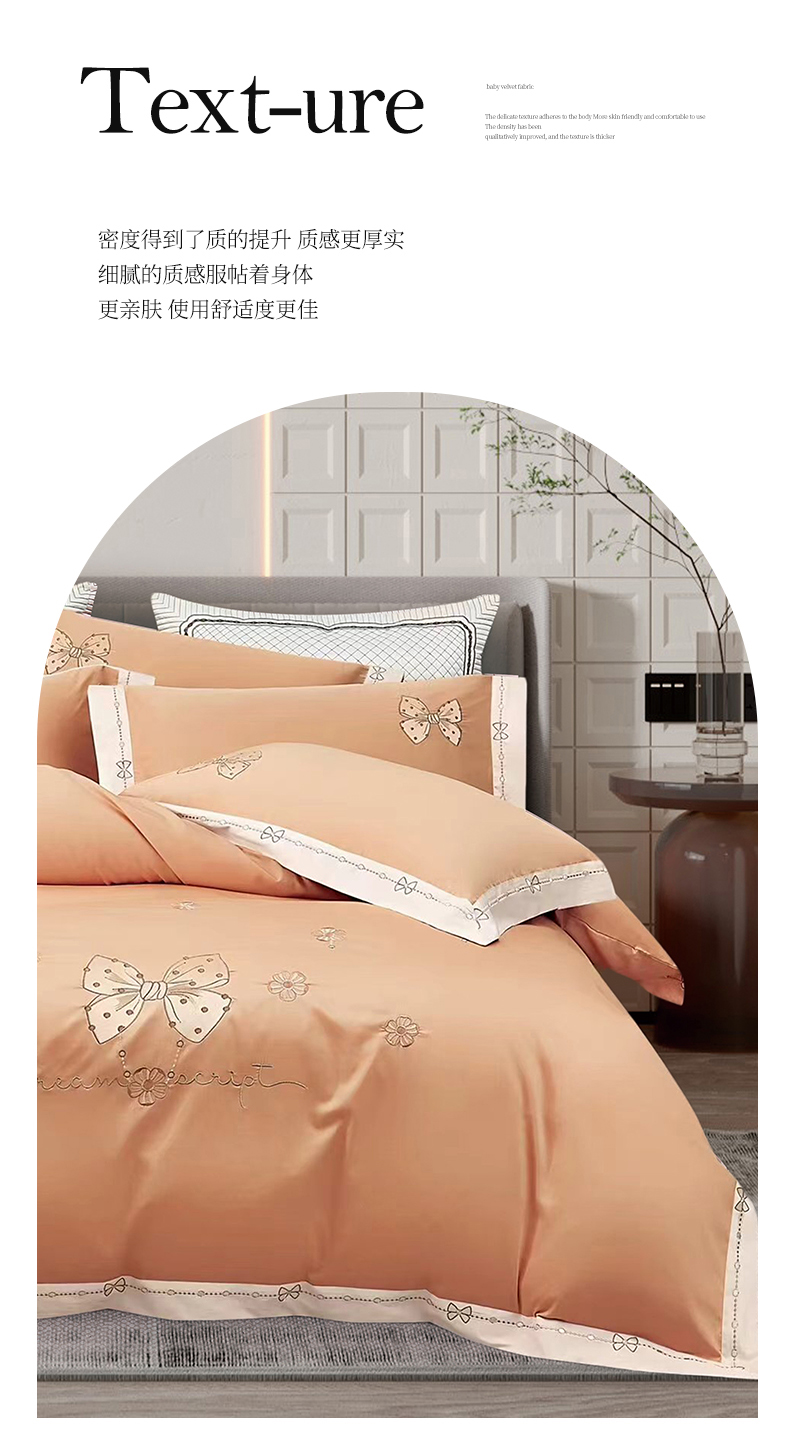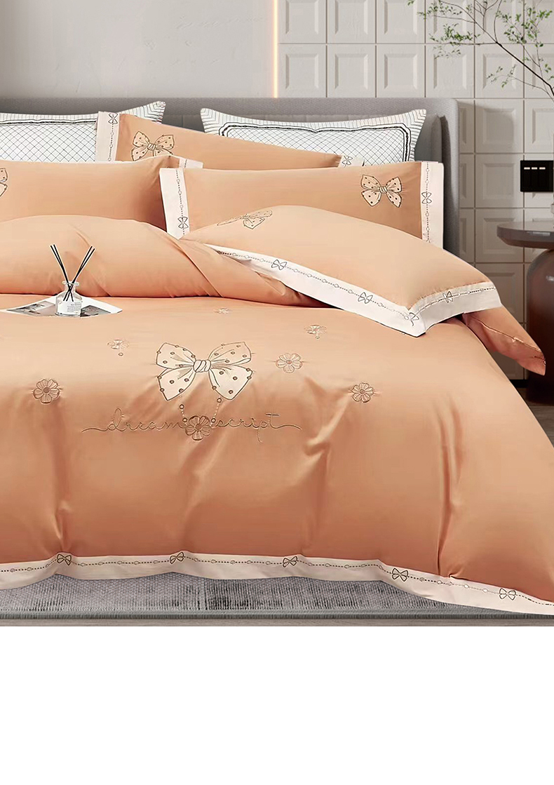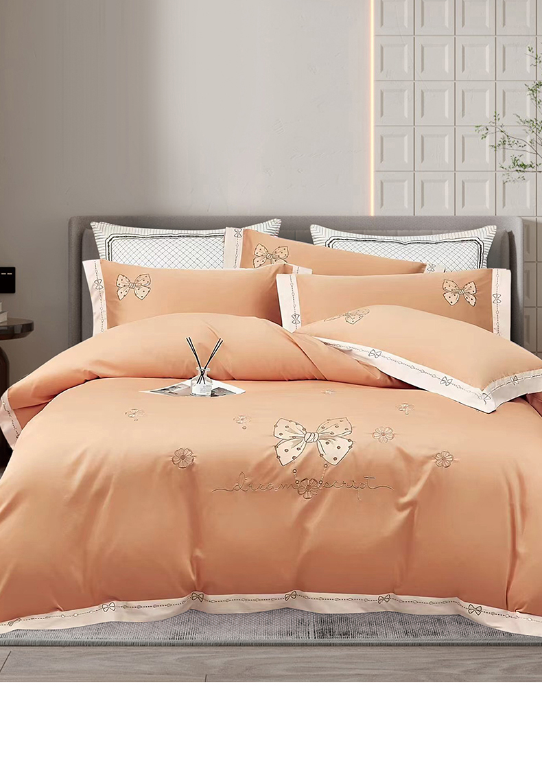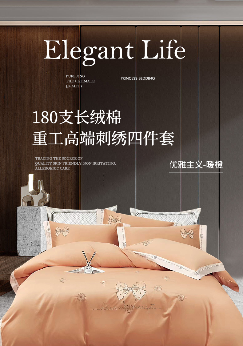 浩情国际婚庆供货中心 2026新款180支长绒棉重工刺绣四件套 优雅主义-暖橙