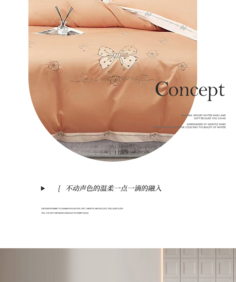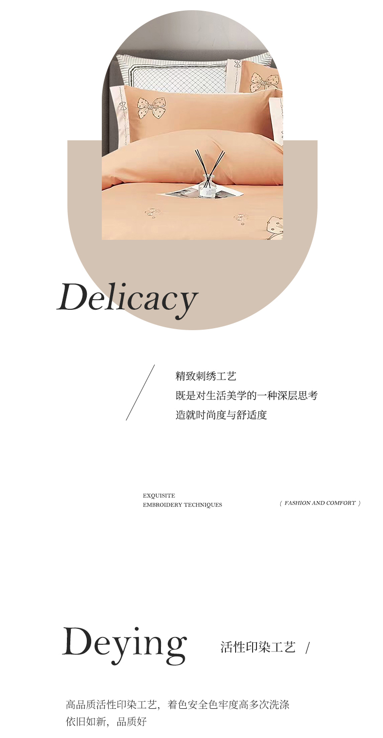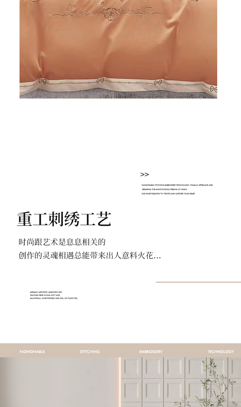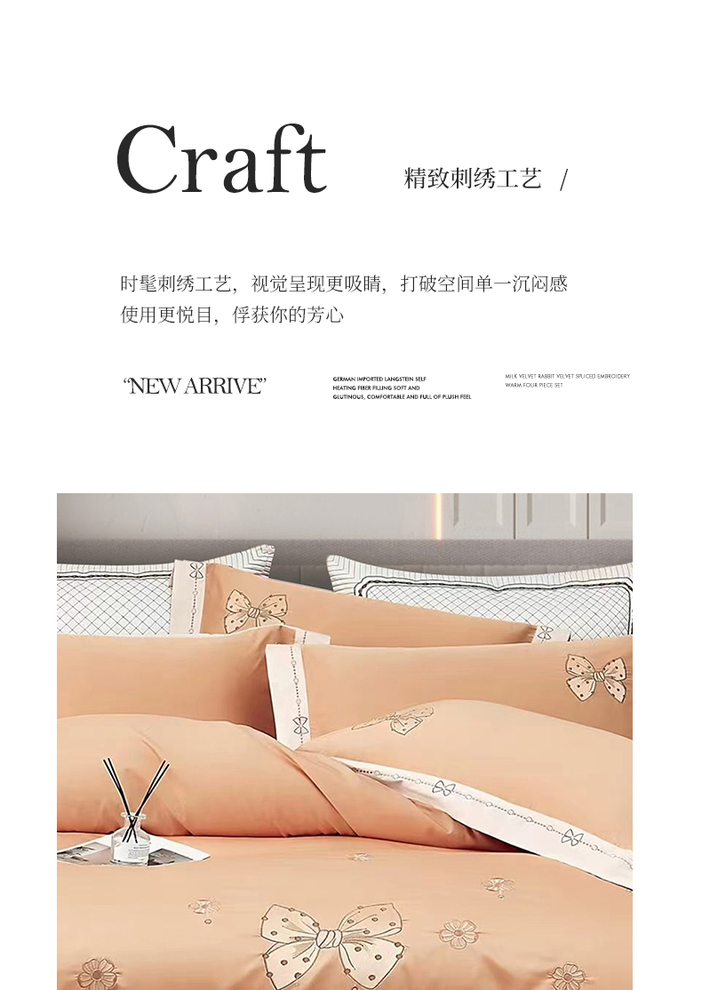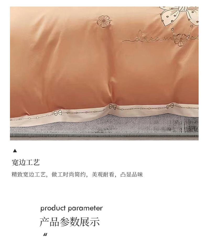 浩情国际婚庆供货中心 2026新款180支长绒棉重工刺绣四件套 优雅主义-暖橙