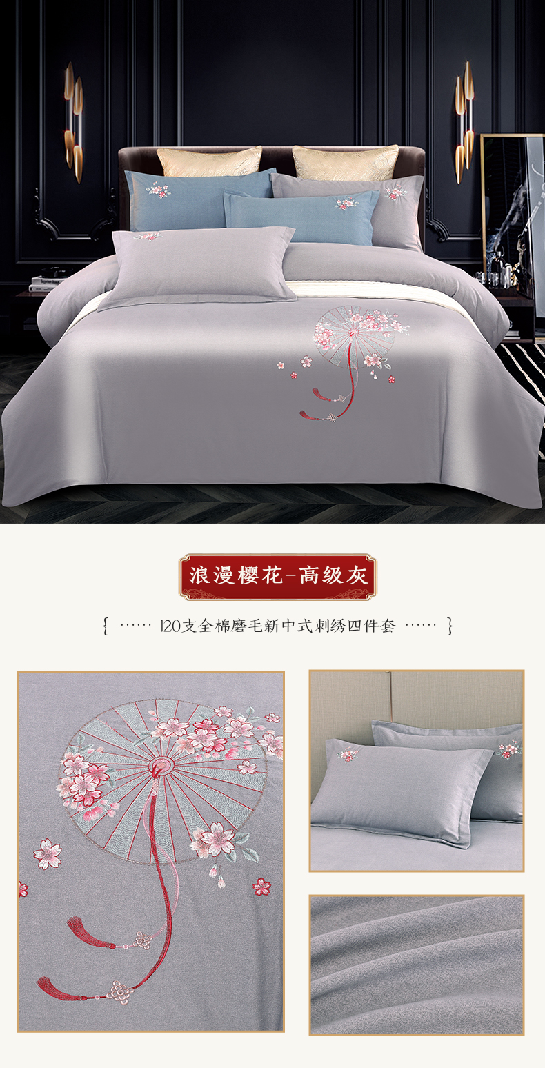 (总)浩情国际婚庆供货中心 2026新品-100支全棉长绒棉磨毛高端刺绣系列四件套,轻曼-豆沙,轻曼-湖兰,轻曼-米驼,轻曼-浅绿,轻曼-浅玉,轻曼-银灰,山水情-豆沙,山水情-粉玉,山水情-湖兰,山水情-米驼,山水情-浅灰,山水情-水兰