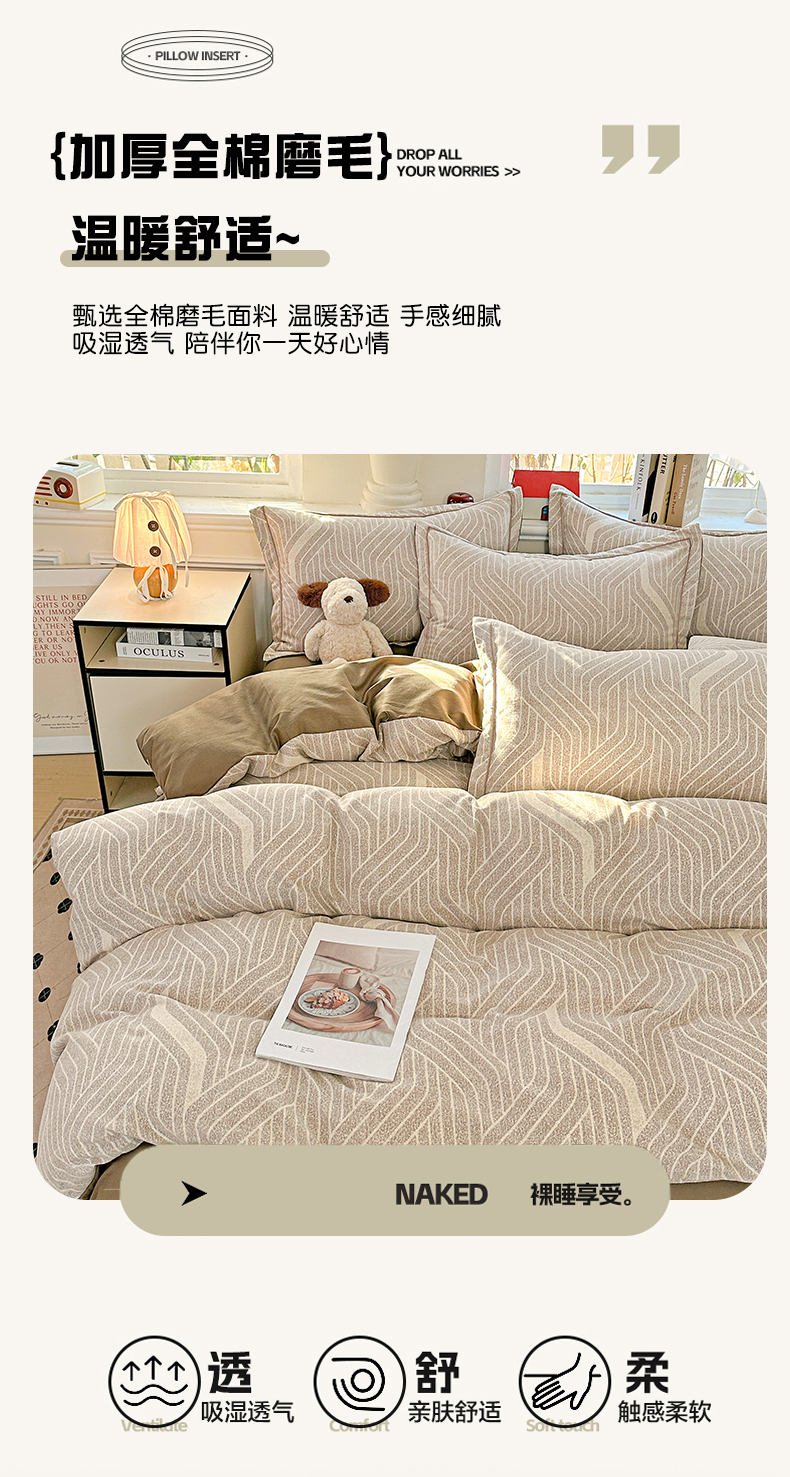商品名称:曲之慕 2026新款全棉纯棉加厚喷气磨毛印花四件套 艾格拉