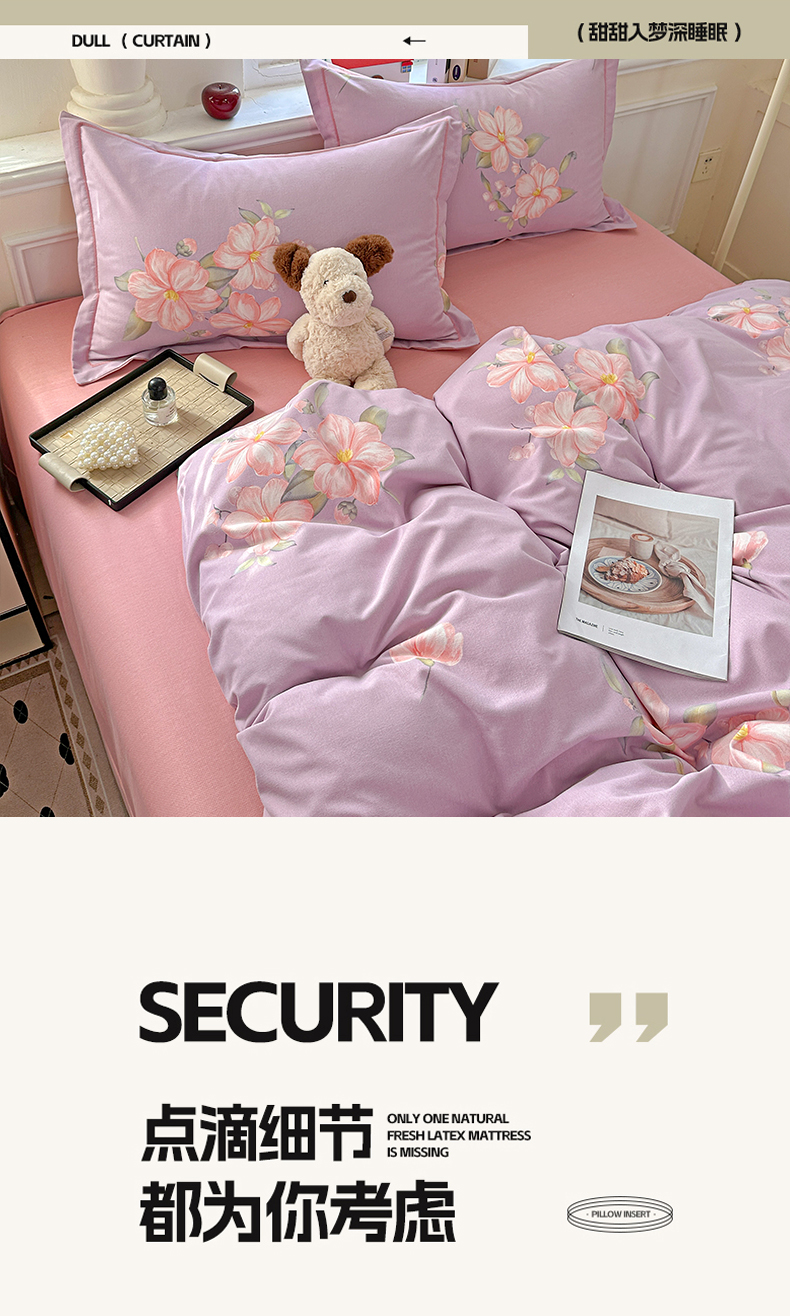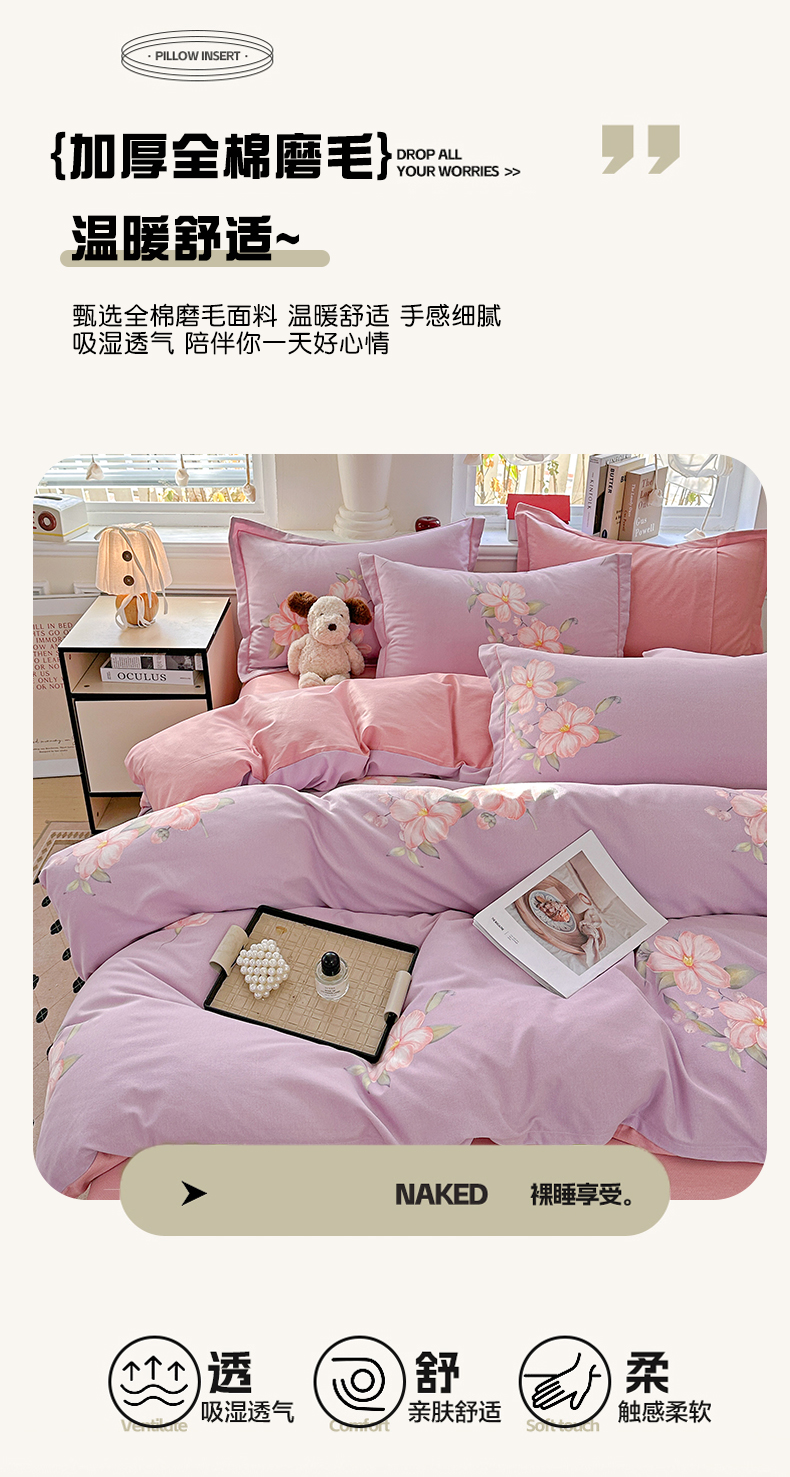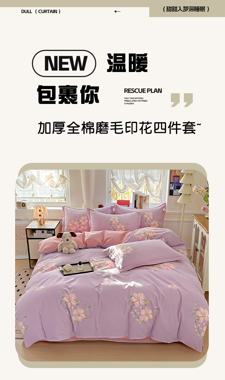 曲之慕 2026新款全棉纯棉加厚喷气磨毛印花四件套 紫韵