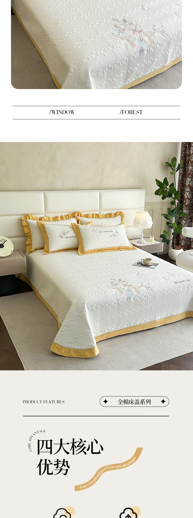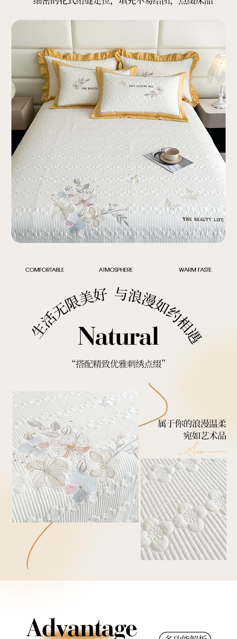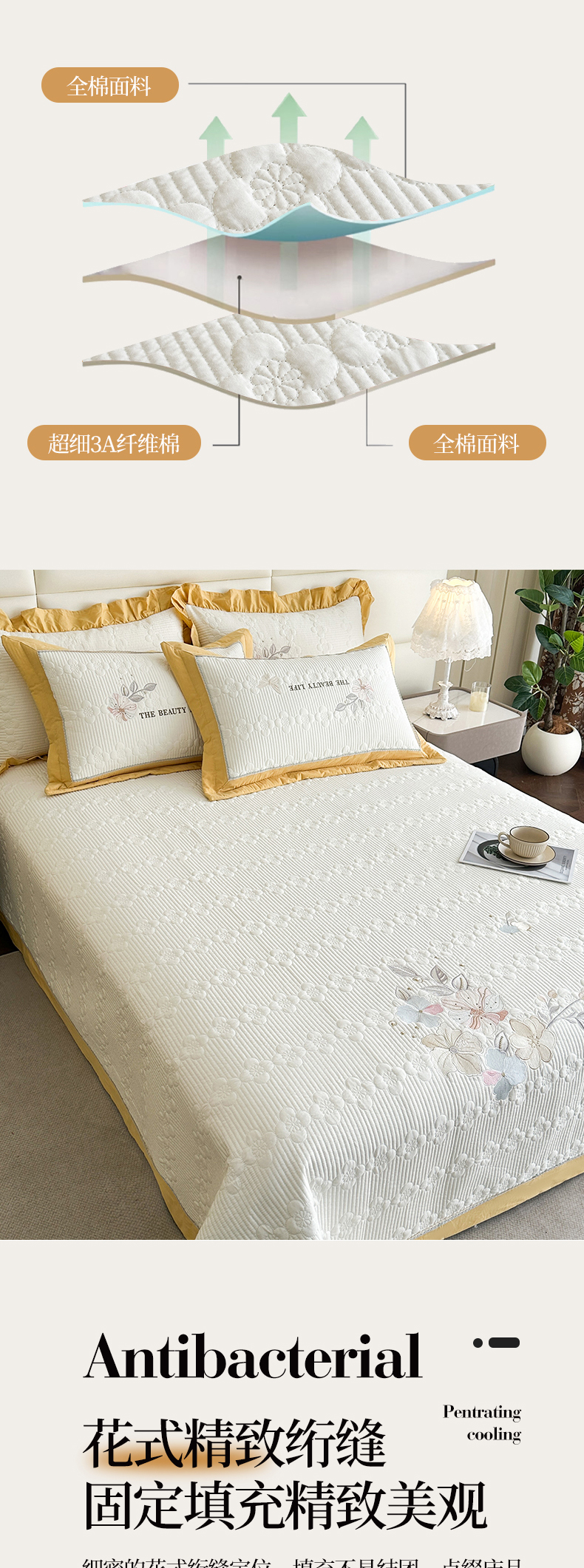 商品名称:紫碧螺家纺 2025新款全棉水洗绣花欧式床盖 奶昔-白边