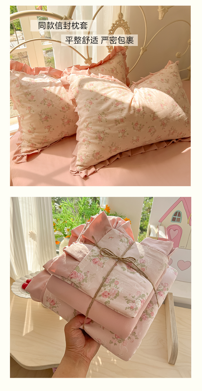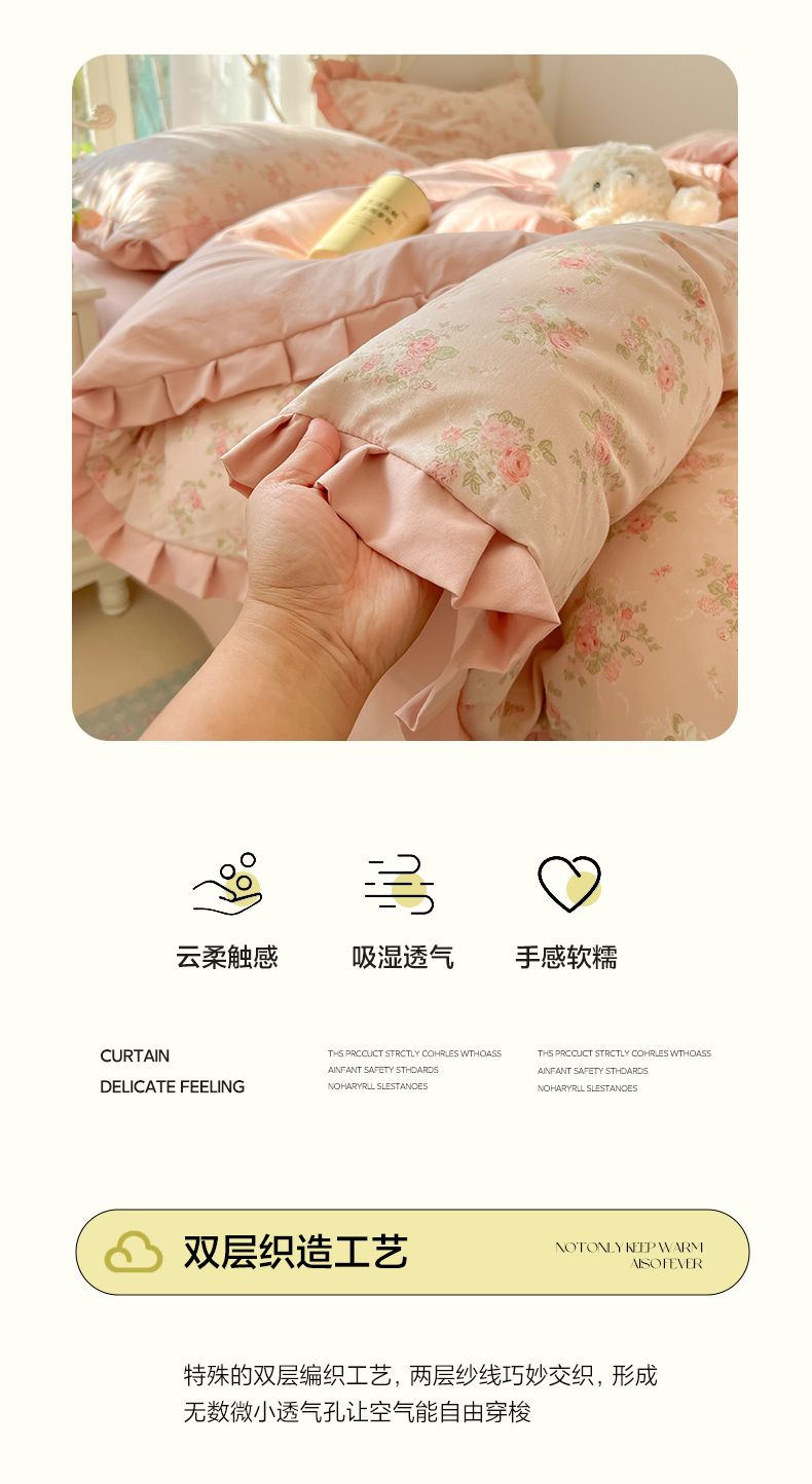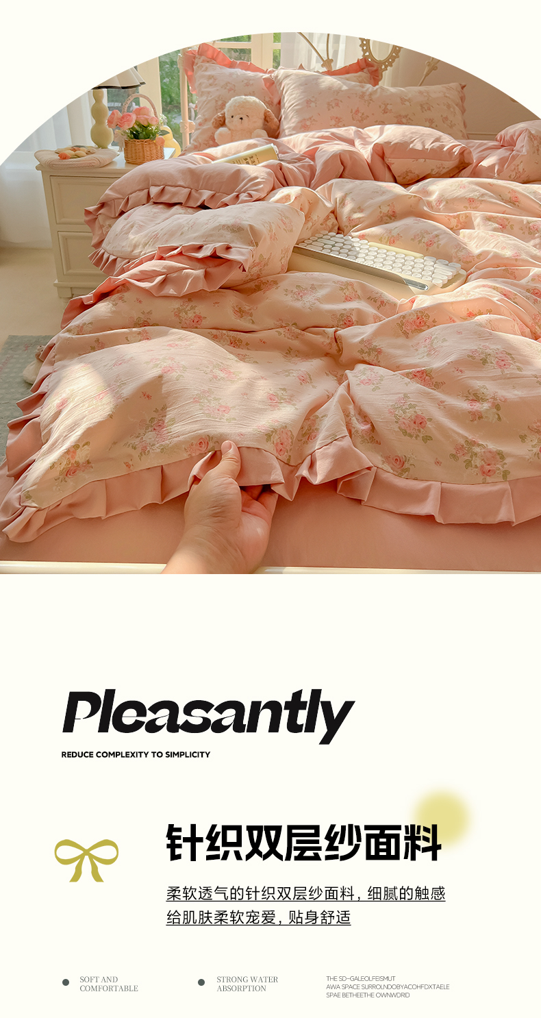 当前位置: 91家纺网 > 商品网购 > 床品套件 > 四件套 > 双层纱四件套 > 韩巢家纺 2026新款花边款针织双层纱四件套 春和豆沙