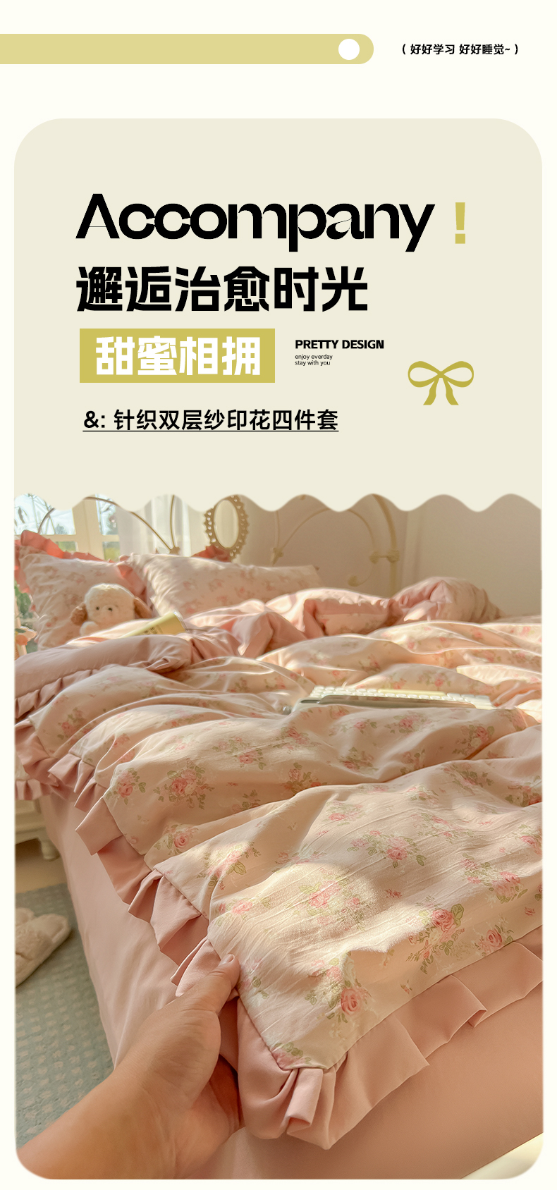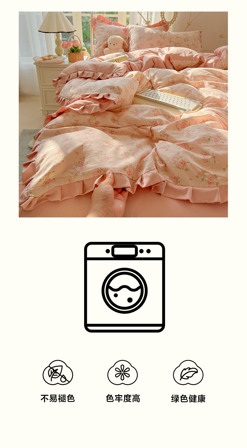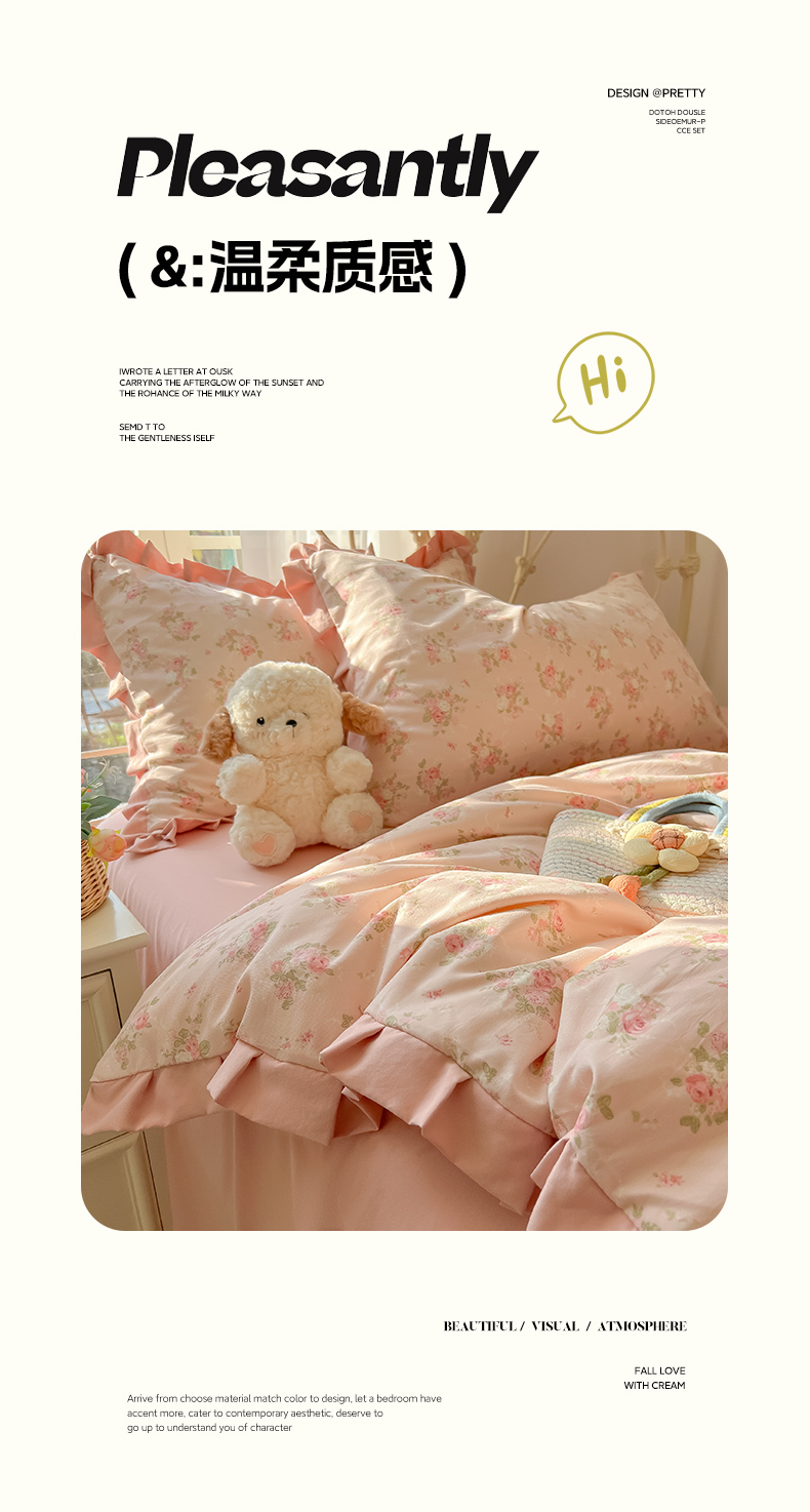 当前位置: 91家纺网 > 商品网购 > 床品套件 > 四件套 > 双层纱四件套 > 韩巢家纺 2026新款花边款针织双层纱四件套 春和豆沙