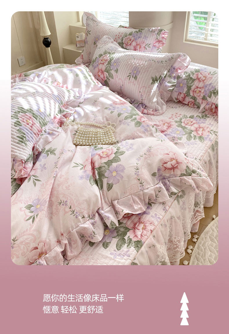 当前位置: 91家纺网 > 商品网购 > 床品套件 > 四件套 > 全棉普通四件套 > 乐逸家纺 2025新款100%纯棉全棉印花法式风情蕾丝花边床裙床盖款四件套 宫廷庄园-粉
