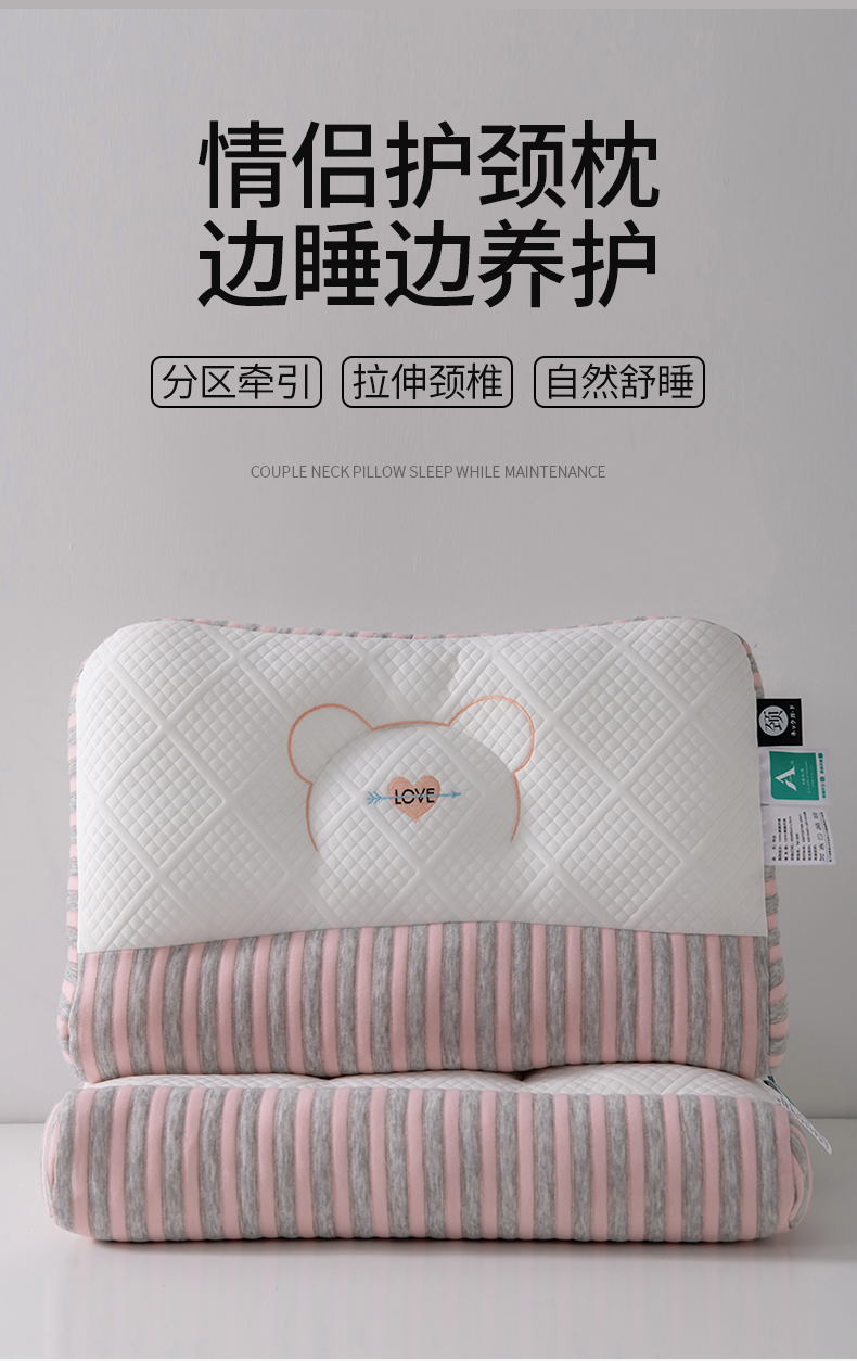 (总)永乐枕芯 2025新款情侣款深睡SPA枕枕头枕芯,情侣护颈枕-粉色,情侣护颈枕-蓝色