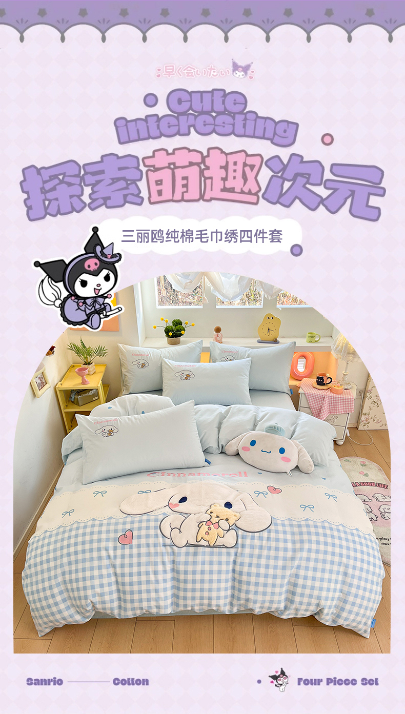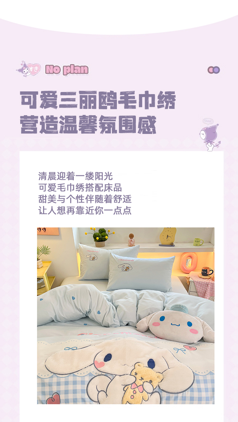 当前位置: 91家纺网 > 商品网购 > 床品套件 > 四件套 > 全棉普通四件套 > 金爱家 2026新款纯棉三丽鸥毛巾绣四件套 棉毛巾绣-开心大耳狗