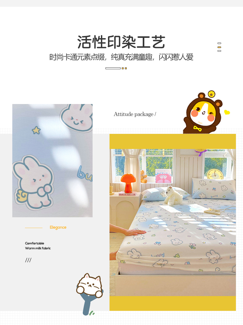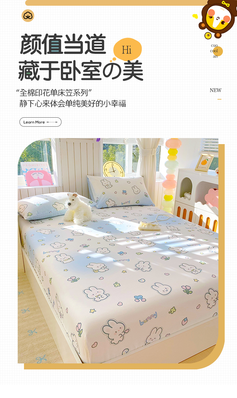 • 91家纺网 家纺一手货源 找家纺 小懒猪 2026新款全棉印花床笠 星兔软糖