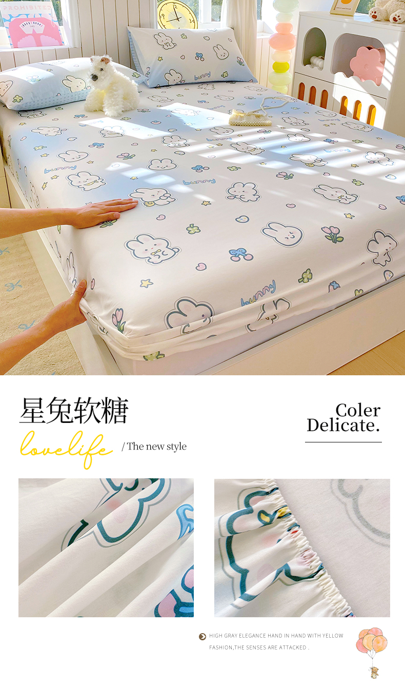 小懒猪 2026新款全棉印花床笠 星兔软糖