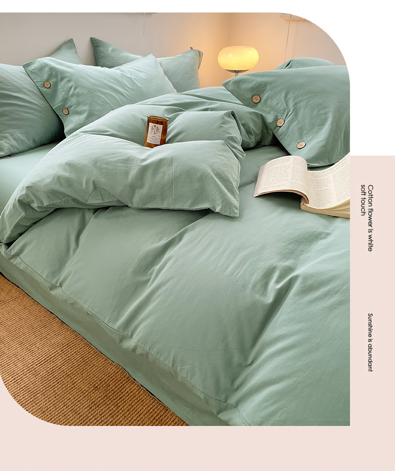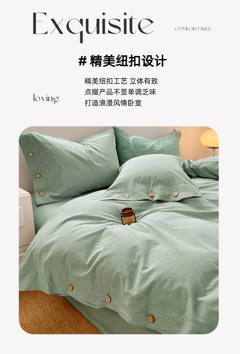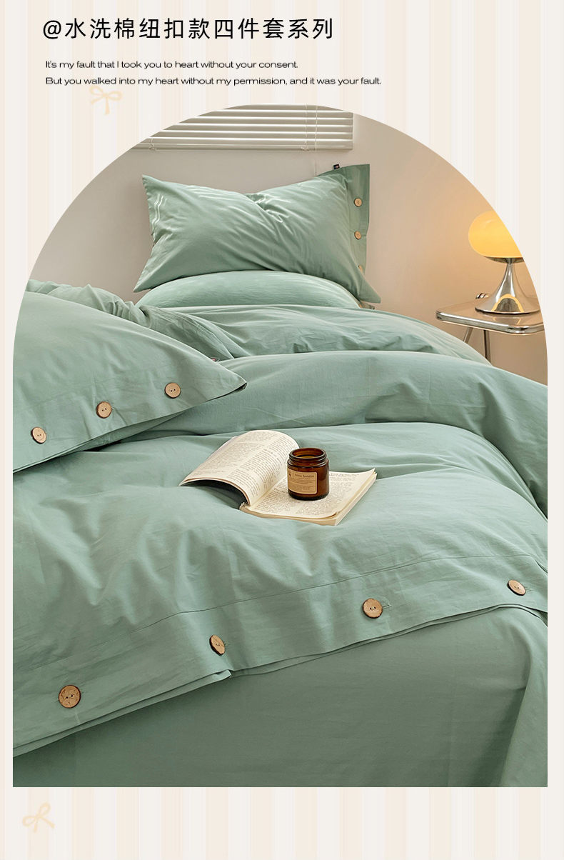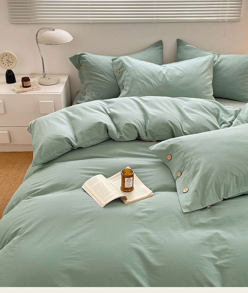 商品名称:yyds网供 2026新款A类仿汉麻棉麻纽扣款单品床单被套复古100%水洗棉无印风三件套酒店民宿 纽扣松石绿