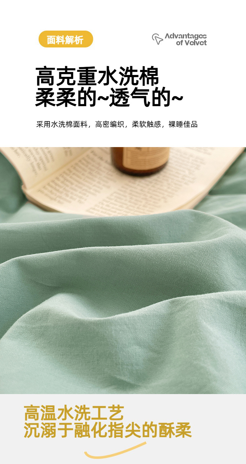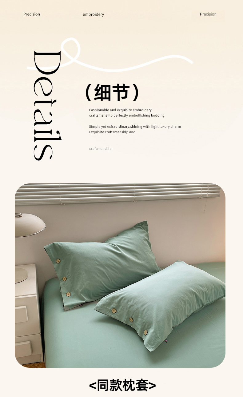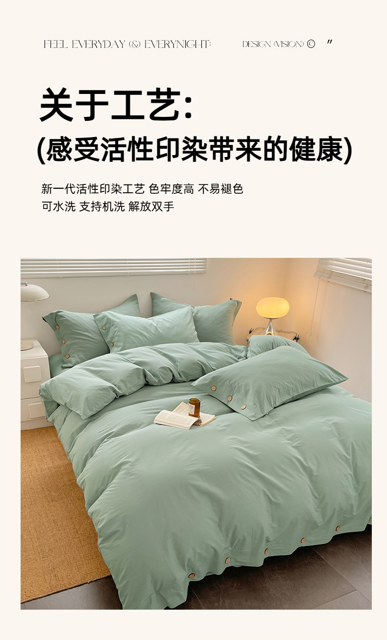 商品名称:yyds网供 2026新款A类仿汉麻棉麻纽扣款单品床单被套复古100%水洗棉无印风三件套酒店民宿 纽扣松石绿