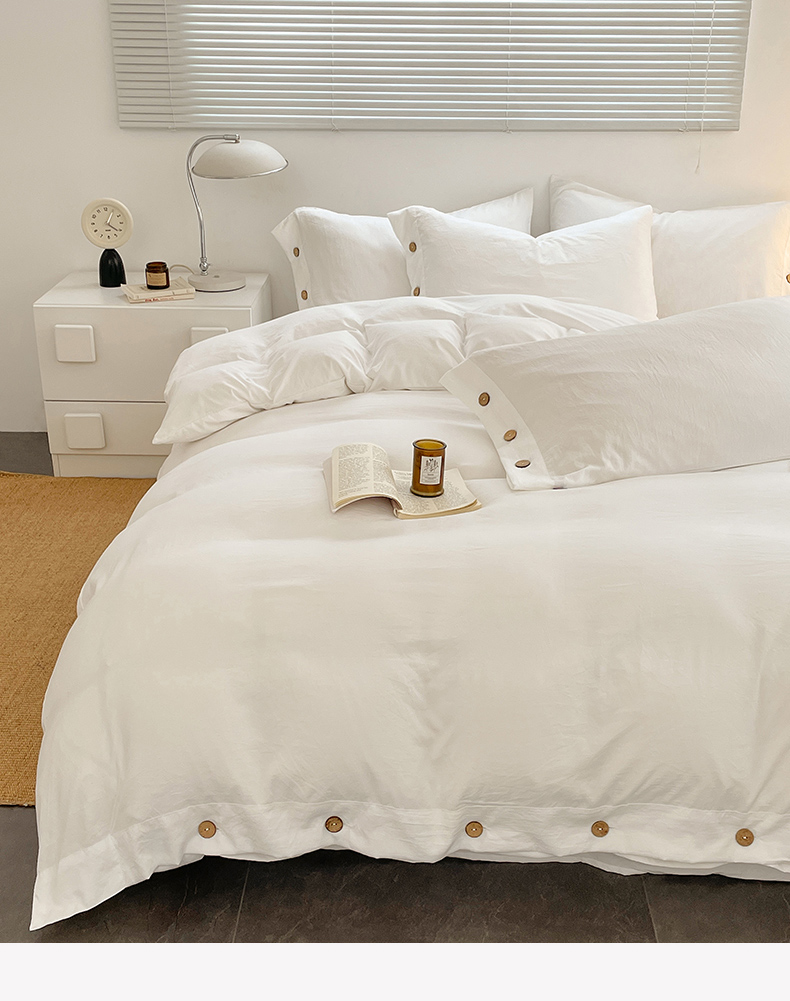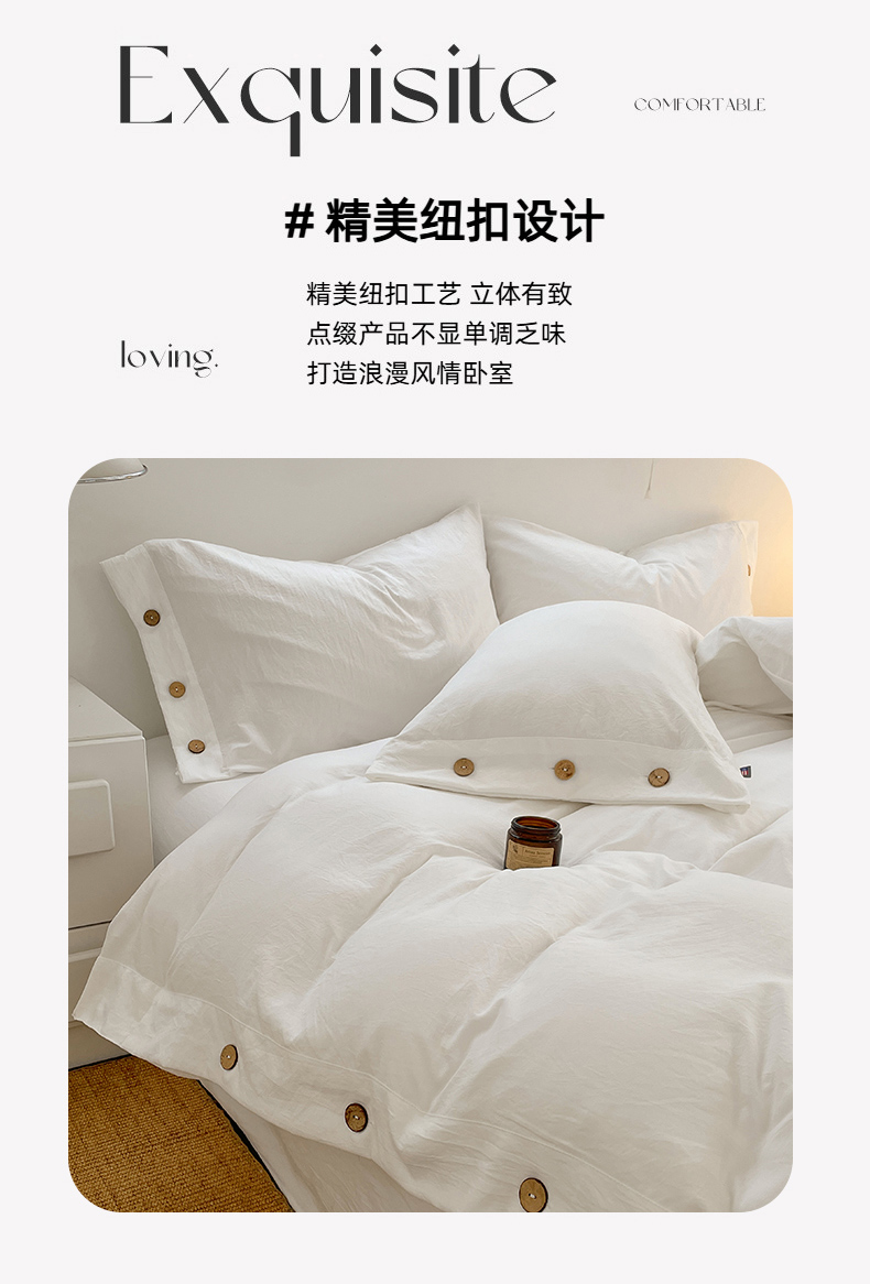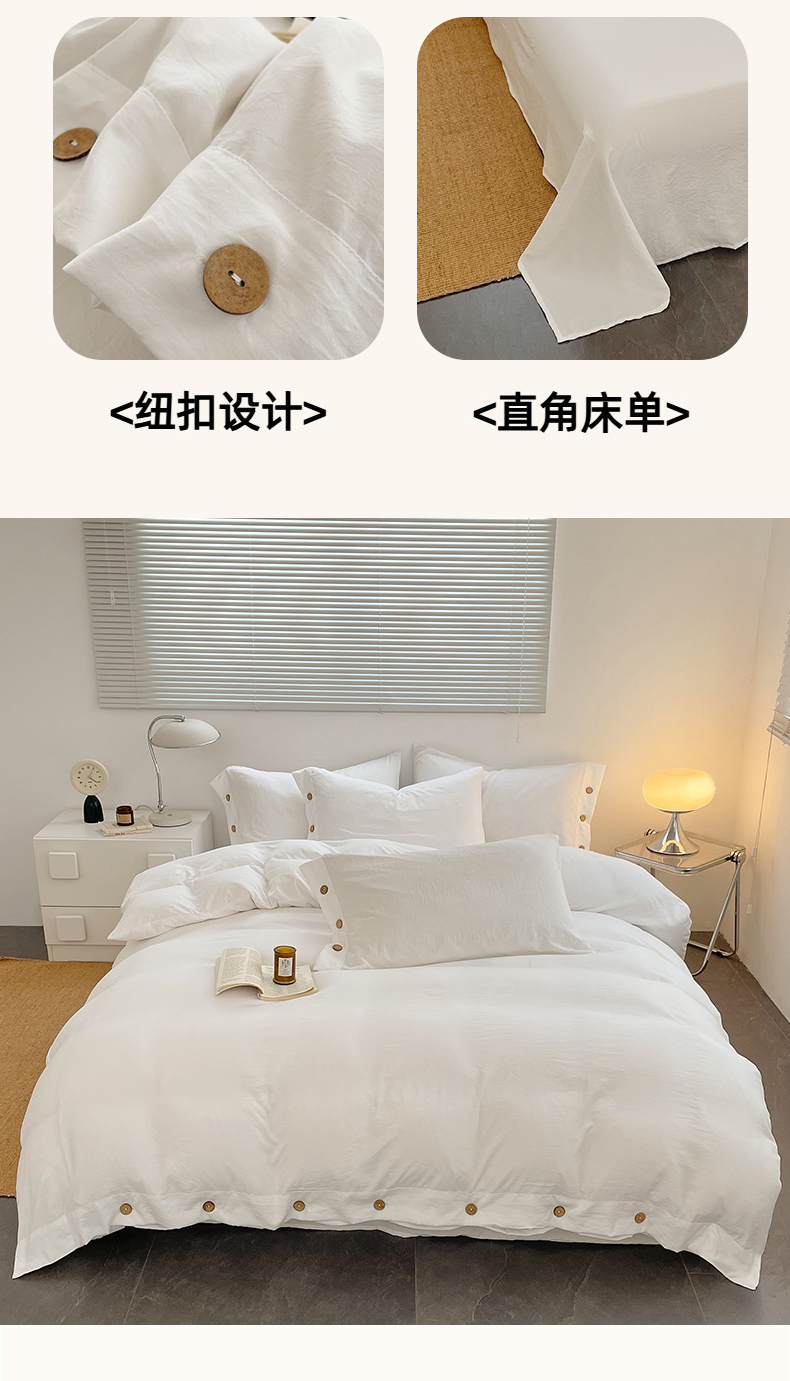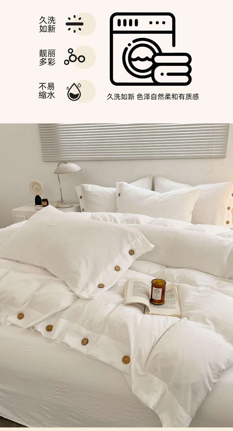 当前位置: 91家纺网 > 商品网购 > 床品套件 > 四件套 > 水洗棉四件套 > yyds网供 2026新款A类仿汉麻棉麻纽扣款四件套复古水洗棉无印风三件套酒店民宿 纽扣月光白