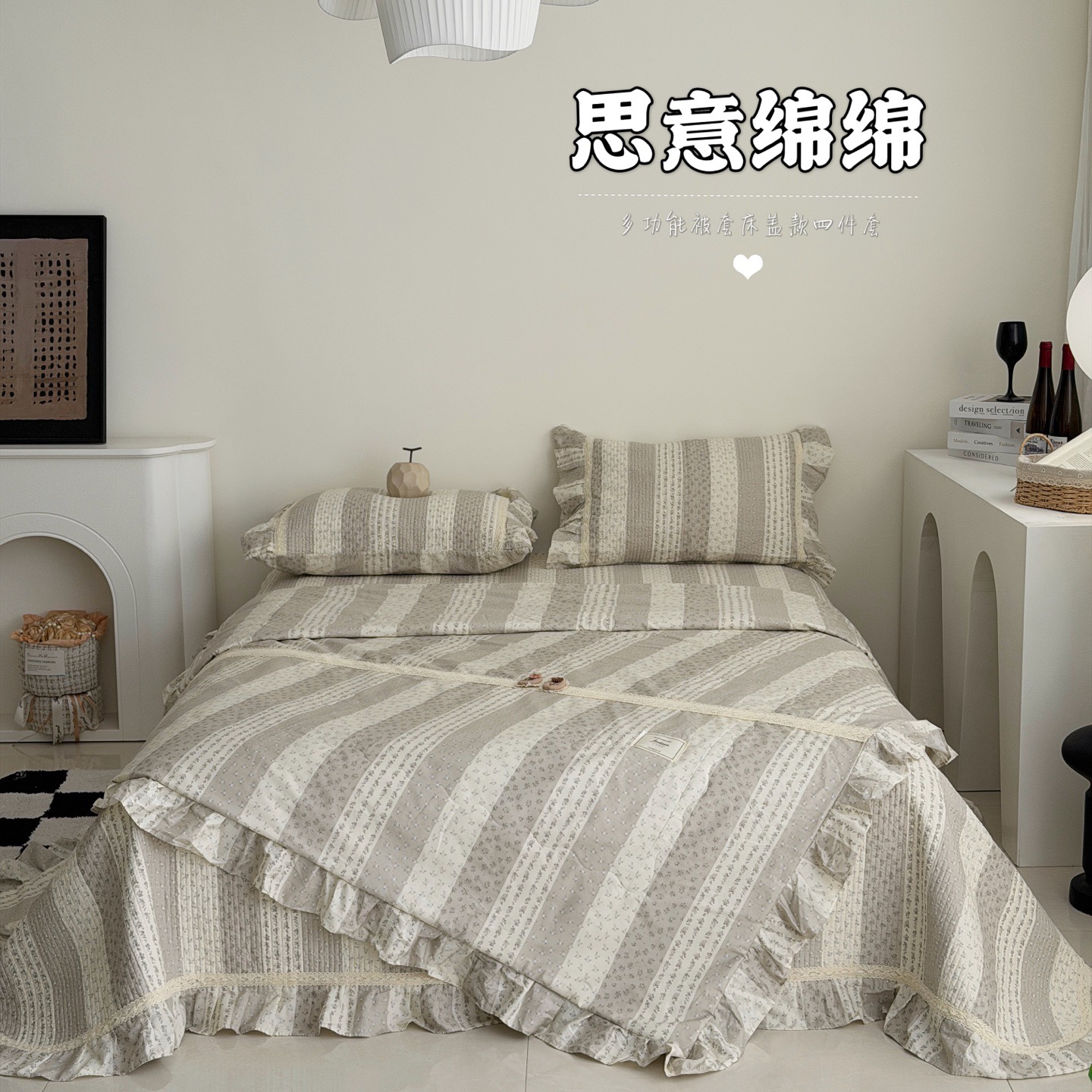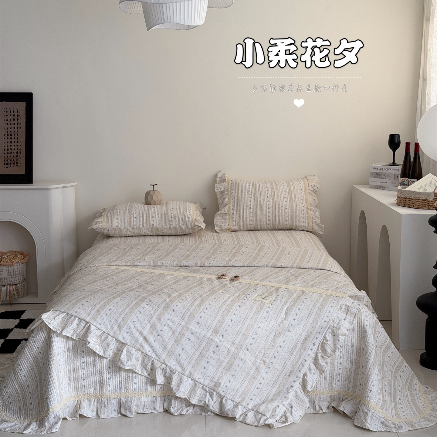 (总)佰织鑫家居 2026新款韩系花边款全棉砂洗多功能四件套夏被四件套(会员-5),洛伊,南山雏菊,思意绵绵,宛如初见,小柔花夕,悠悠花园