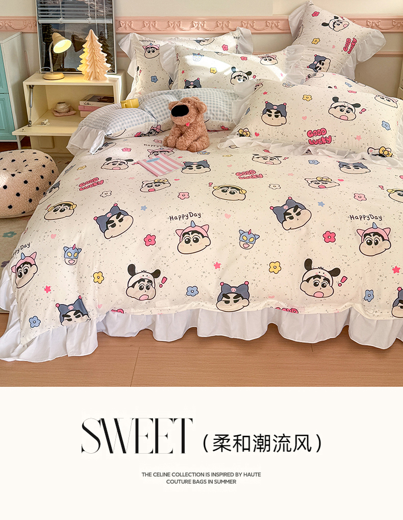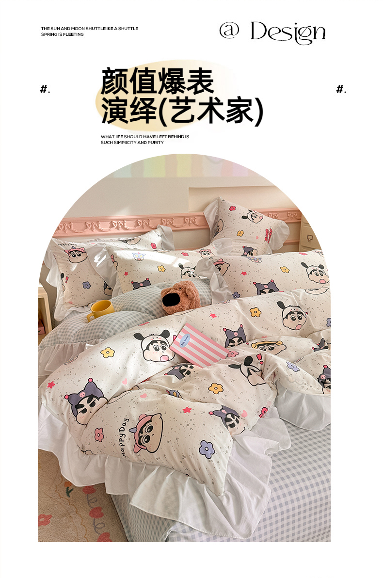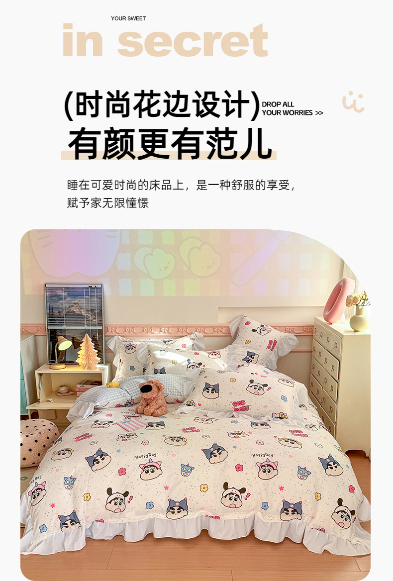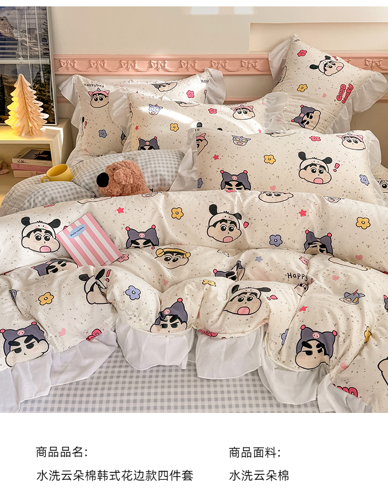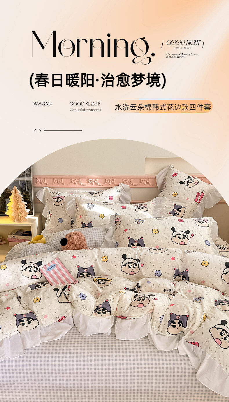 当前位置: 91家纺网 > 商品网购 > 床品套件 > 四件套 > 水洗棉四件套 > 温眠家纺 2025新款水洗云朵棉韩式INS减龄花边款四件套 趣味小新
