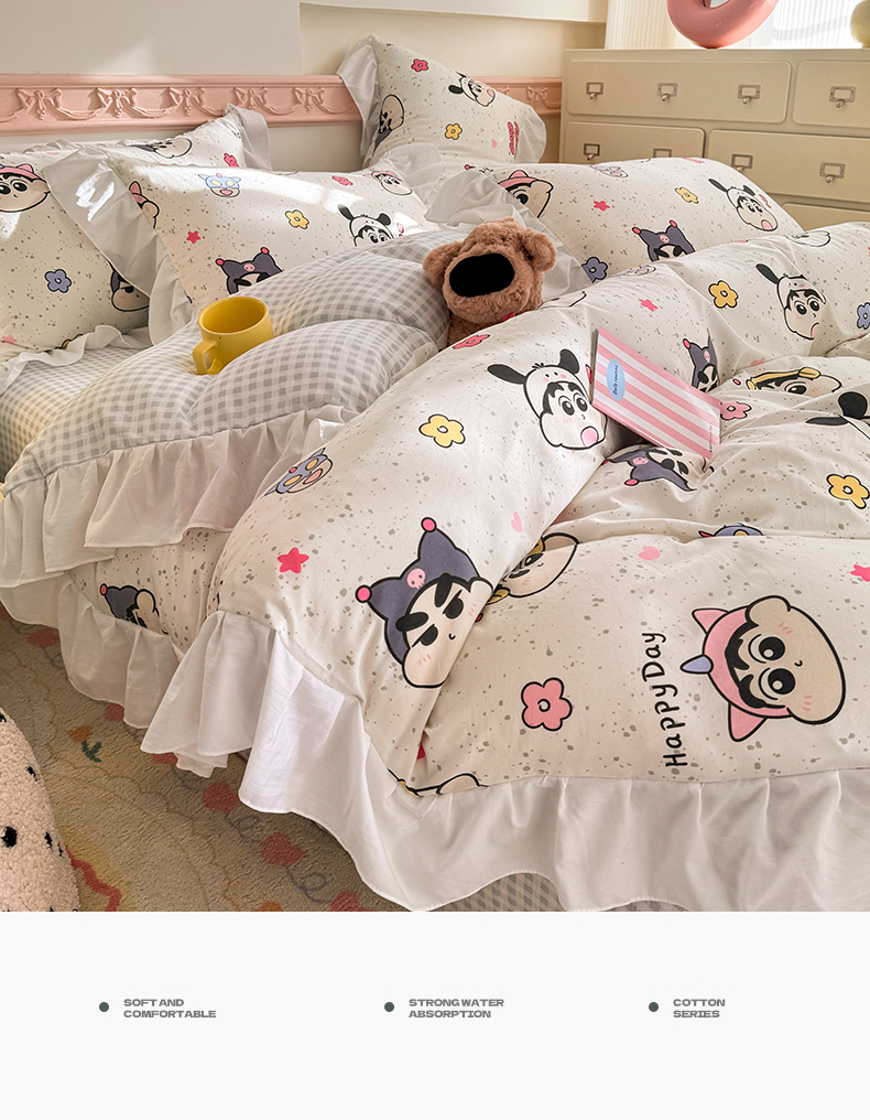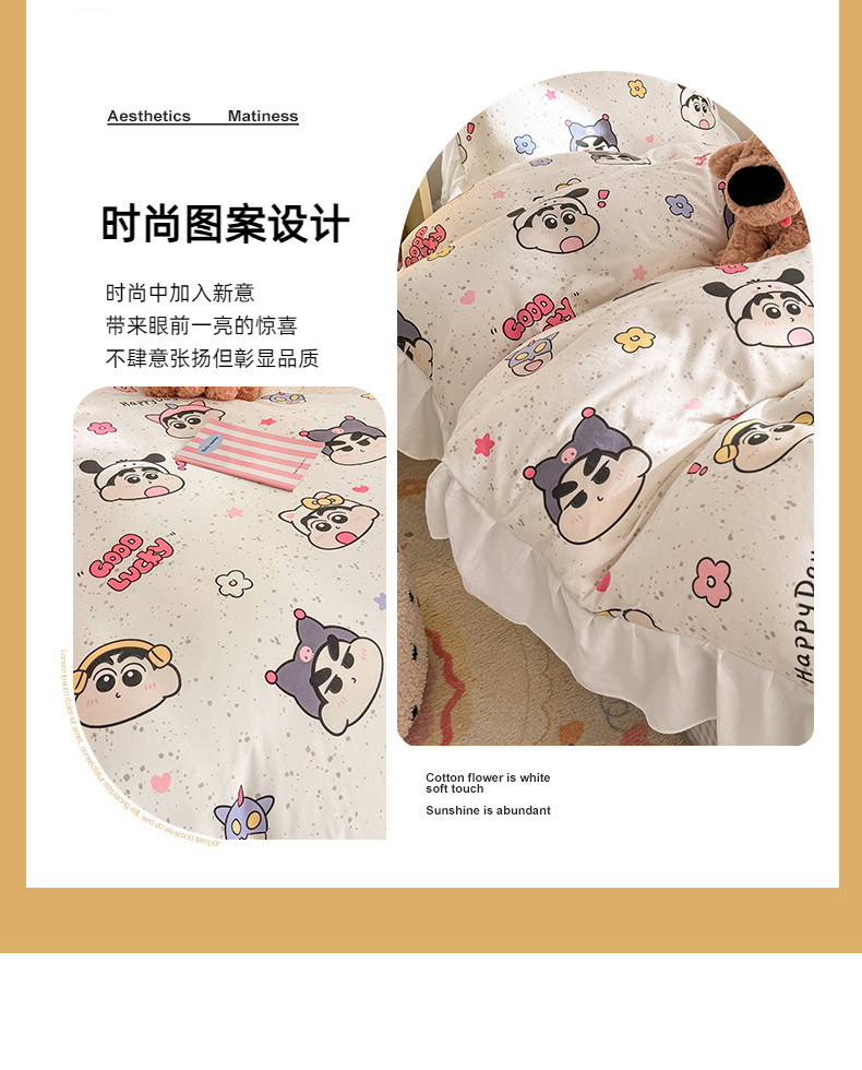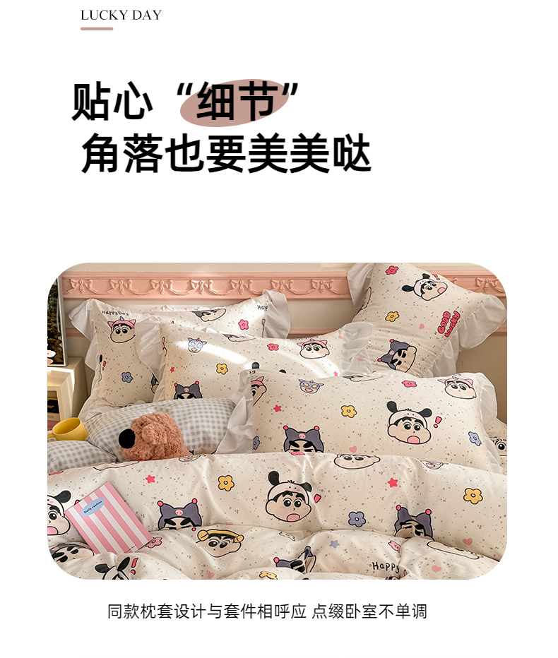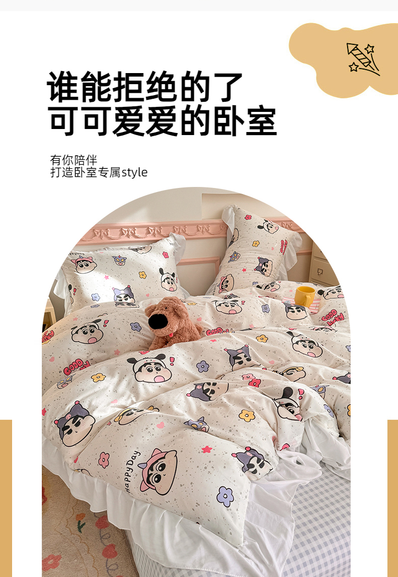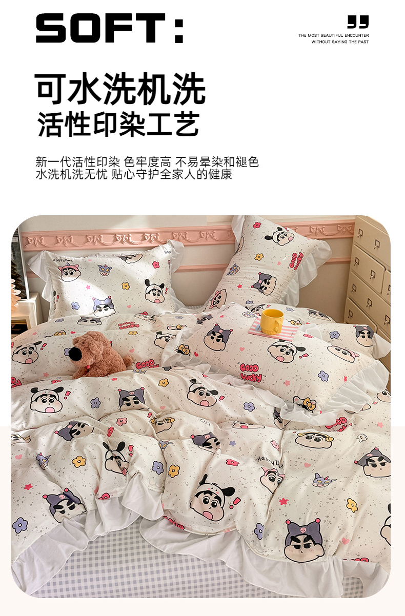 当前位置: 91家纺网 > 商品网购 > 床品套件 > 四件套 > 水洗棉四件套 > 温眠家纺 2025新款水洗云朵棉韩式INS减龄花边款四件套 趣味小新
