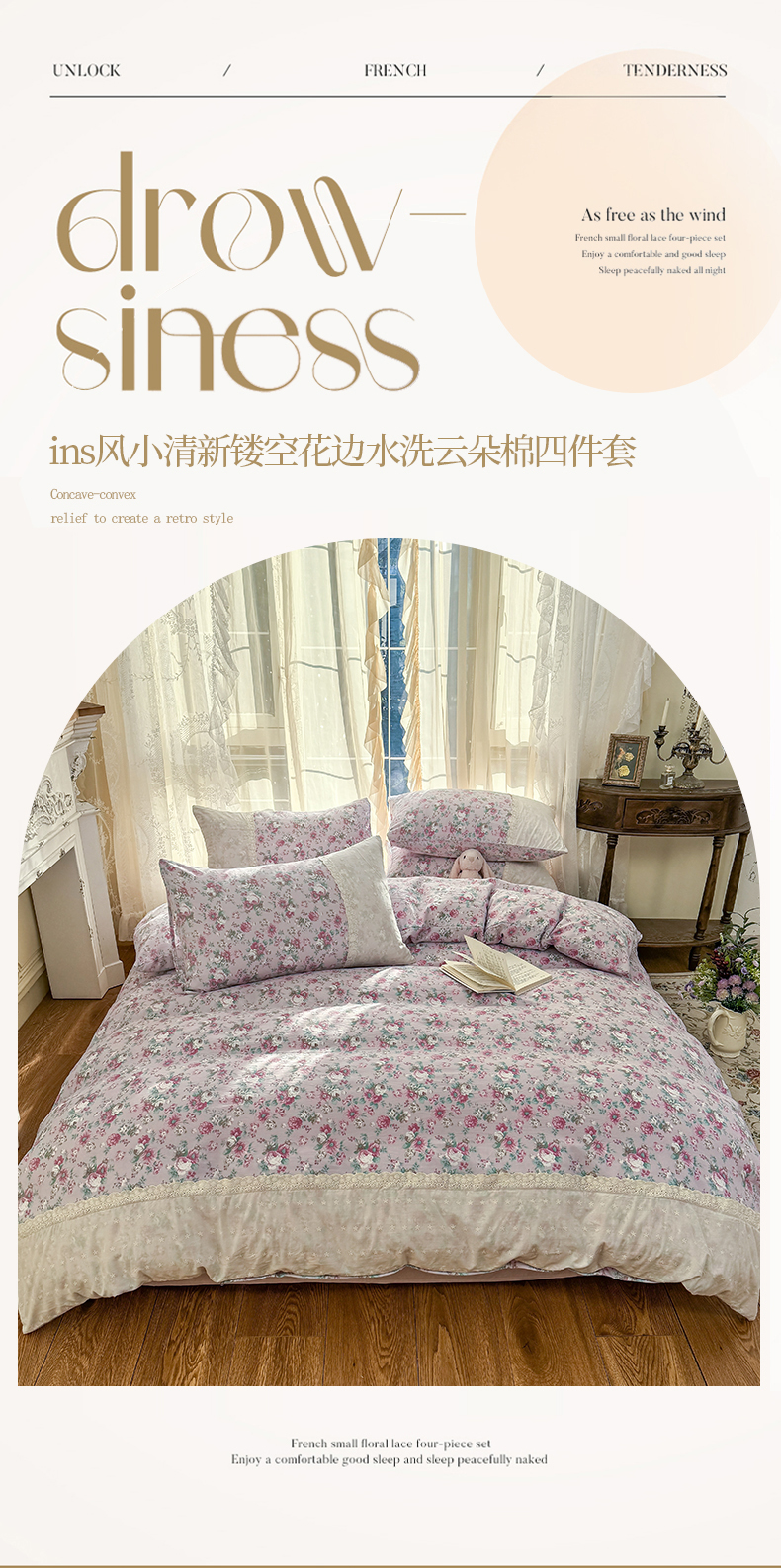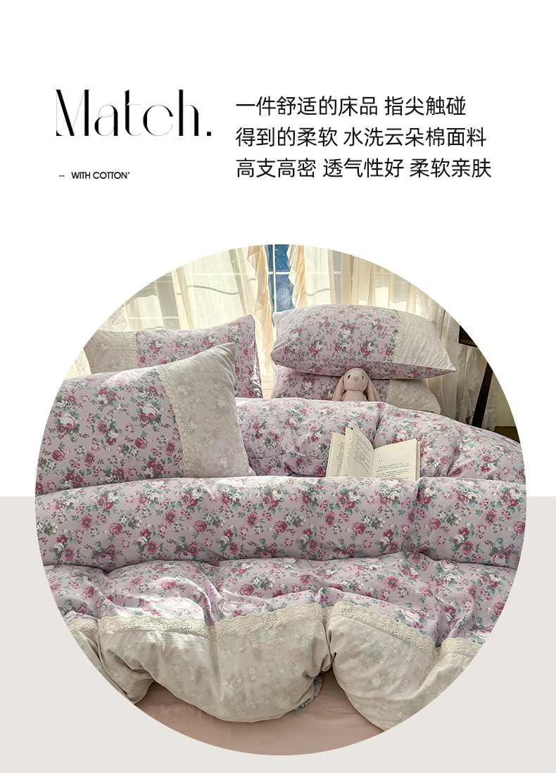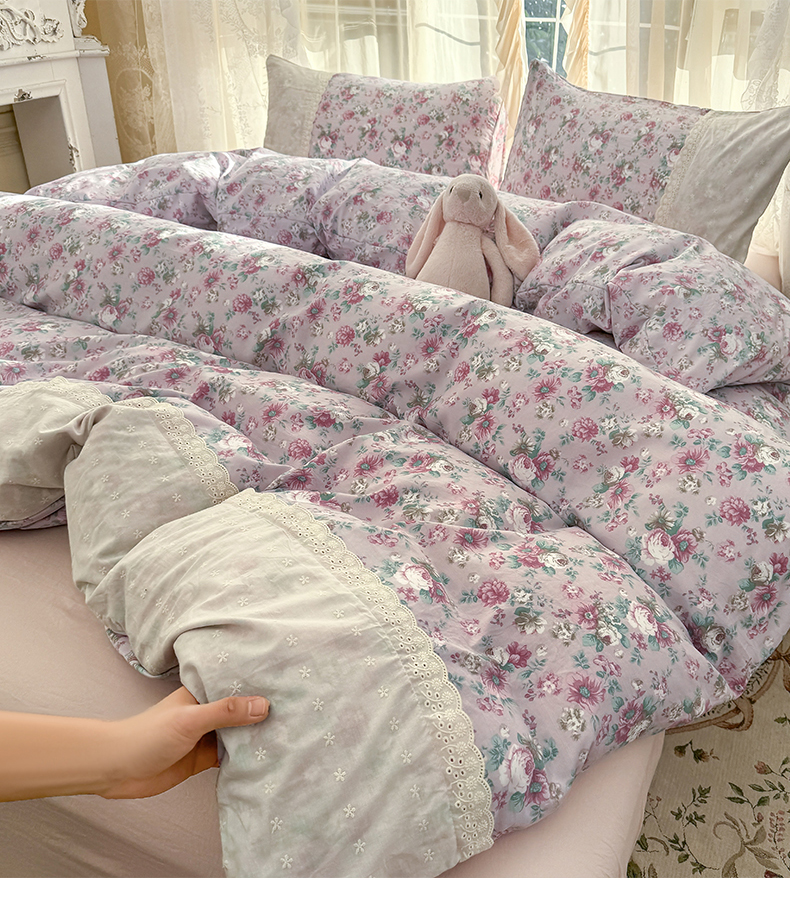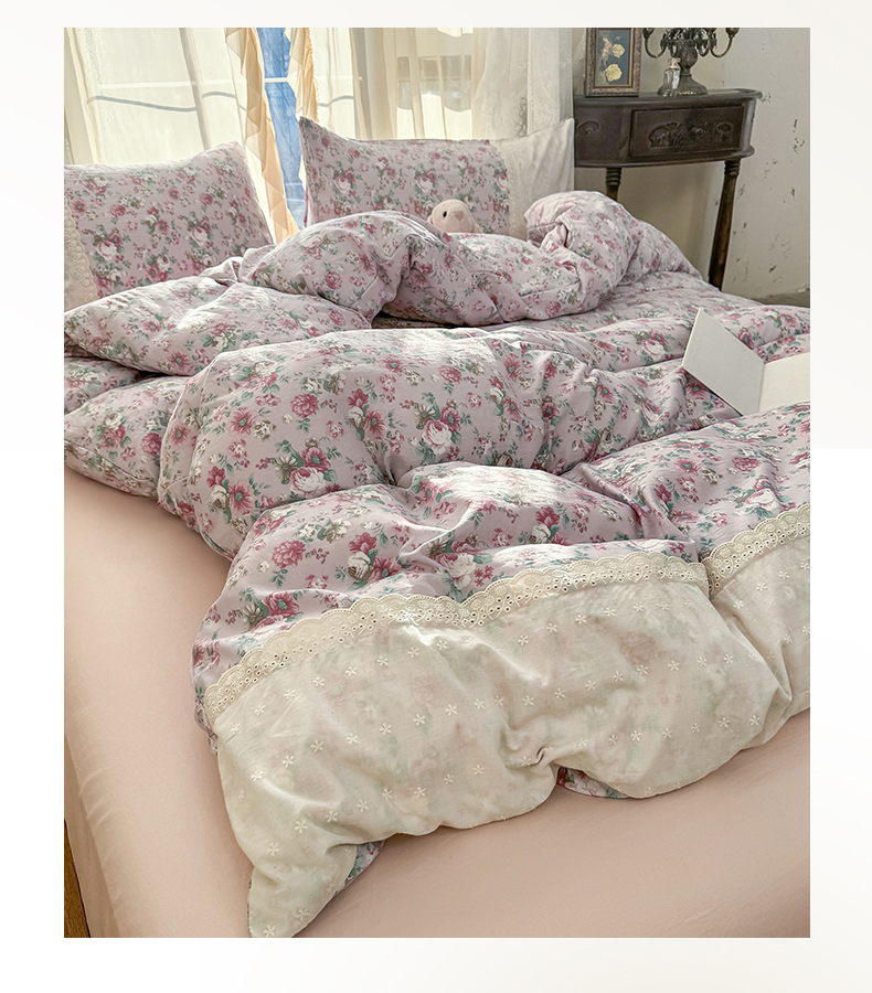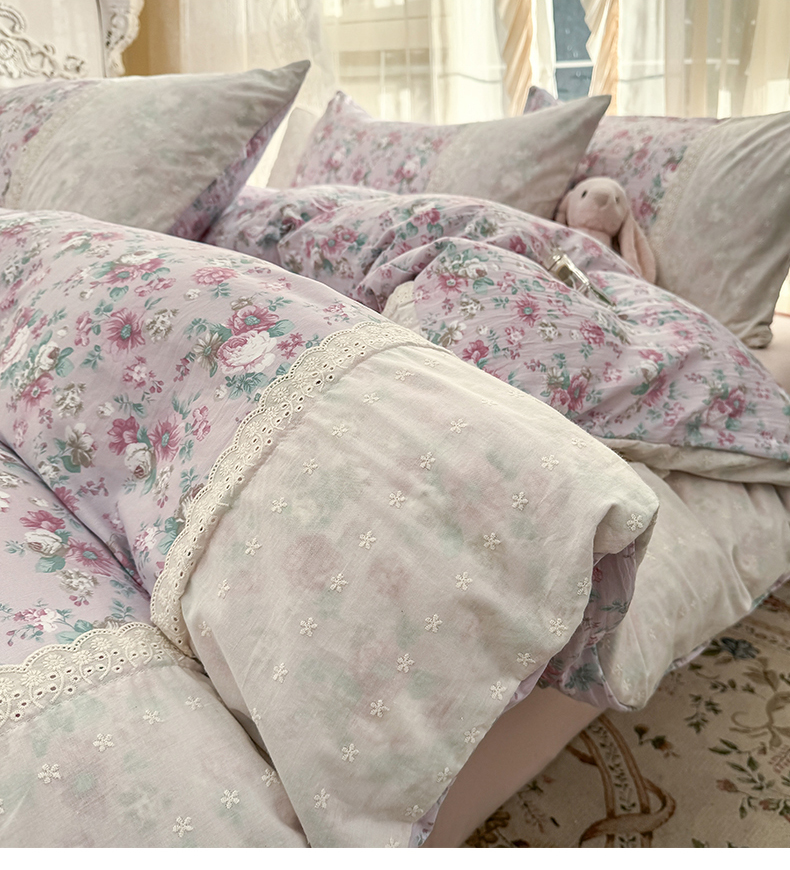 当前位置: 91家纺网 > 商品网购 > 床品套件 > 四件套 > 水洗棉四件套 > 温眠家纺 2025新款ins风小清新镂空花边水洗云朵棉四件套-风格一 美玲说