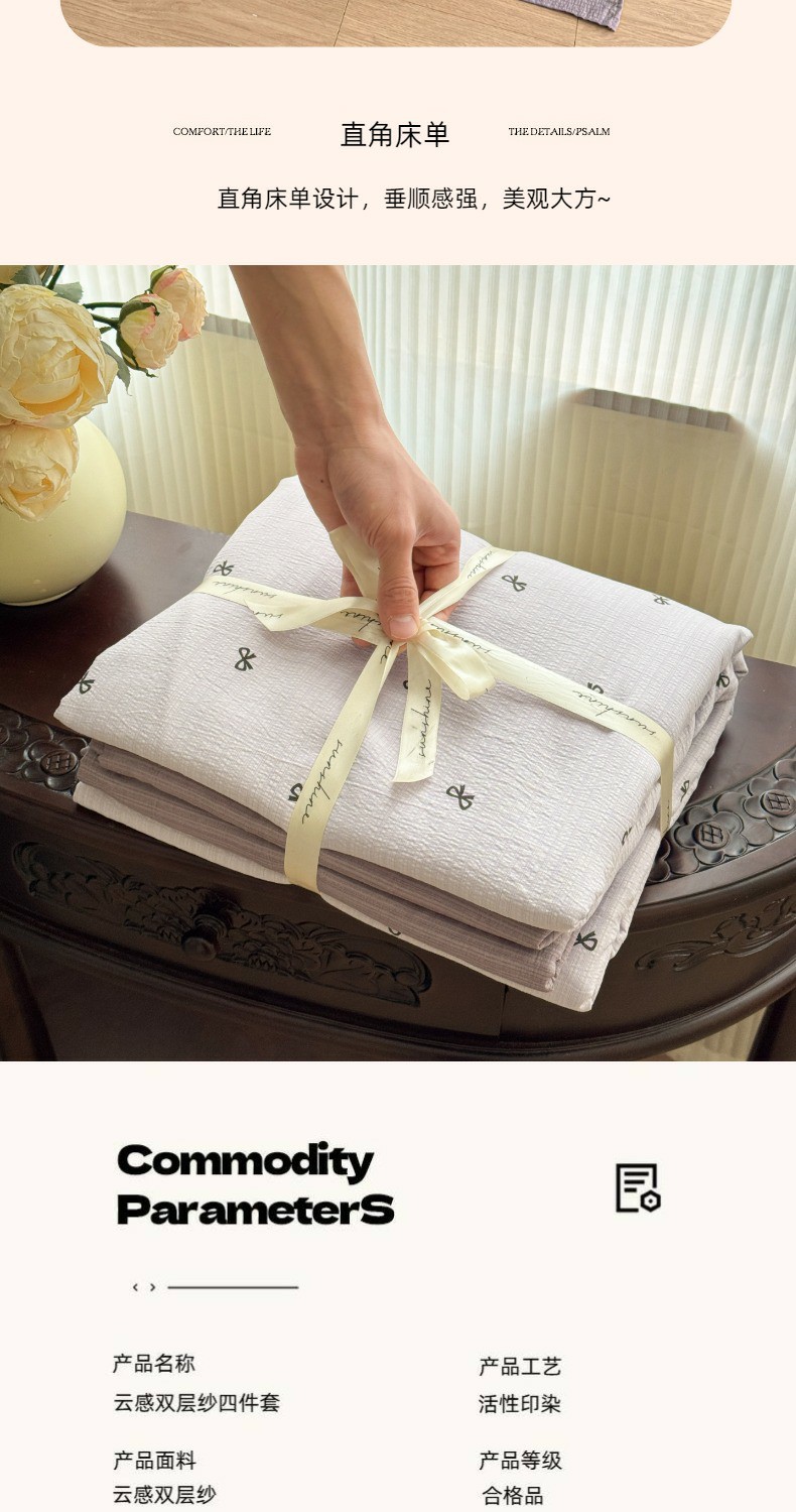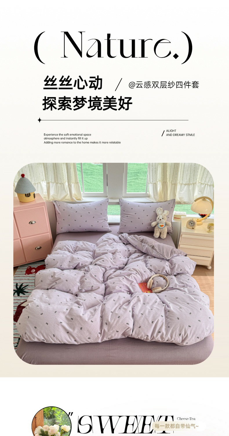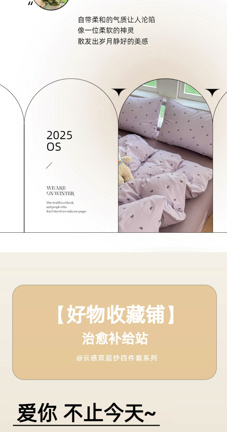 当前位置: 91家纺网 > 商品网购 > 床品套件 > 四件套 > 双层纱四件套 > 温眠家纺 2025新款云感针织双层纱四件套 小资情调