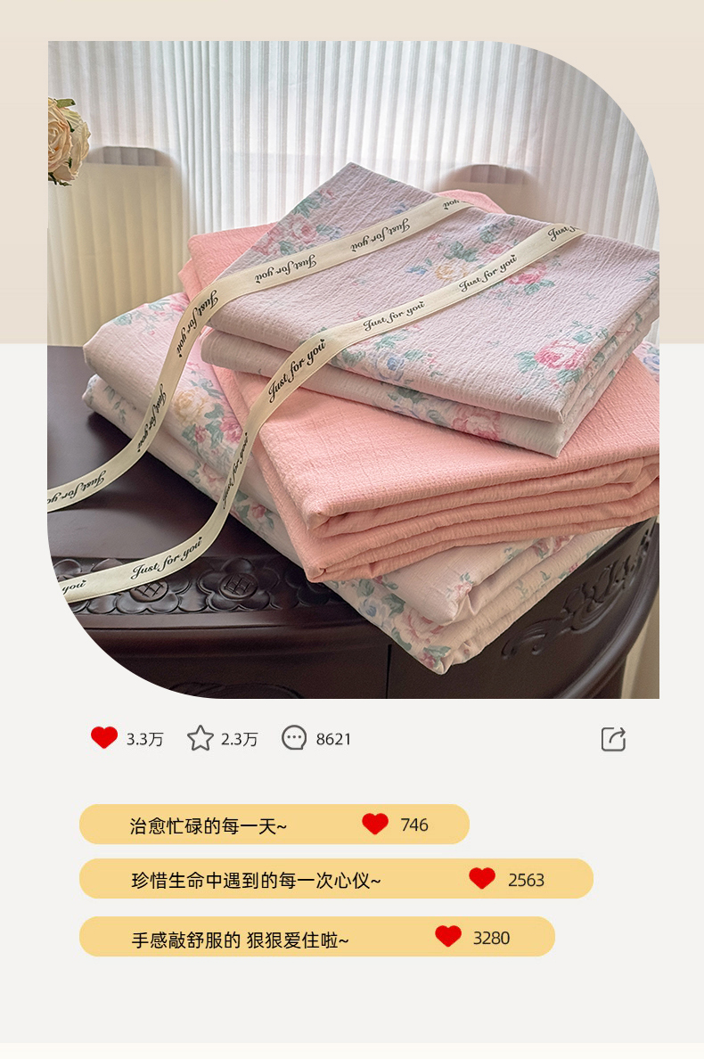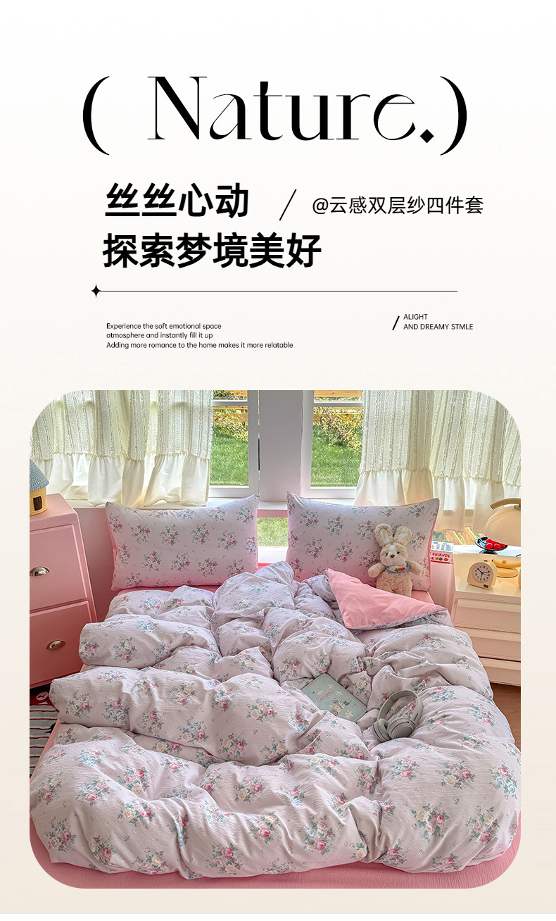 当前位置: 91家纺网 > 商品网购 > 床品套件 > 四件套 > 双层纱四件套 > 温眠家纺 2025新款云感针织双层纱四件套 朱丽叶
