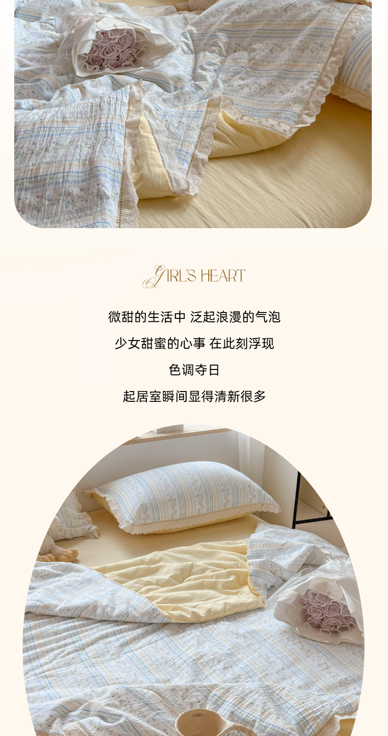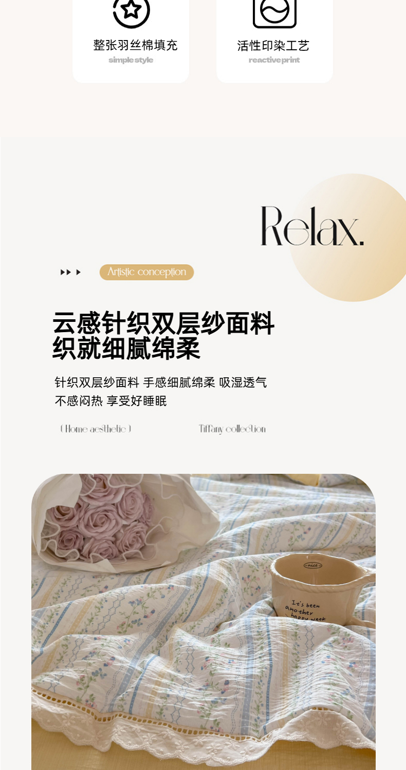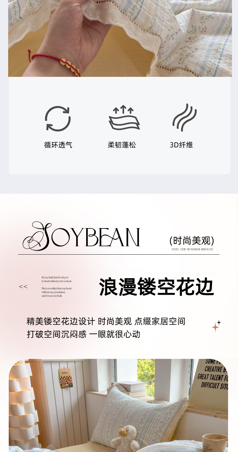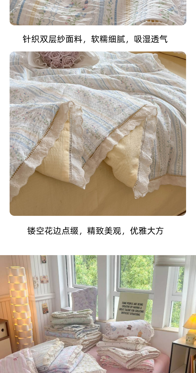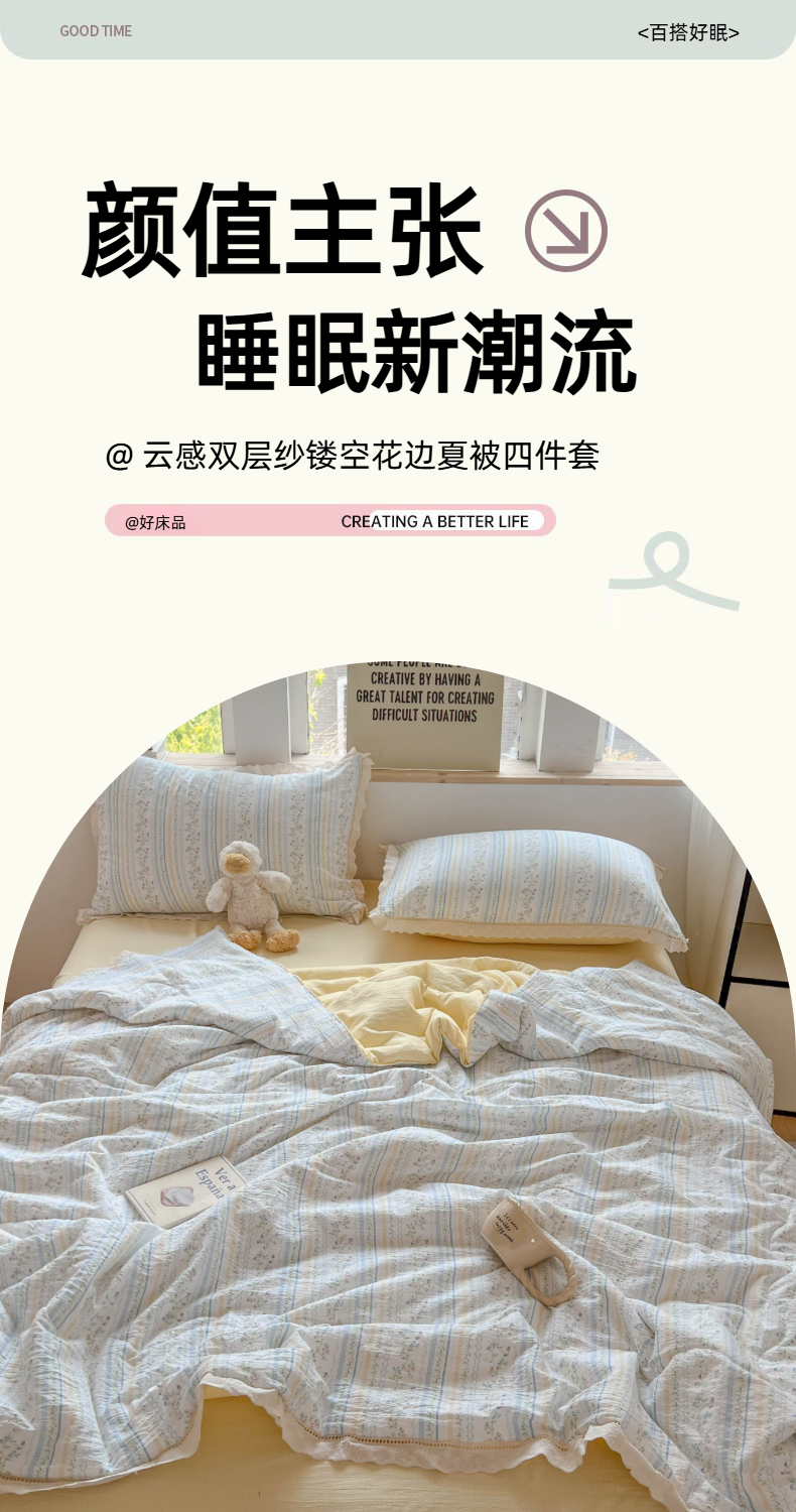 温眠家纺 2025新款云感双层纱镂空花边夏被四件套 洛克庄园