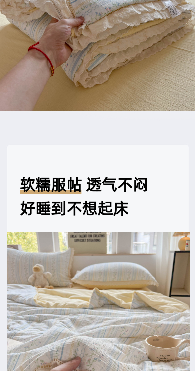 商品名称:温眠家纺 2025新款云感双层纱镂空花边夏被四件套 洛克庄园