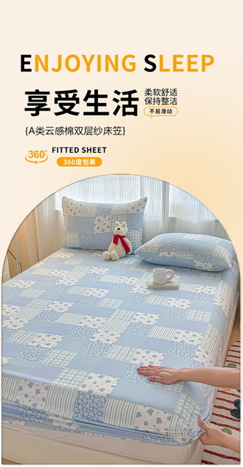 (总)温眠家纺 2026新款古法水洗棉加厚高克重双层纱单床笠床笠单件单品床笠,条纹南瓜,彩波波,蛋糕小猫,扶桑花未落,花韵,绮梦花间,素影,挽星入梦,汪星人,星星人,樱之桃桃,云间花述,织梦,紫菀