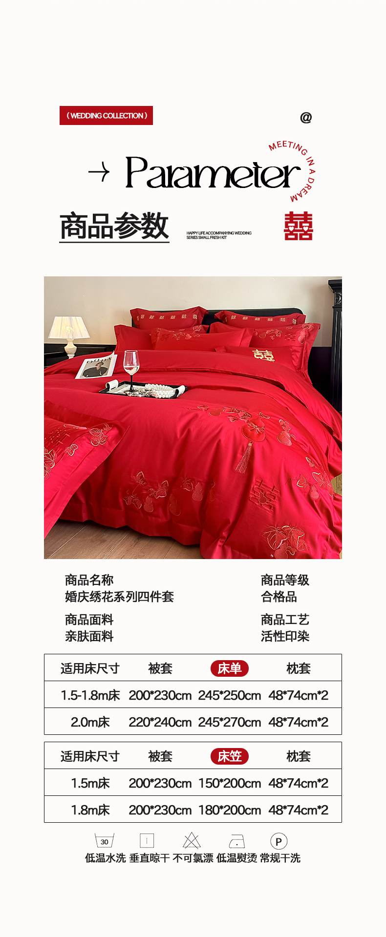 商品名称:(总)置顶家纺 2026新款小清新亲肤婚庆绣花四件套