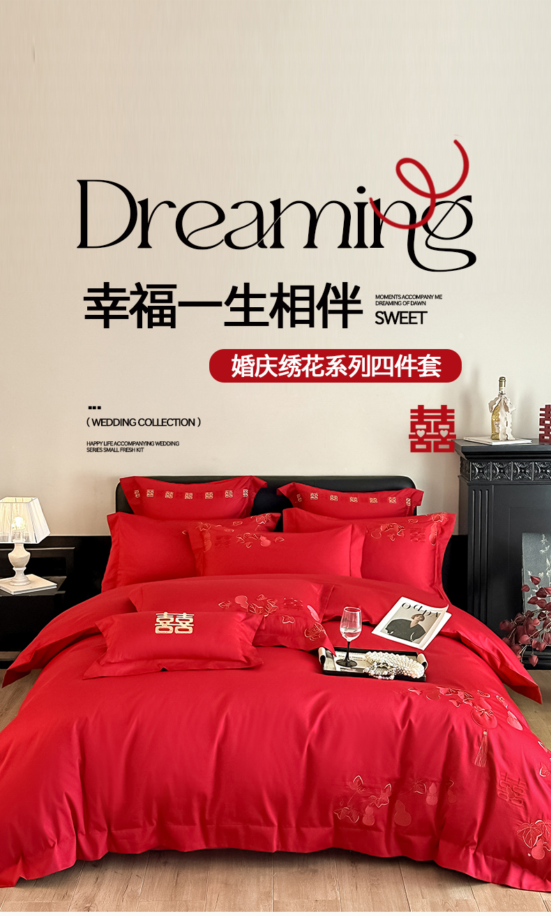 (总)置顶家纺 2026新款小清新亲肤婚庆绣花四件套