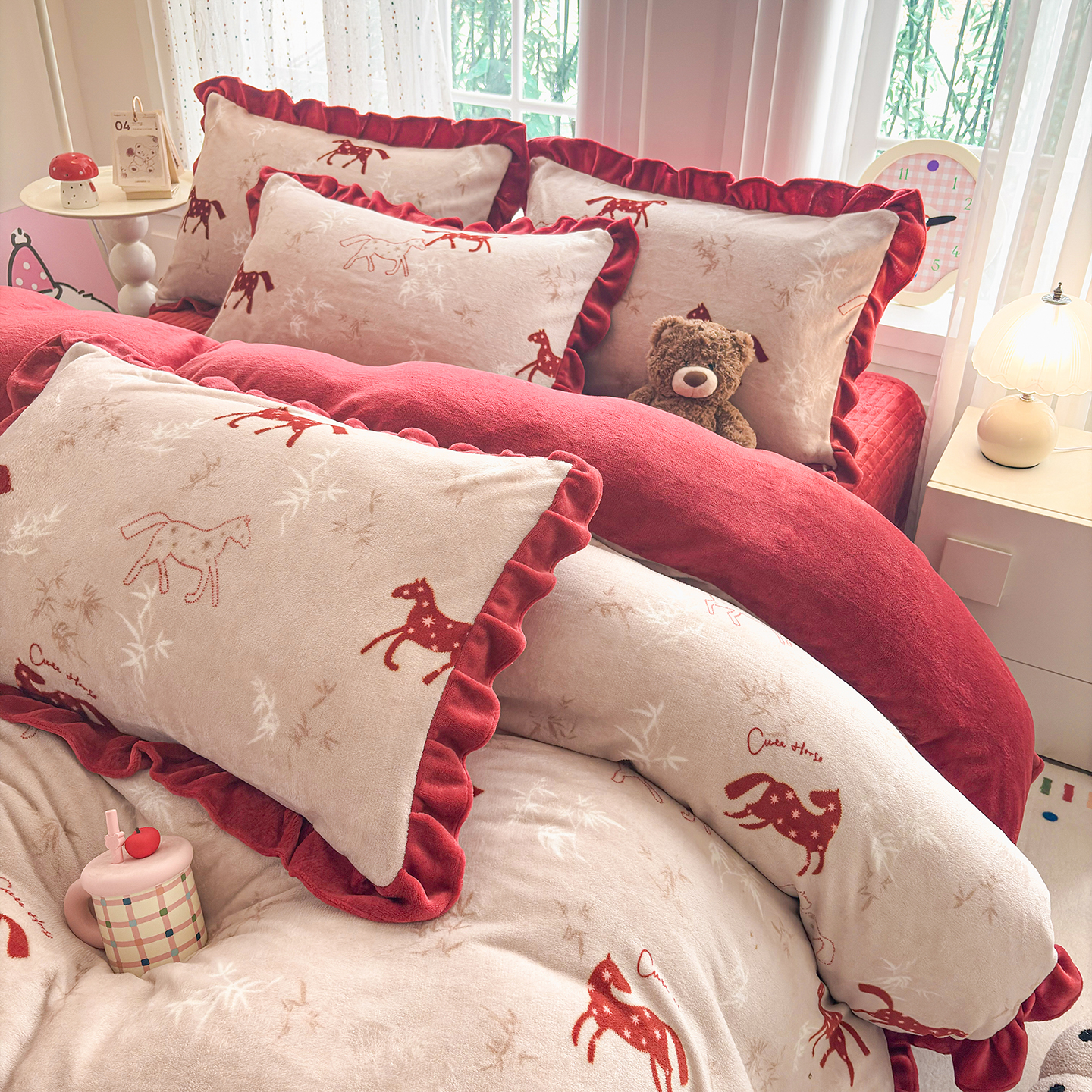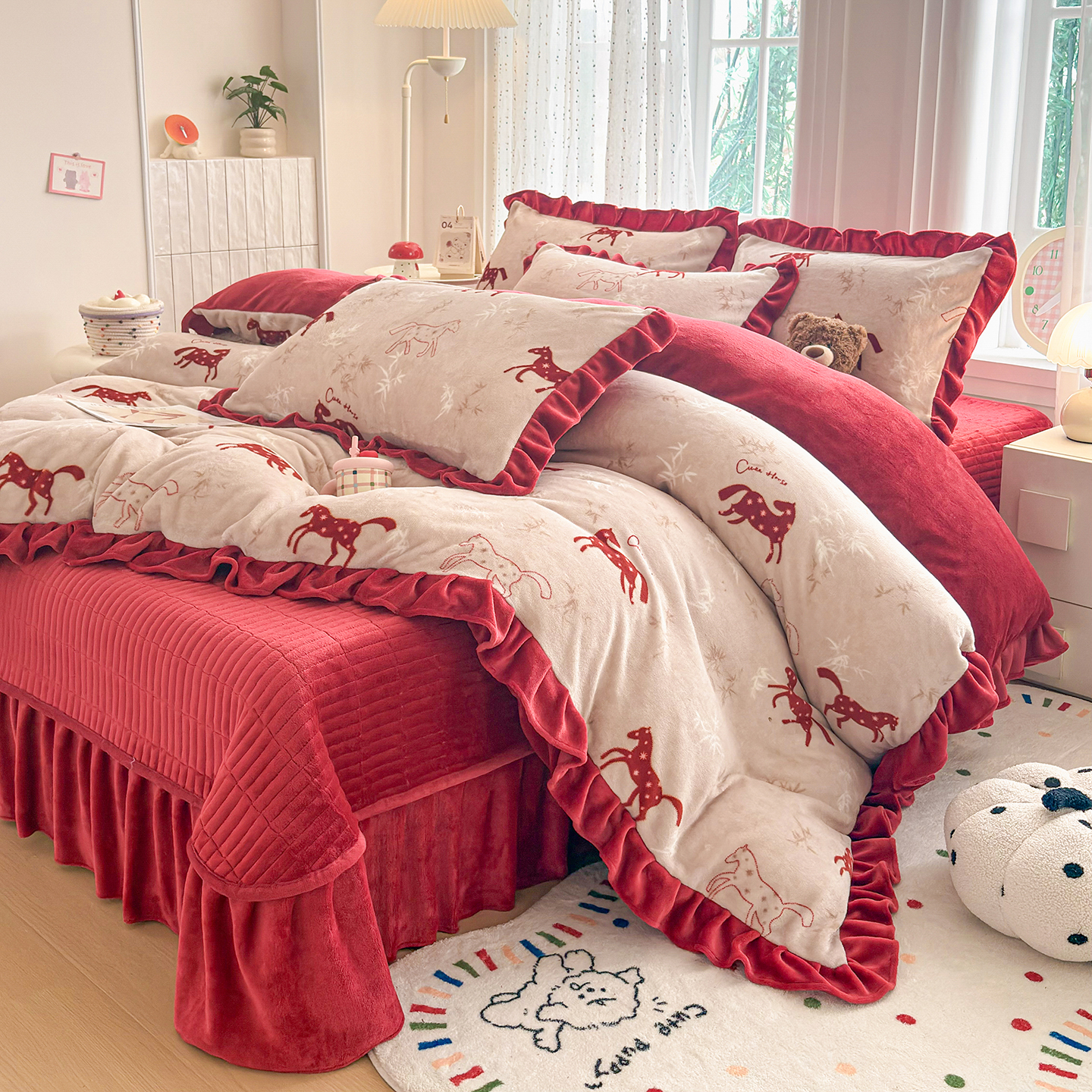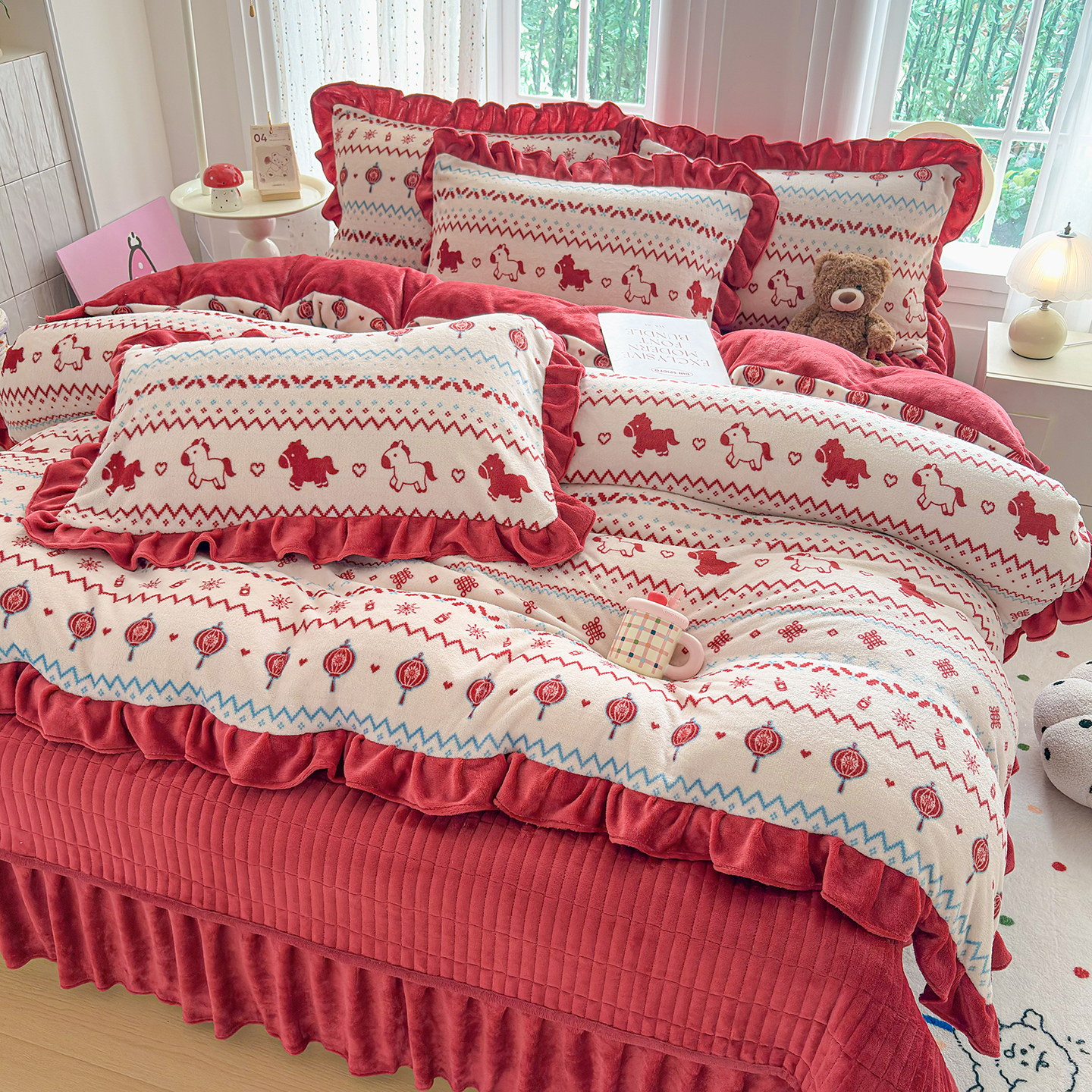 当前位置: 91家纺网 > 商品网购 > 床品套件 > 四件套 > 牛奶绒四件套 > (总)梵克保罗 2026新款花边款牛奶绒印花贺岁款床盖四件套床褥炕垫四件套