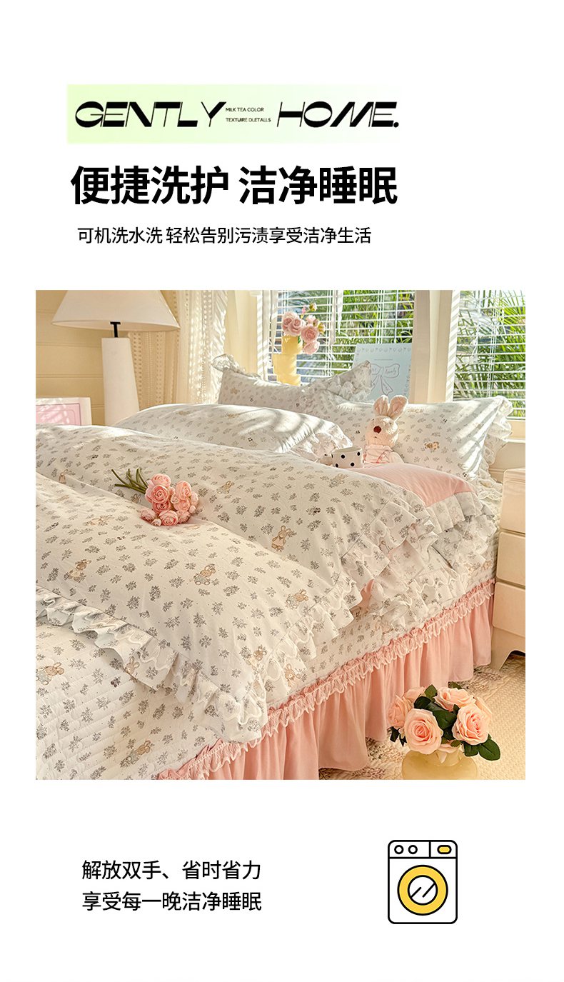 当前位置: 91家纺网 > 商品网购 > 床品套件 > 四件套 > 其它四件套 > 韩约家纺 2026新款韩式双层花边古法棉感床盖四件套 豹纹女孩