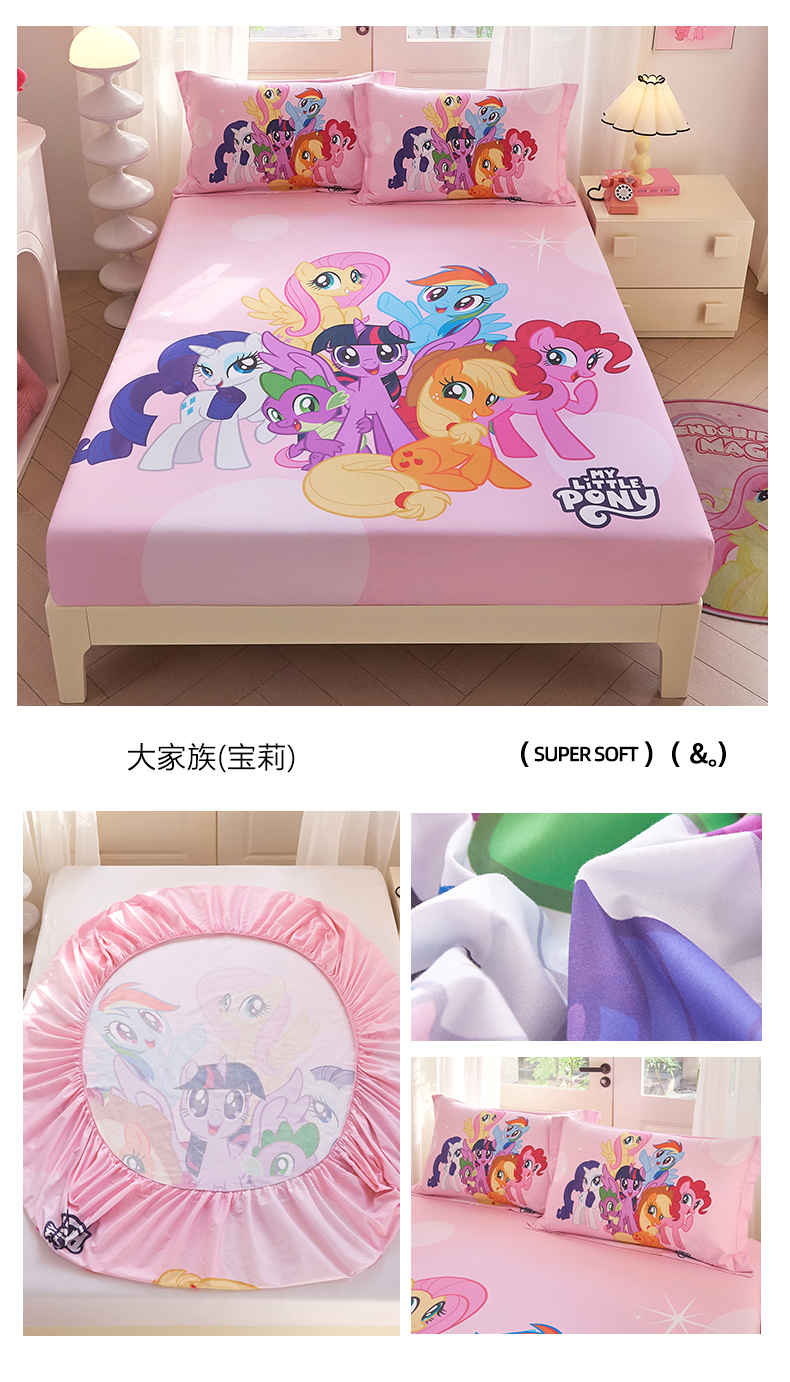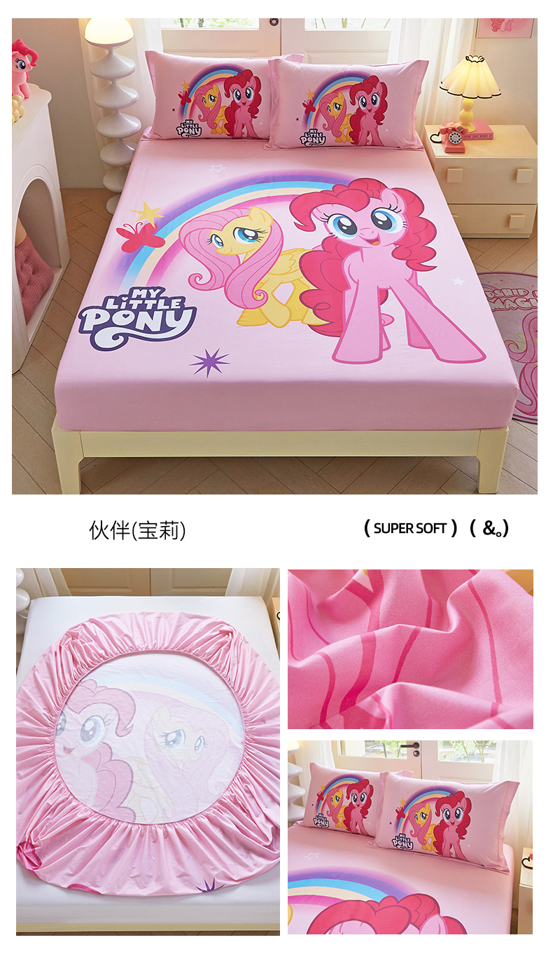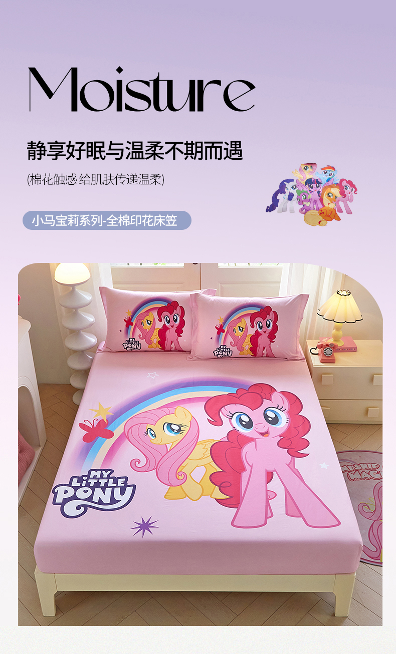• 91家纺网 家纺一手货源 找家纺 蘭菲家纺 2026新款全棉纯棉大版卡通单床笠床笠单件-小马宝莉 伙伴.宝莉