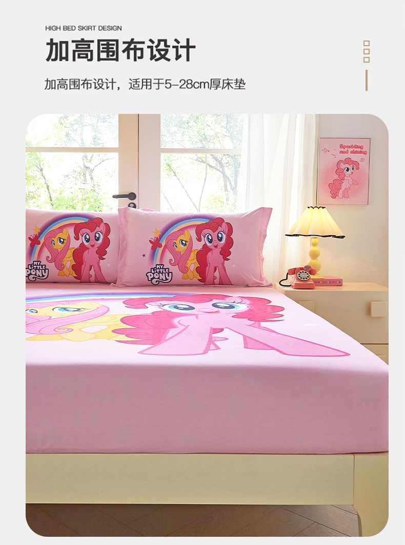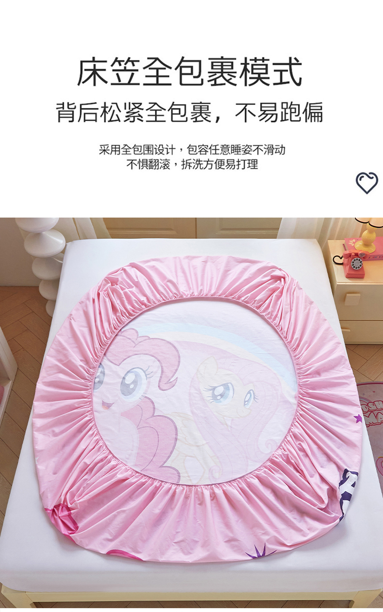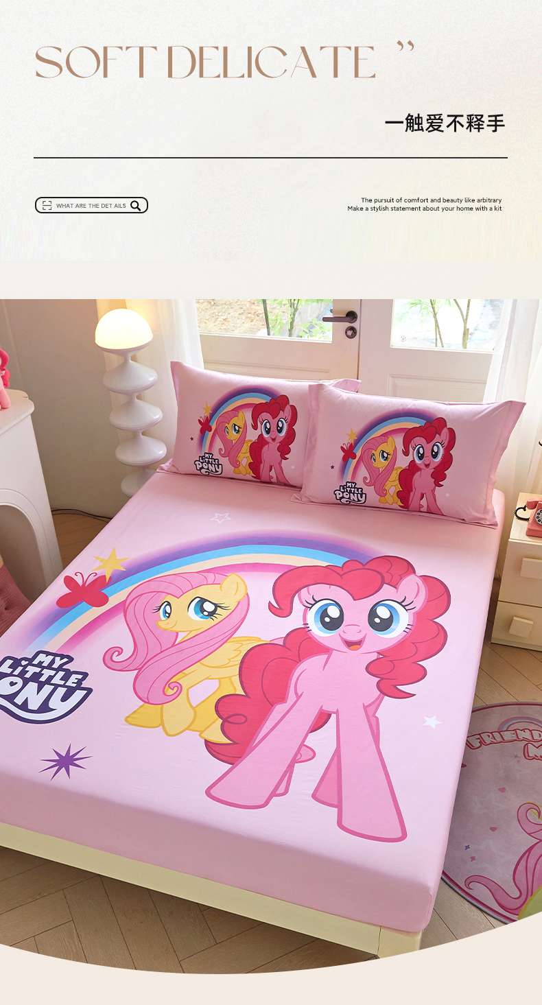 • 91家纺网 家纺一手货源 找家纺 蘭菲家纺 2026新款全棉纯棉大版卡通单床笠床笠单件-小马宝莉 伙伴.宝莉
