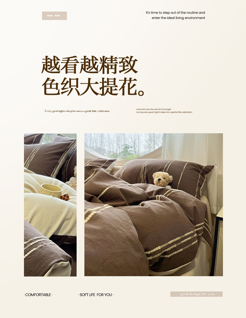 当前位置: 91家纺网 > 商品网购 > 床品套件 > 四件套 > 全棉普通四件套 > (总)莱茵家居 2026新款A类60支全棉纯棉复古美拉德色织提花四件套-慕星系列
