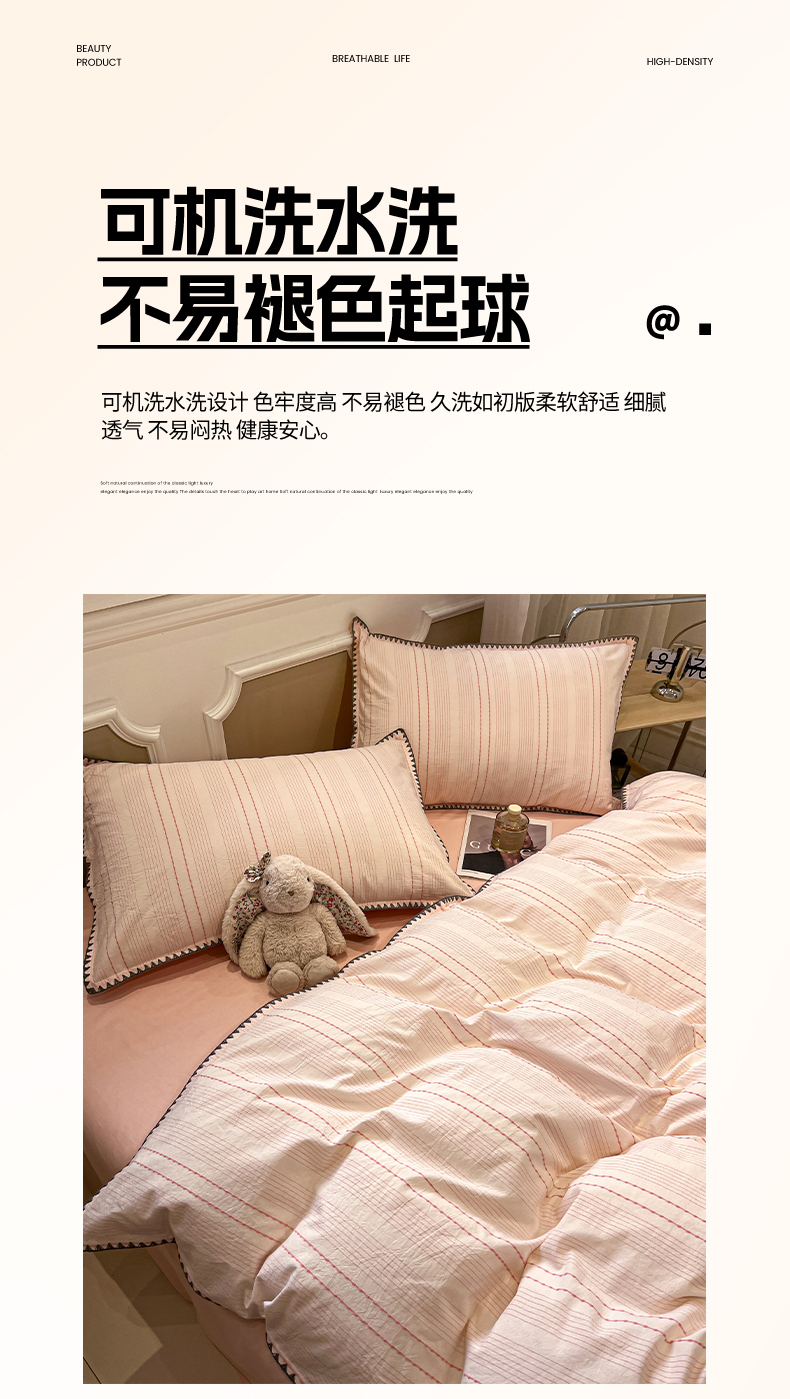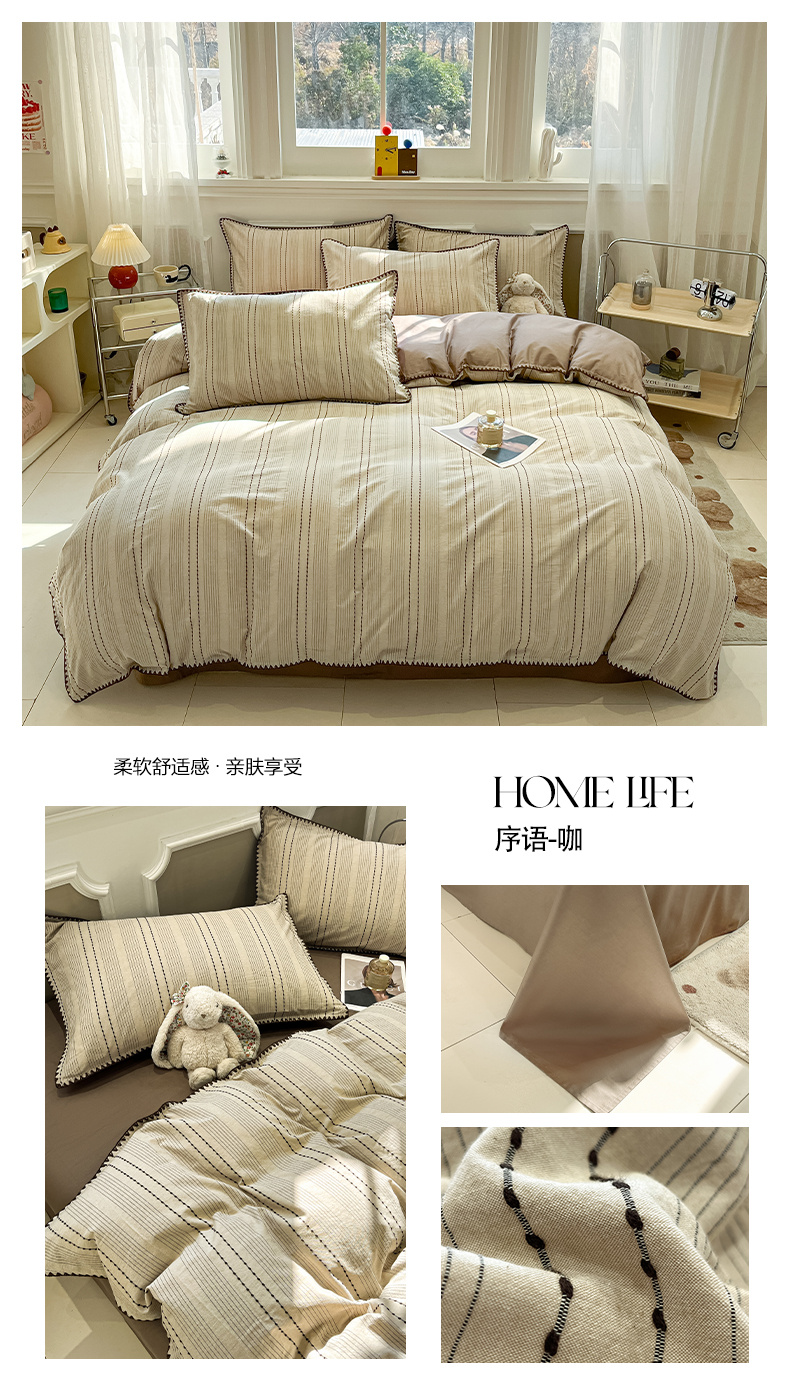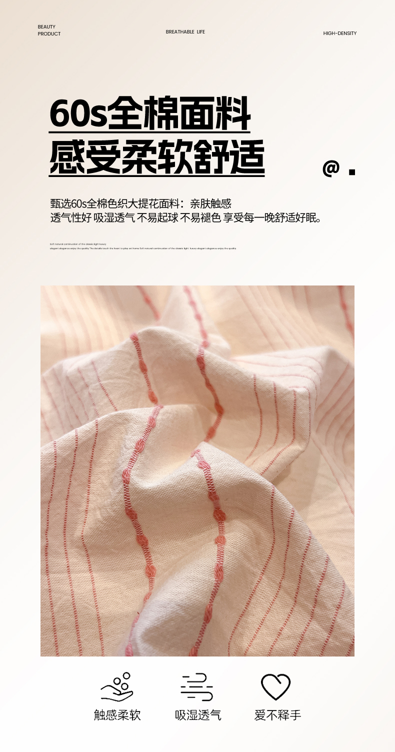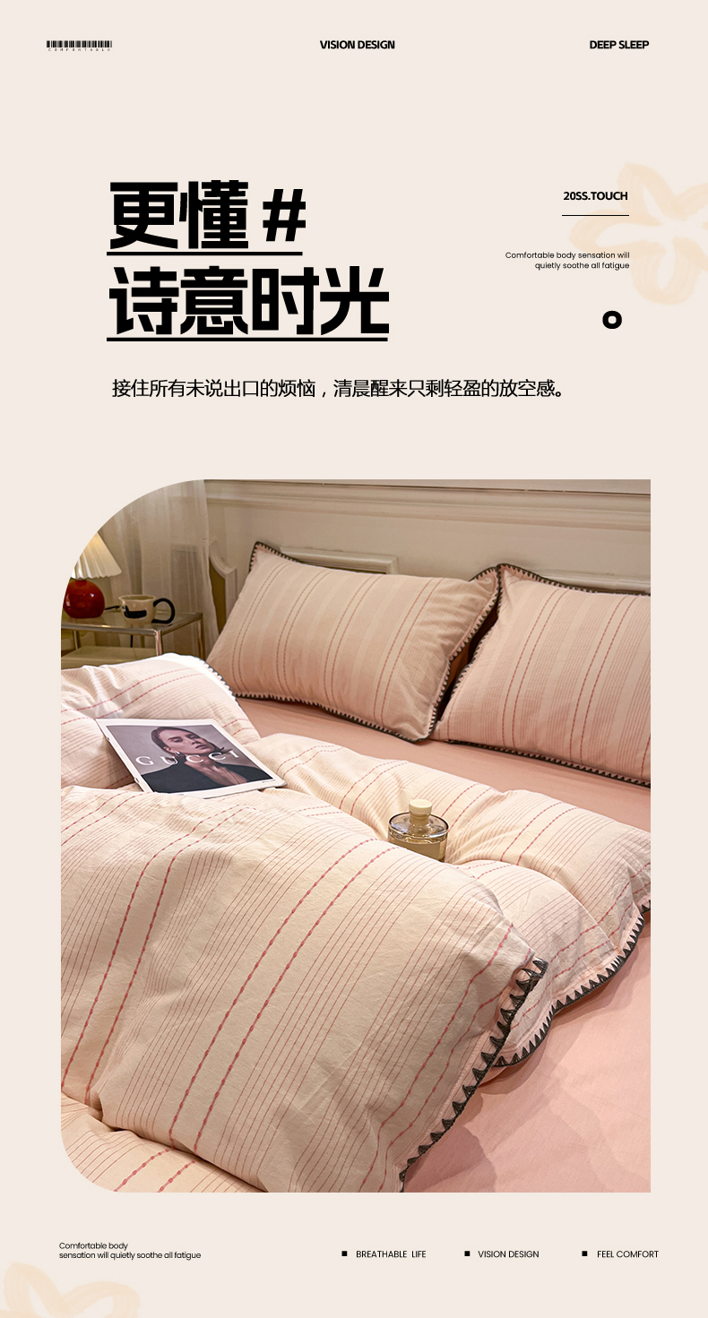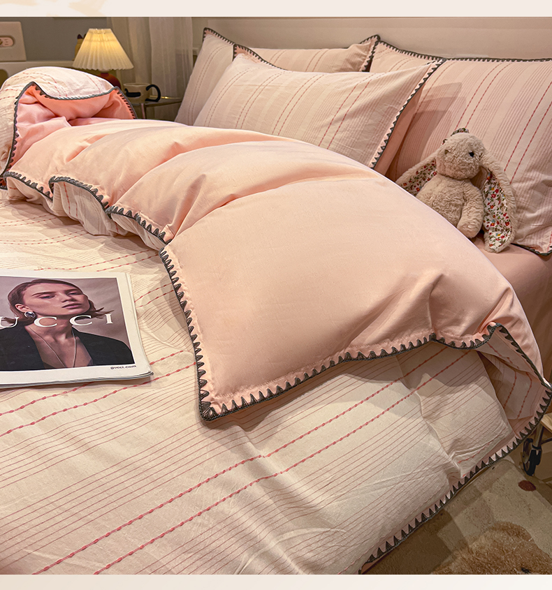 当前位置: 91家纺网 > 商品网购 > 床品套件 > 四件套 > 全棉普通四件套 > 莱茵家居 2026新款A类全棉纯棉色织大提花贝壳边四件套-序语松间系列 序语-粉