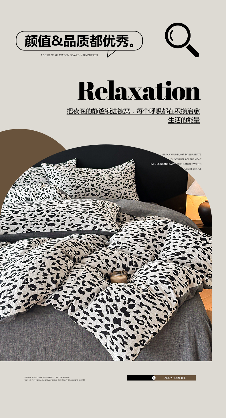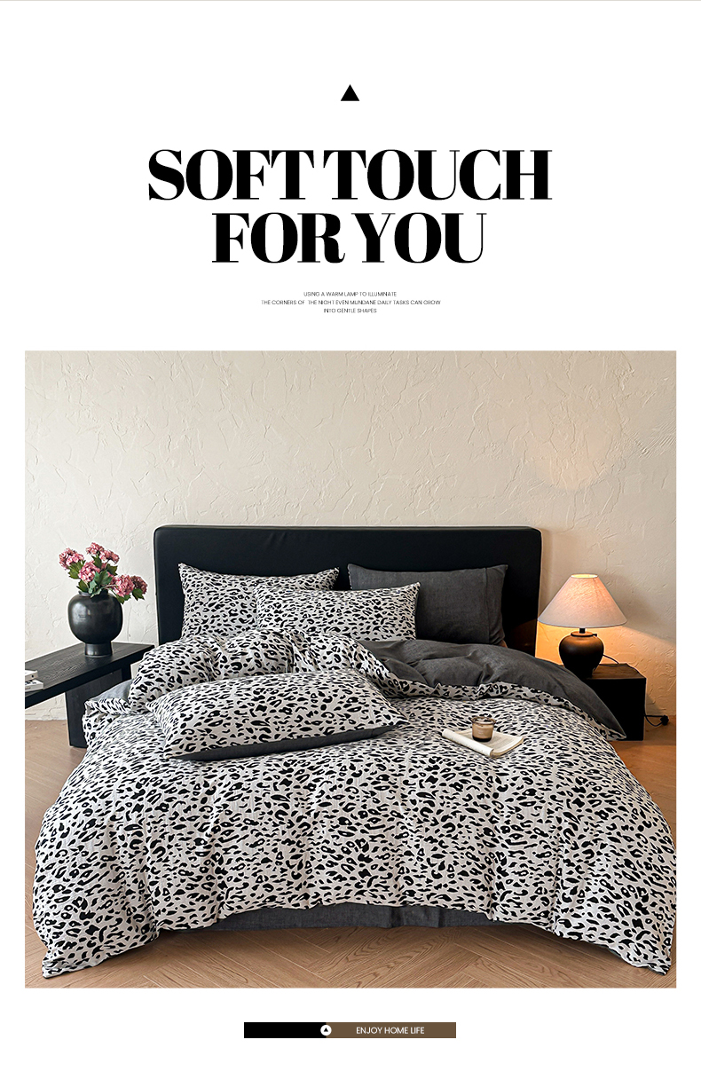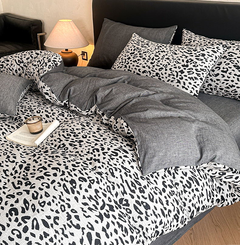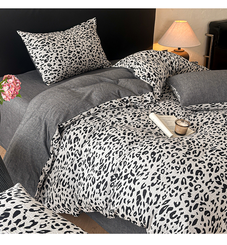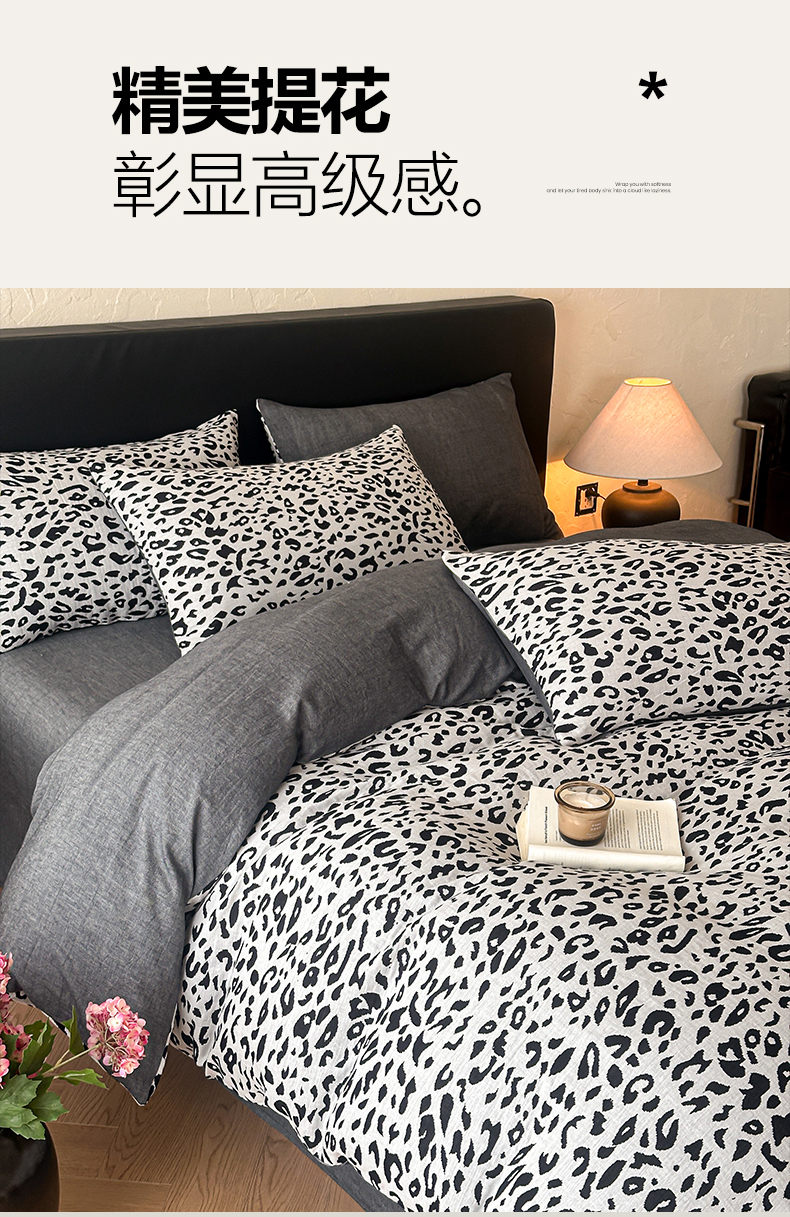 商品名称:莱茵家居 2026新款A类60支全棉纯棉复古侘寂风色织提花四件套-墨隙系列 豹纹-深灰