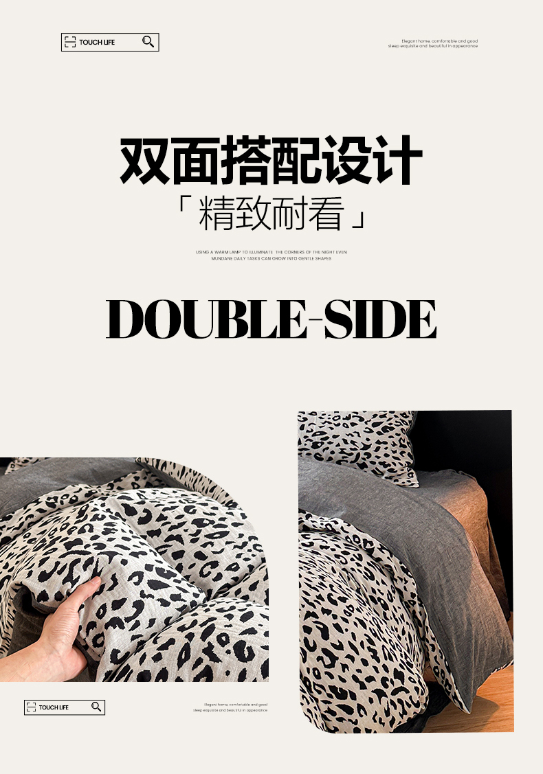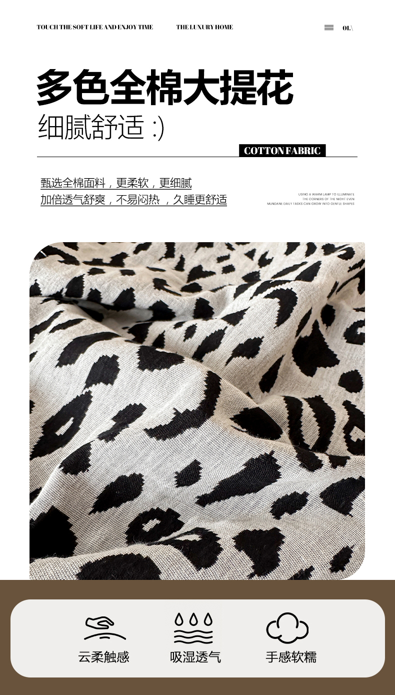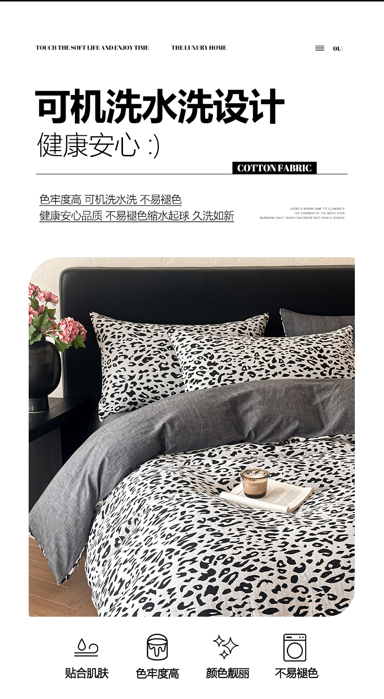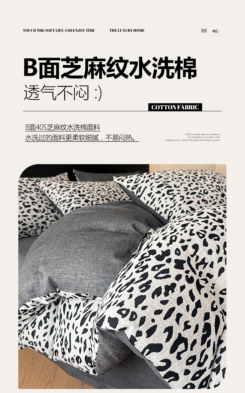 商品名称:莱茵家居 2026新款A类60支全棉纯棉复古侘寂风色织提花四件套-墨隙系列 豹纹-深灰